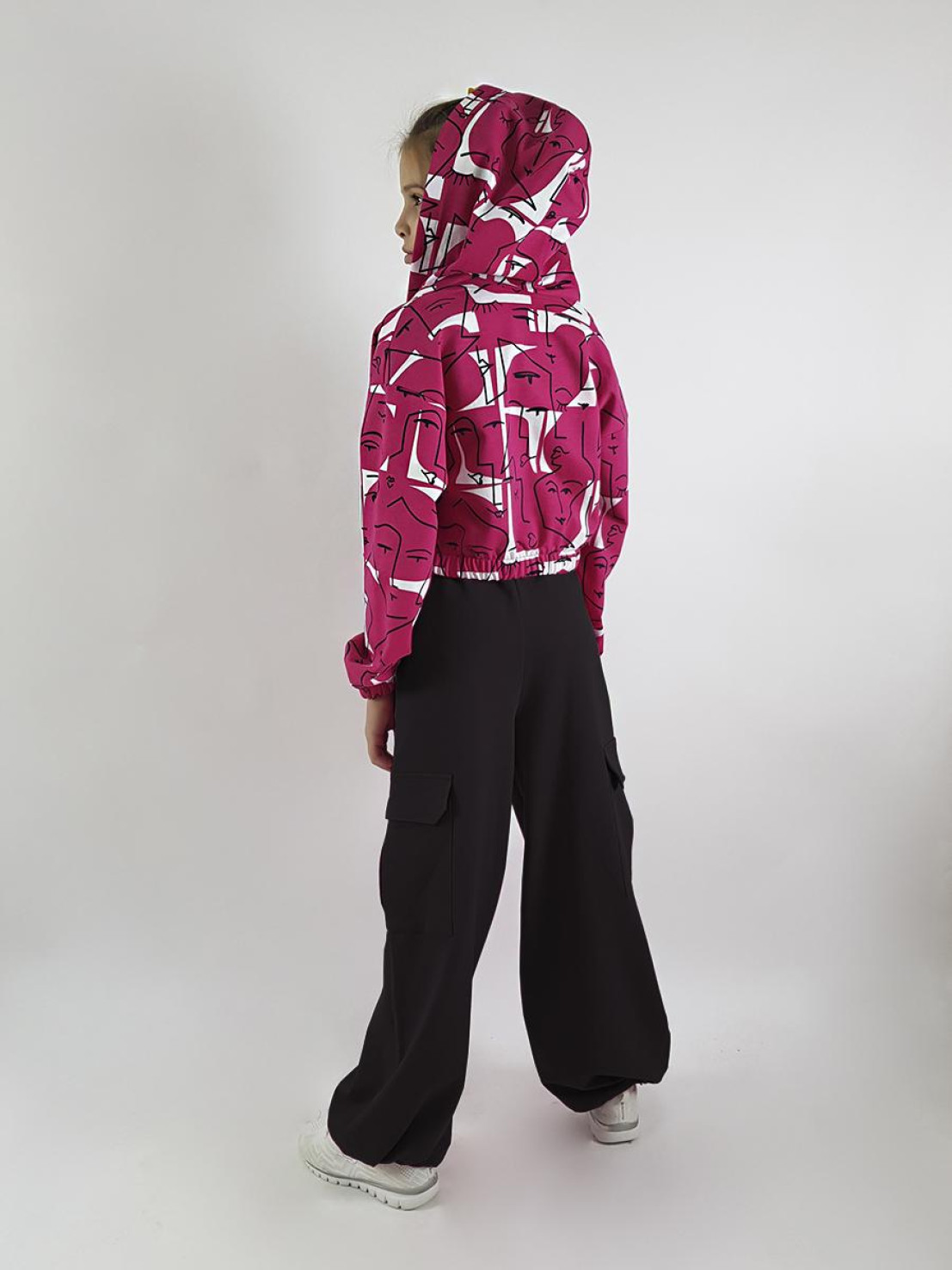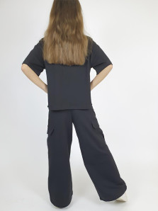 Футер 2-х нитка:75% х/б,25% п/э. Брюки карго-длинные,внизу резинка с фиксатороми.Пояс притачной с резинкой.Два боковых кармана вверху и два накладных с клапаном,с встречной складкой сбоку.