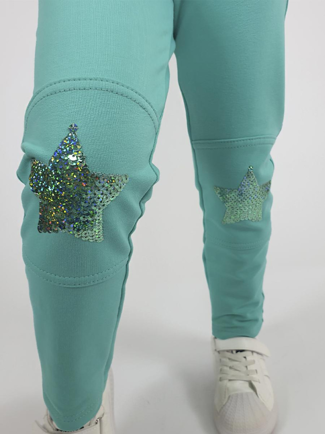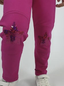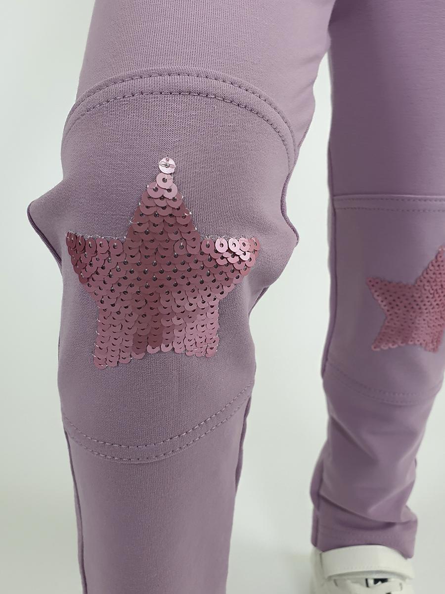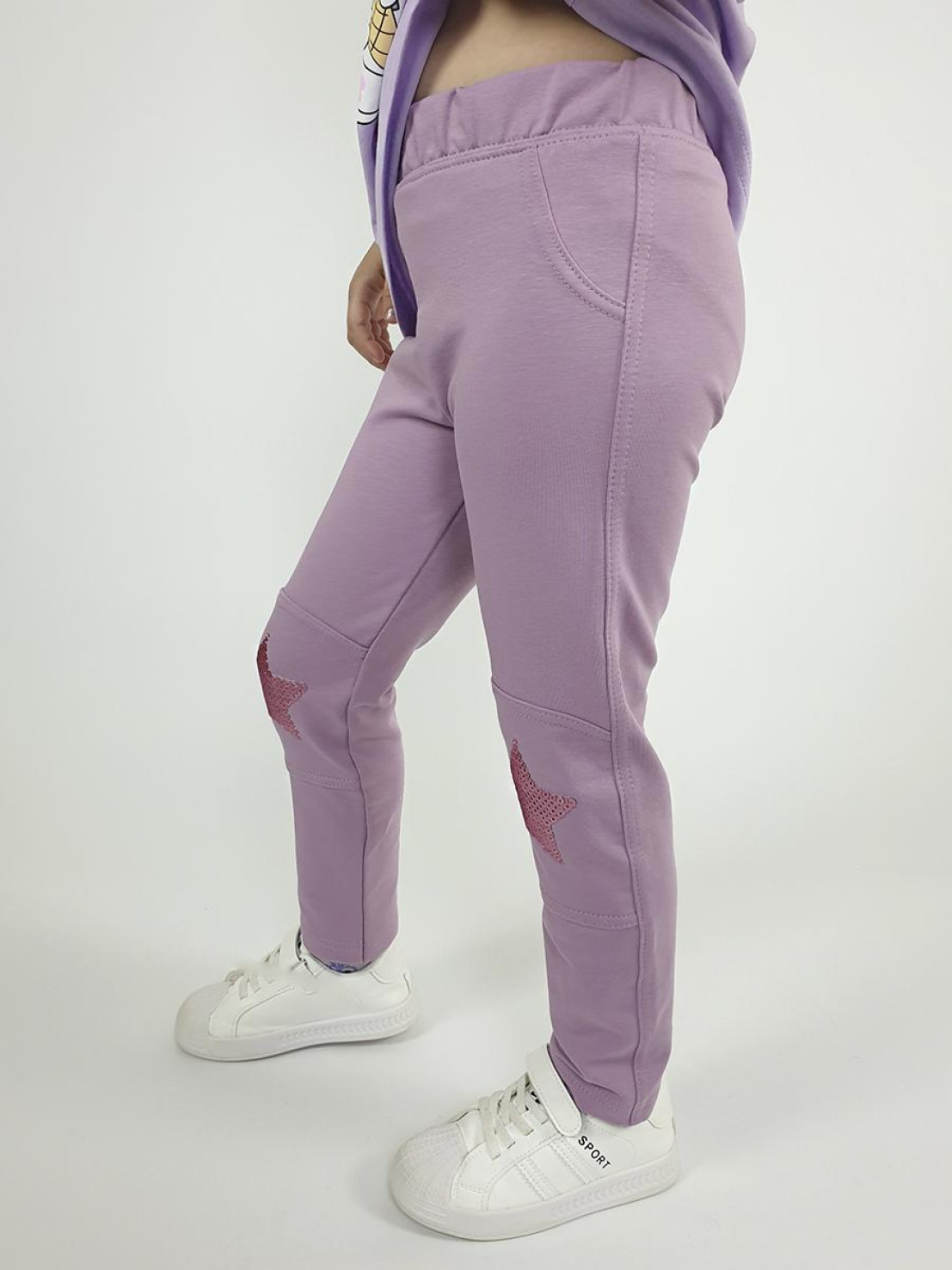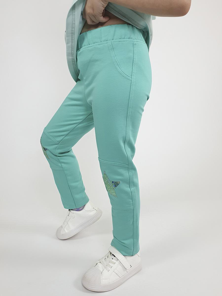 Футер 2-х нитка:75% х/б,25% п/э. Брюки -длинные,на поясе с резинкой (рибана) с имитацией карманов. Подрезы в области колена с вышивкой-пайетки,низ подшит.