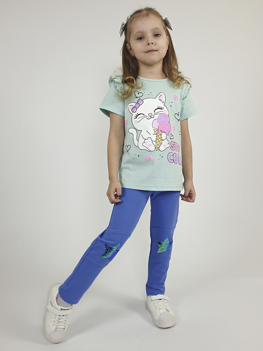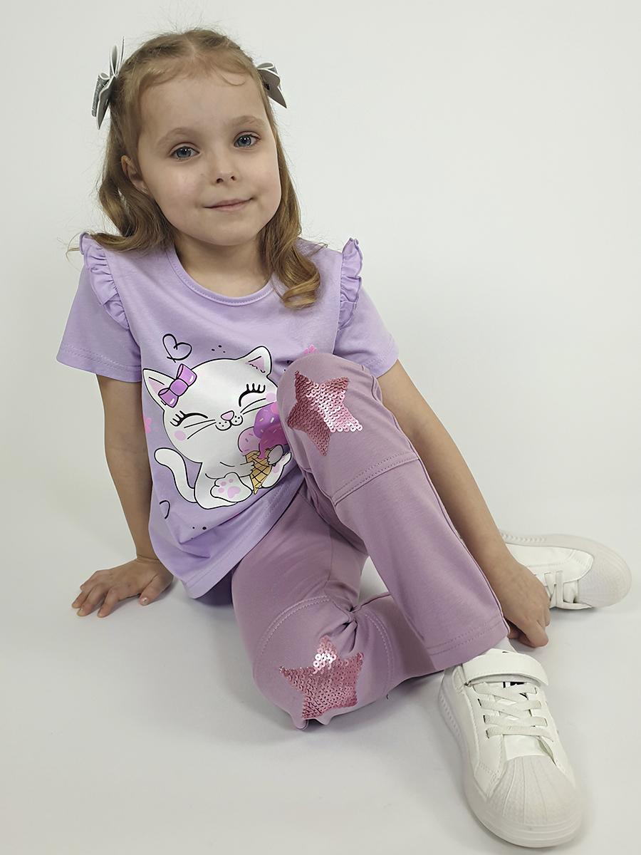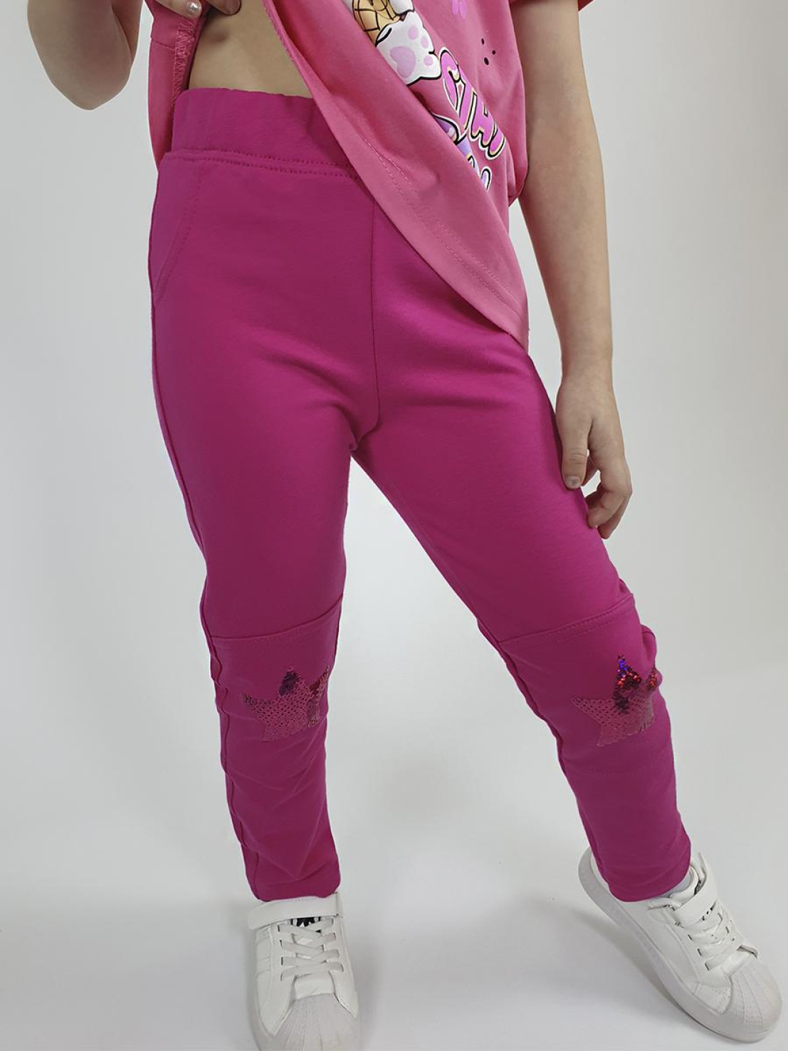 Футер 2-х нитка:75% х/б,25% п/э. Брюки -длинные,на поясе с резинкой (рибана) с имитацией карманов. Подрезы в области колена с вышивкой-пайетки,низ подшит.