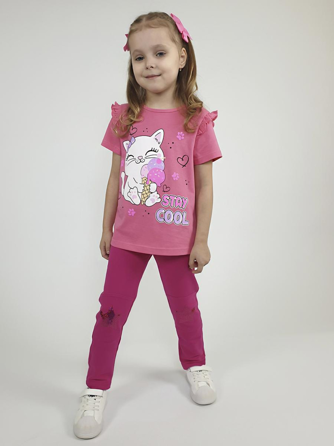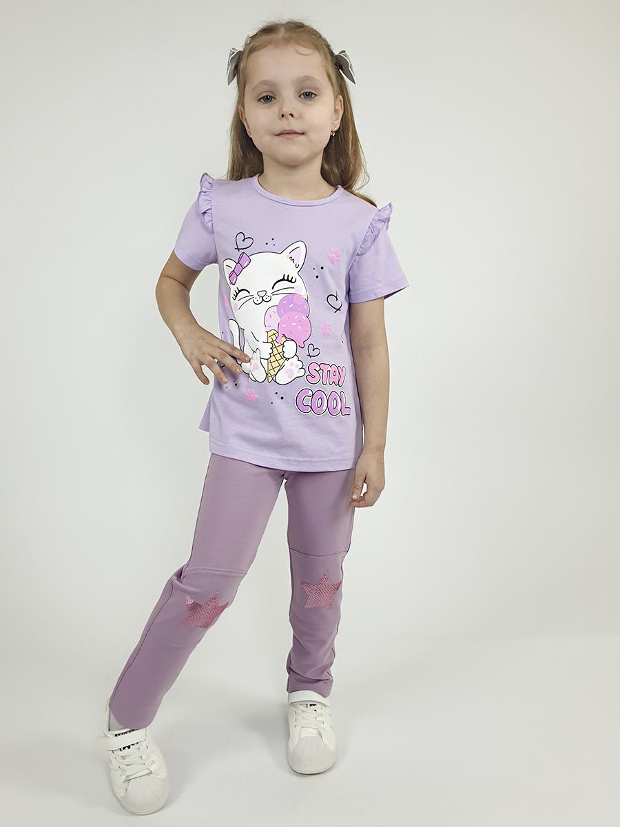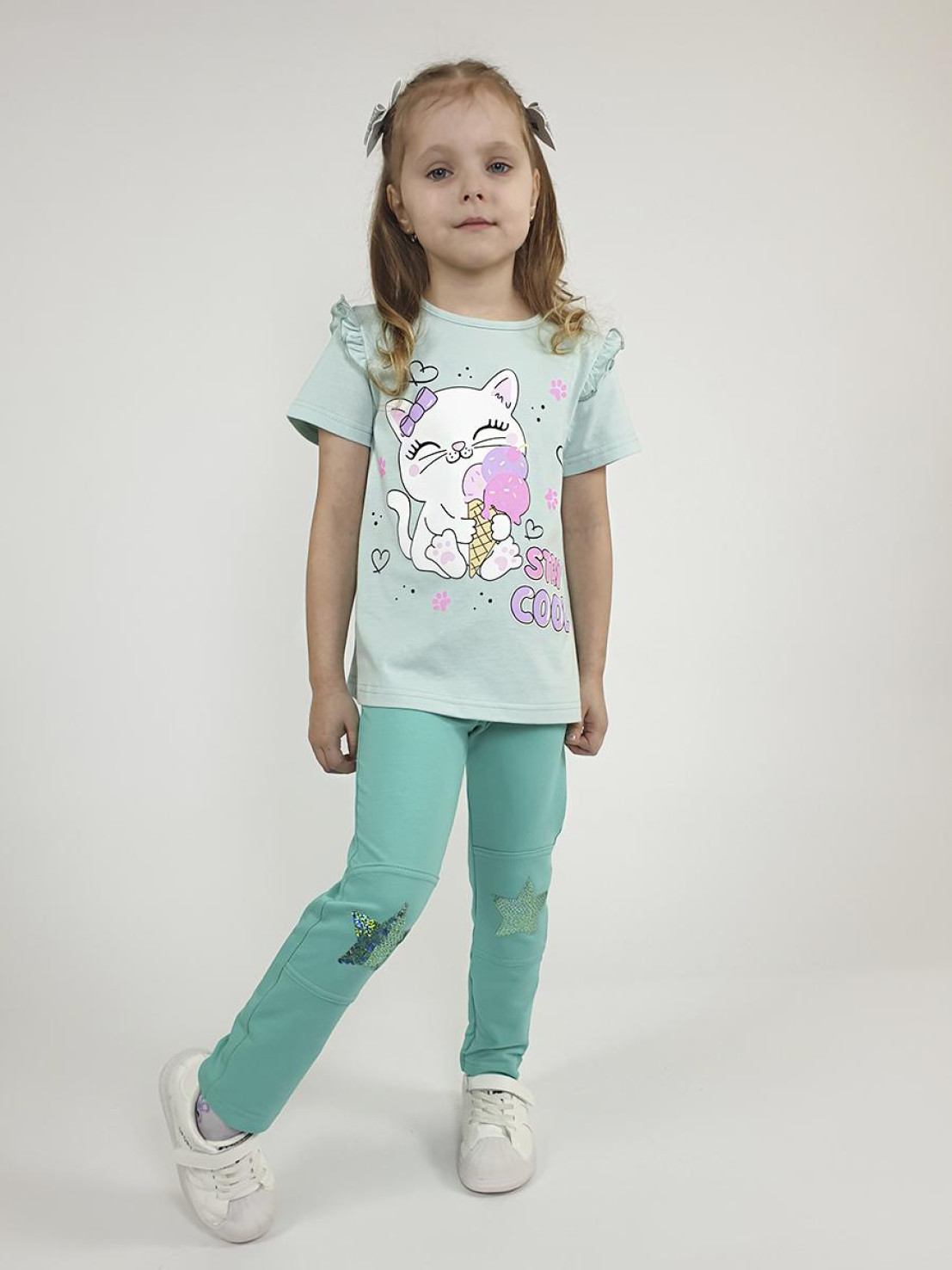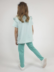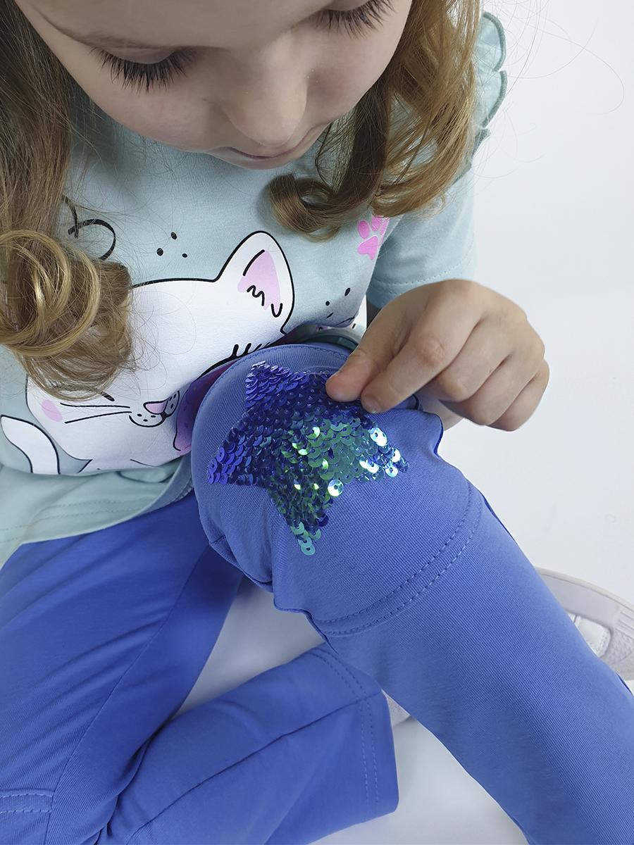 Футер 2-х нитка:75% х/б,25% п/э. Брюки -длинные,на поясе с резинкой (рибана) с имитацией карманов. Подрезы в области колена с вышивкой-пайетки,низ подшит.