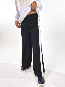 Футер 2-х нитка:95% х/б,5% лайкра. Брюки-длинные,клеш.Притачной пояс с резинкой.Лампасы по боковым швам.