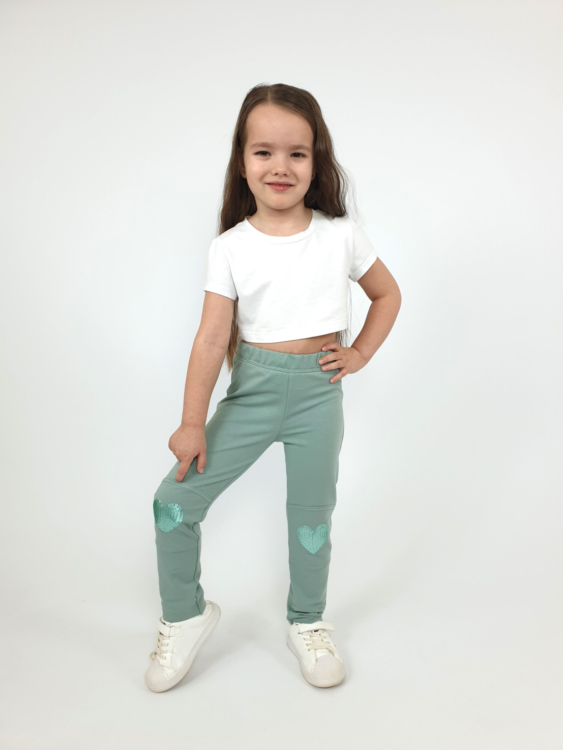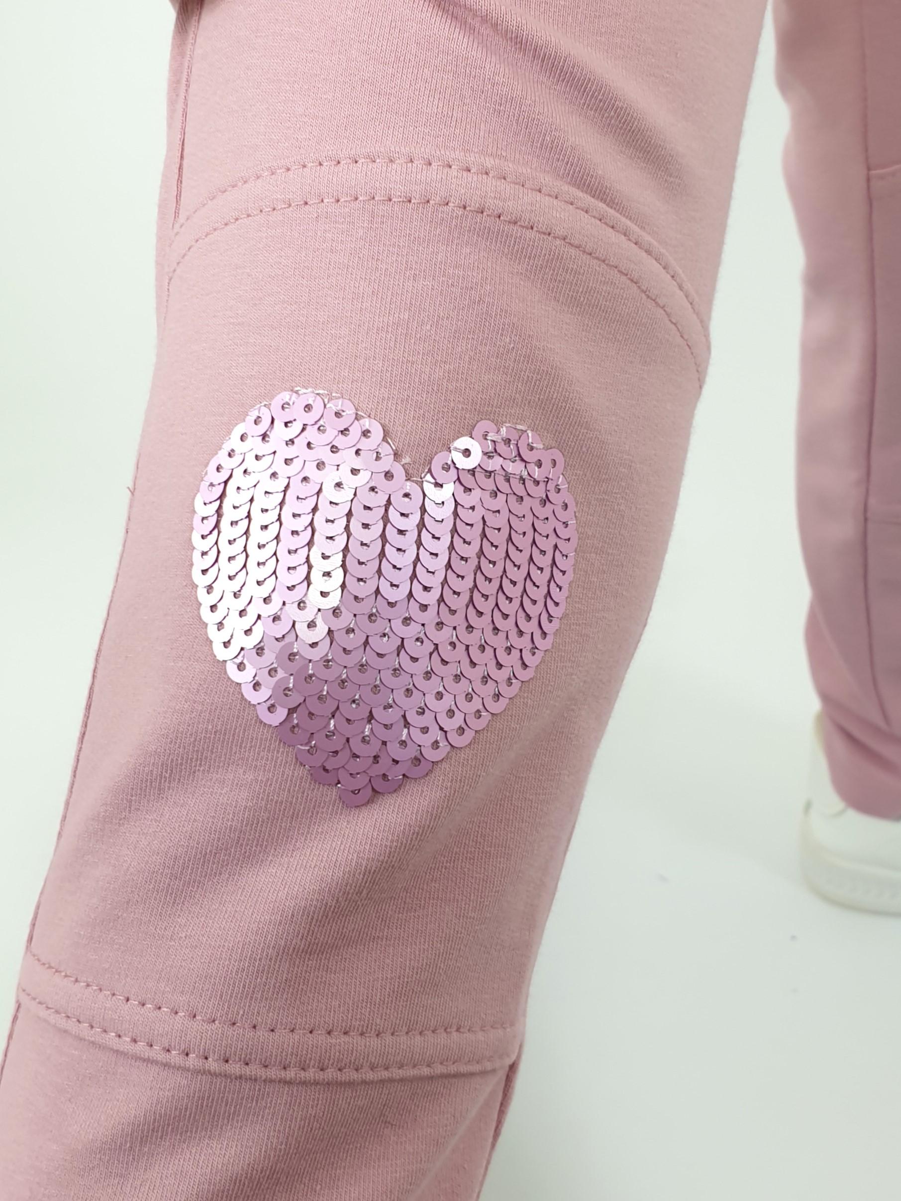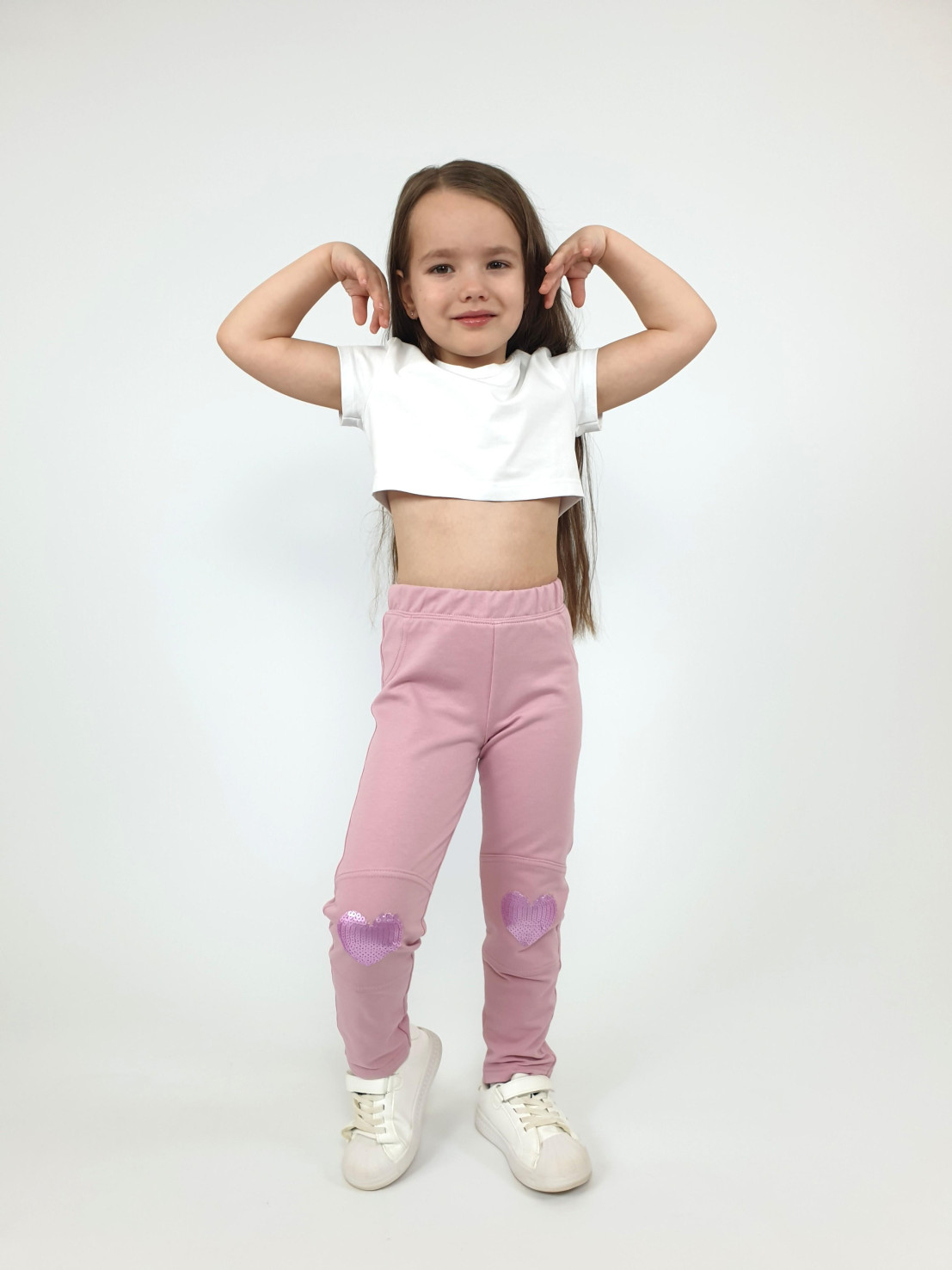 Футер 2-х нитка:75% х/б,25% п/э. Брюки -длинные,на поясе с резинкой (рибана) с имитацией карманов. Подрезы в области колена с вышивкой-пайетки,низ подшит.
