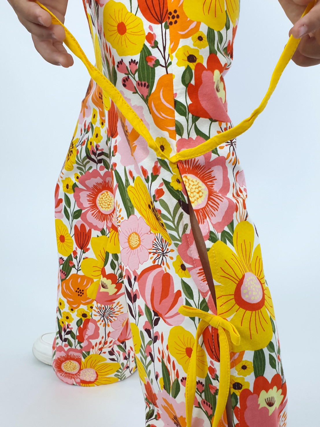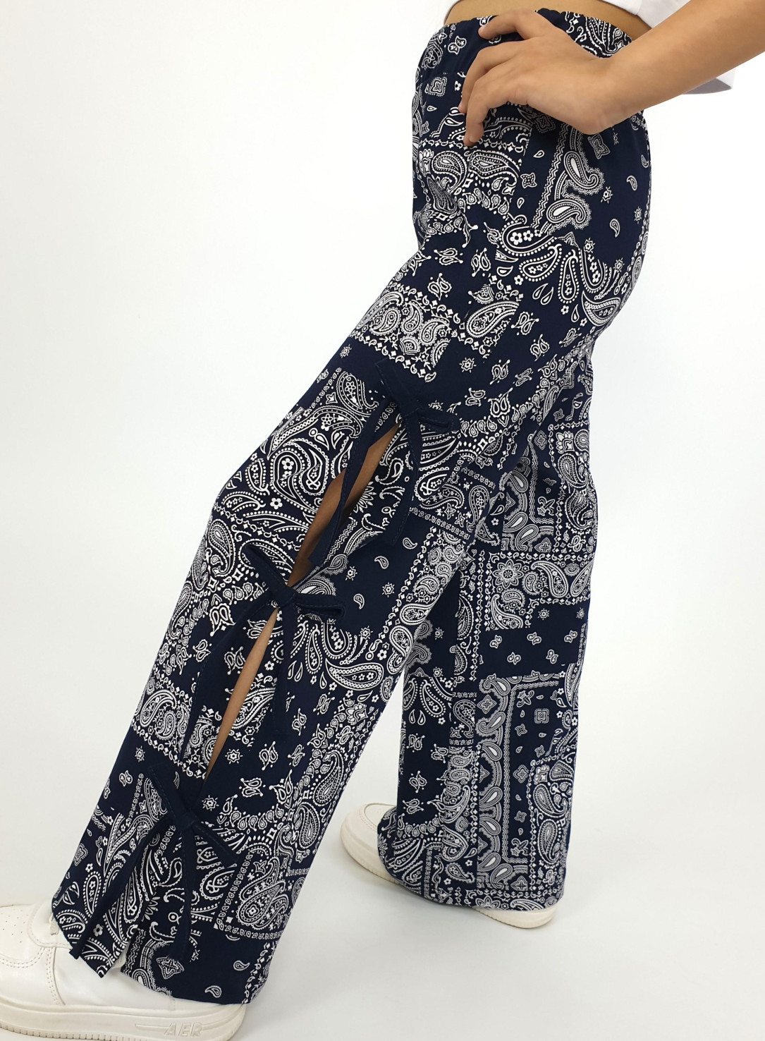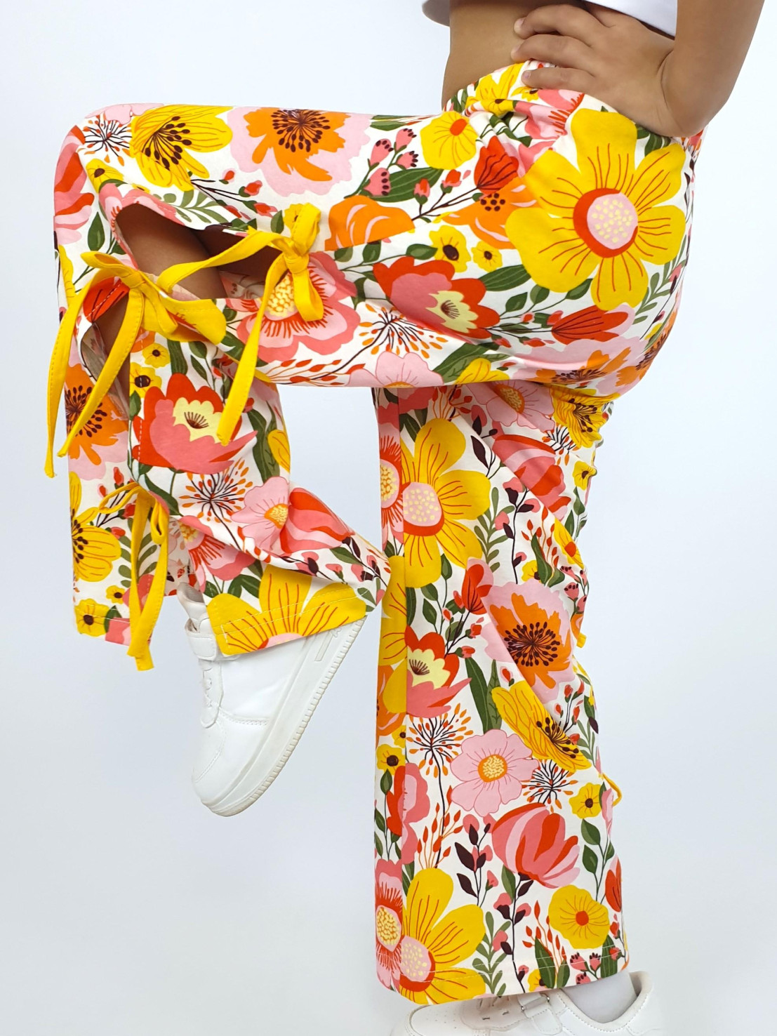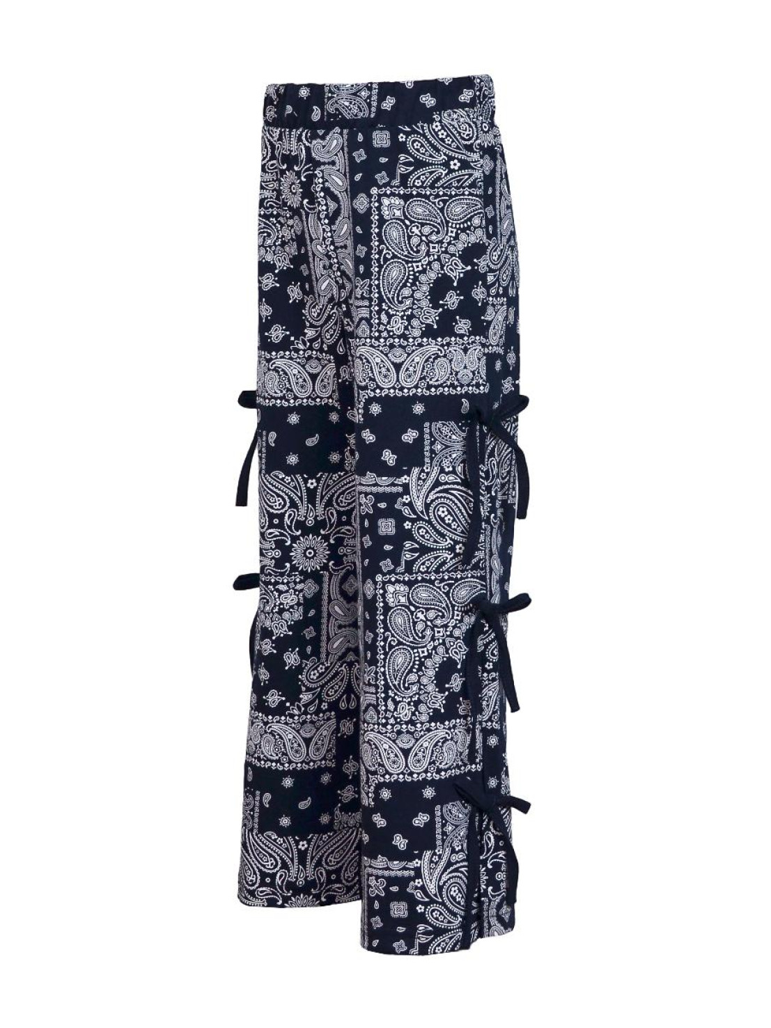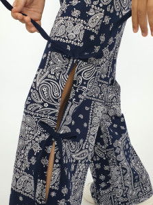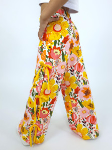 Кулирное полотно:100% х/б. Брюки-длинные,клеш.Притачной пояс с резинкой.Разрезы по боковым швам с отделочными бантиками.