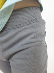 Футер 2-х нитка:95% х/б,5% лайкра. Брюки-длинные на манжете.притачной пояс с резинкой,на переде имитация карманов.Двойная отделочная строчка по боковым швам,по шву притачивания пояса,манжетам,карманам.