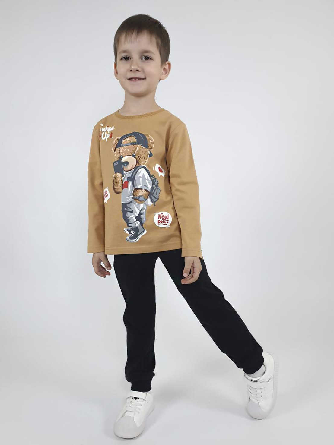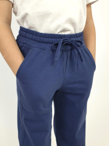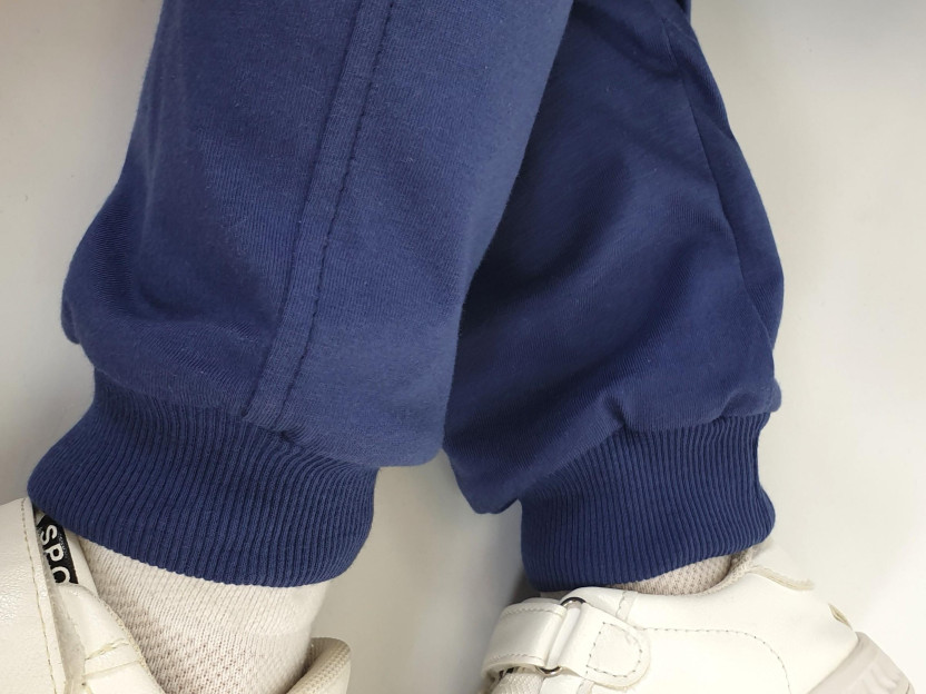 Кулирное полотно:100% х/б. Брюки-длинные на манжете из ластика.Притачной пояс с резинкой и шнуром.Два кармана на переде.