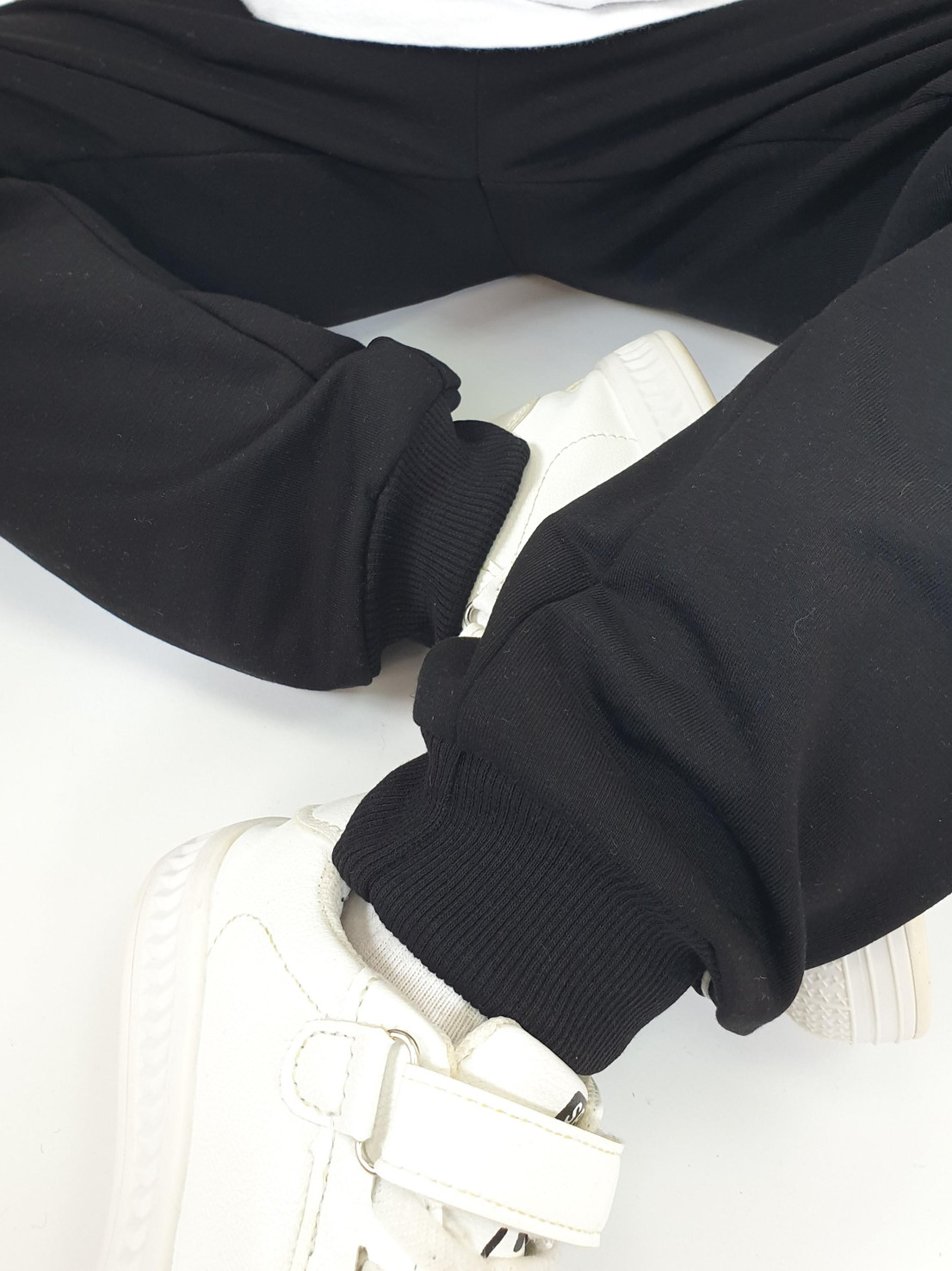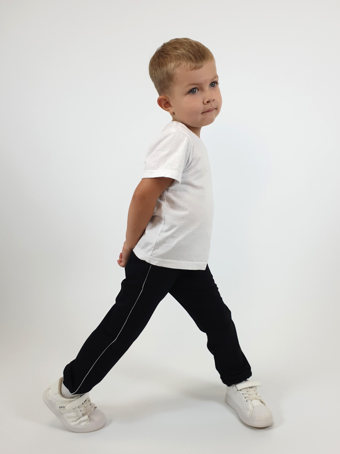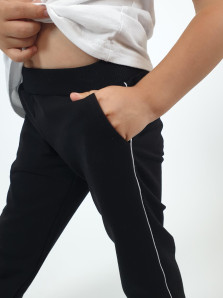 Футер 2-х нитка: 72% х/б.,23% п/э.,5% лайкра. Брюки.Боковые карманы спереди.Кант в боковом шве.Верх изделия с поясом из ластика и резинкой.По низу притачной манжет из ластика.