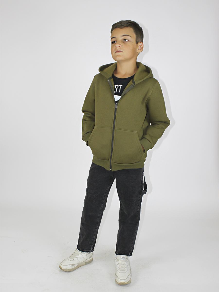 Футер трех-нитка:85% х/б,15% п/э. Джемпер-прямой,на поясе из ластика,в горловине капюшон.Центральная застежка на "молнию",рукав втачной,длинный на манжете из ластика.Два кармана накладных на переде.