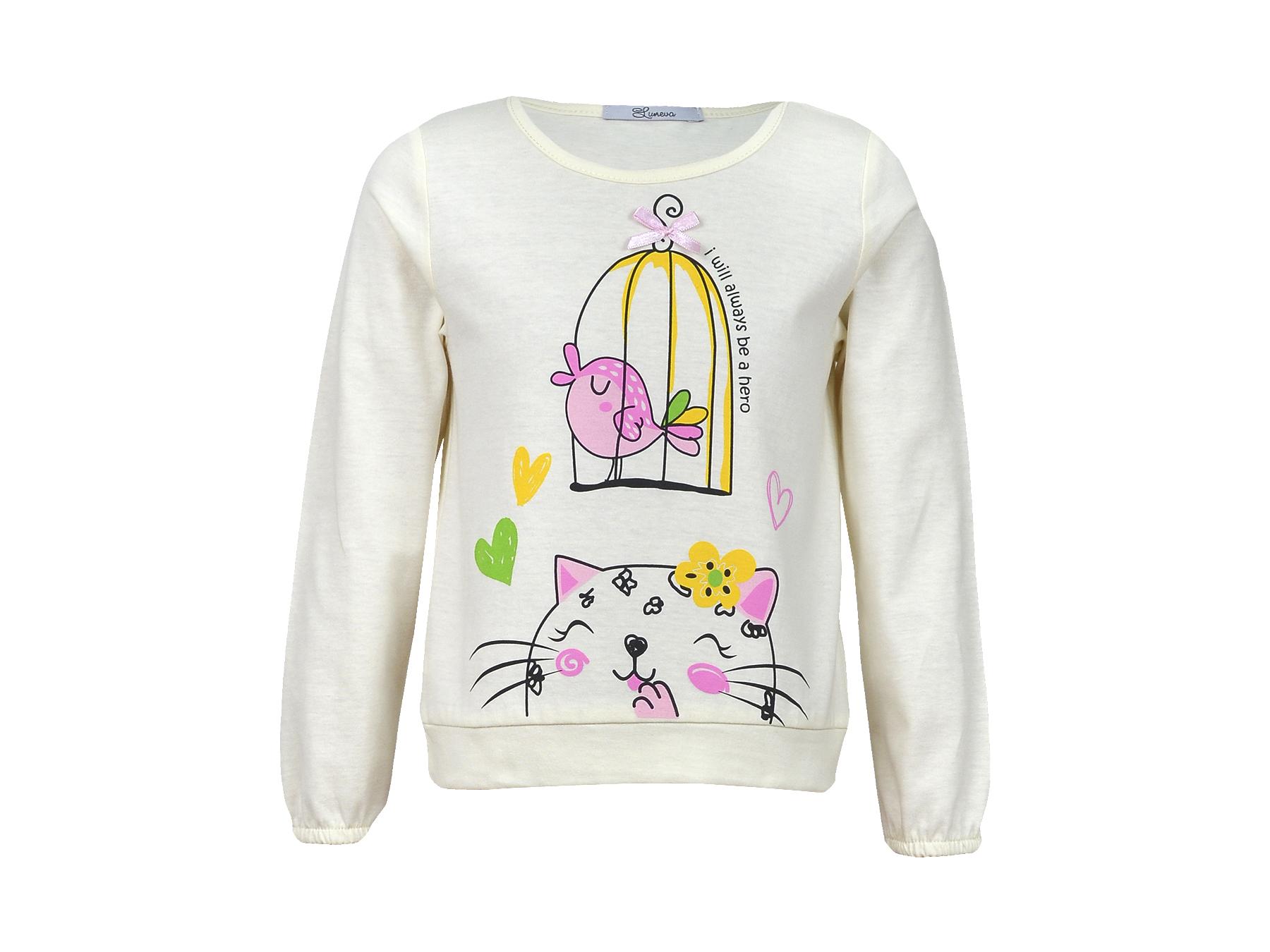 Джемпер для девочки изготовлен из качественного кулирного полотна ( 100% хлопок).Модель прямого силуэта , длинный втачной рукав на резинке. Оригинальный принт и фасон точно понравится юным модницам. Материал легкий, приятный на ощупь, устойчивый к частым стиркам.