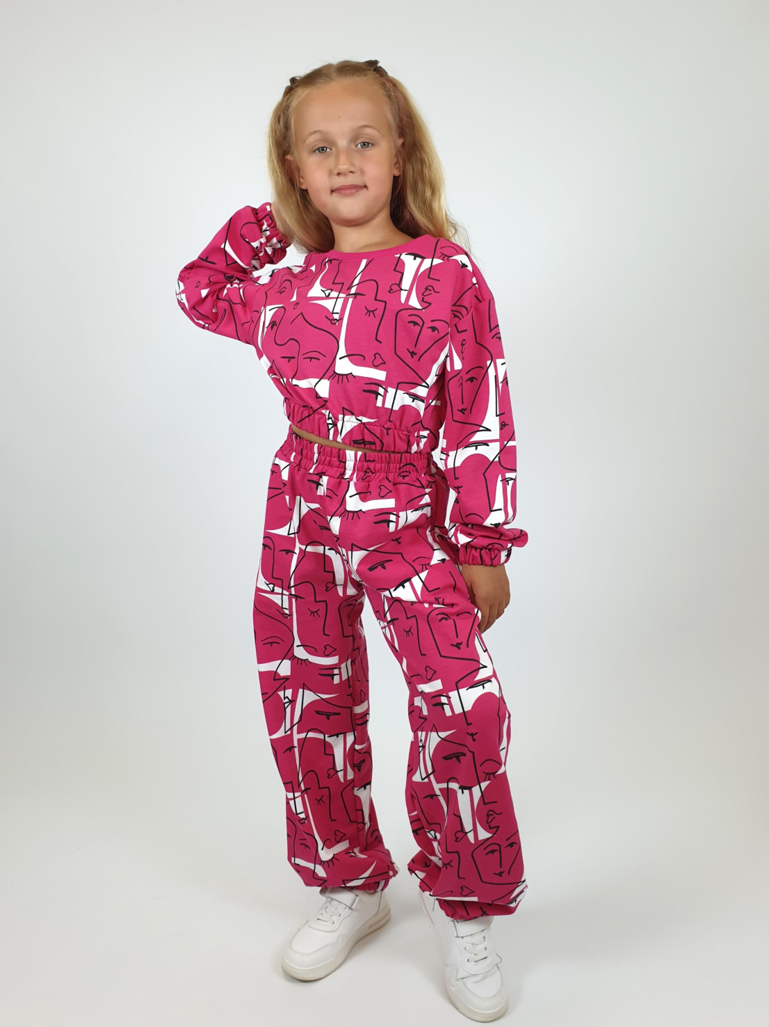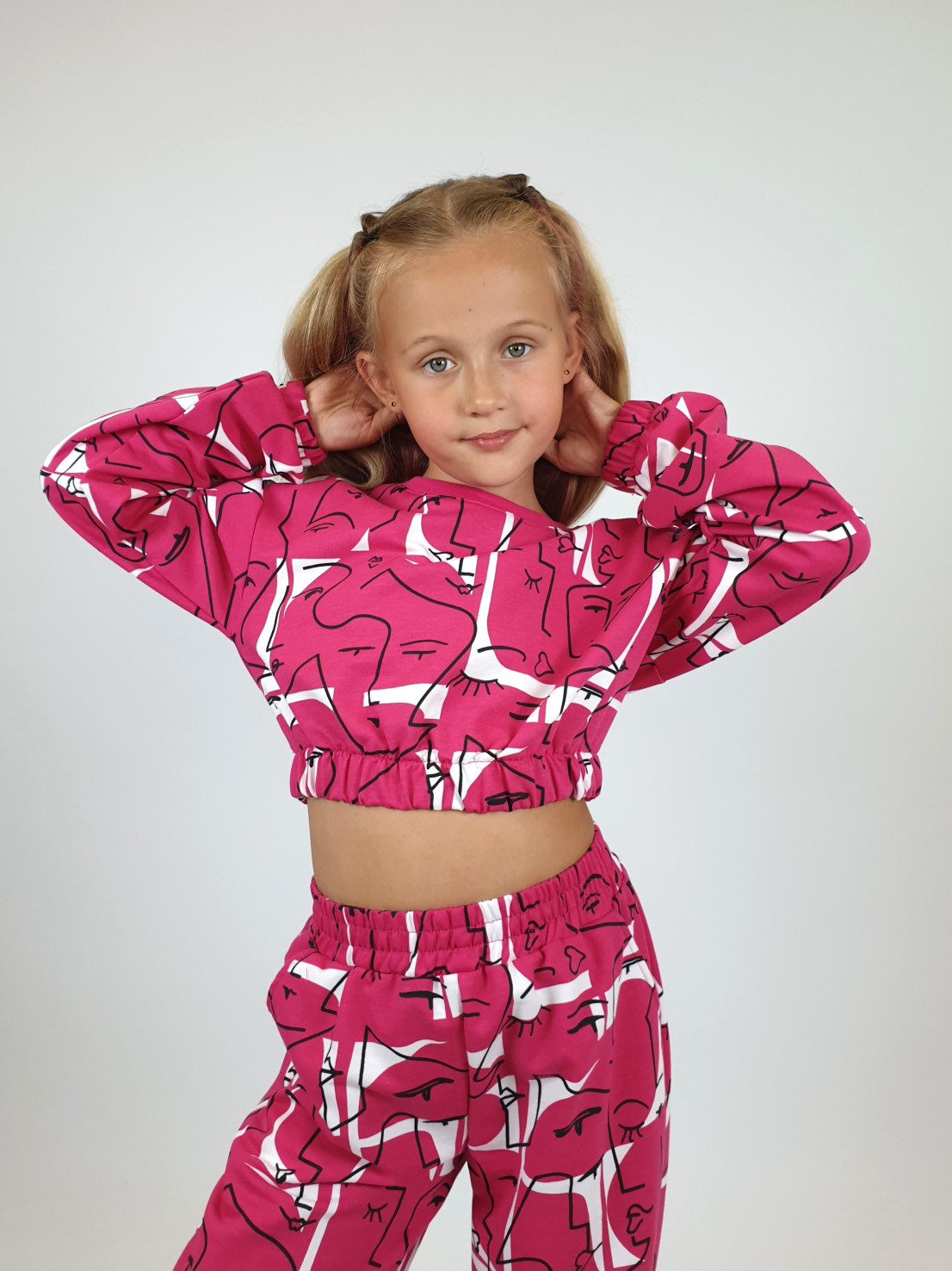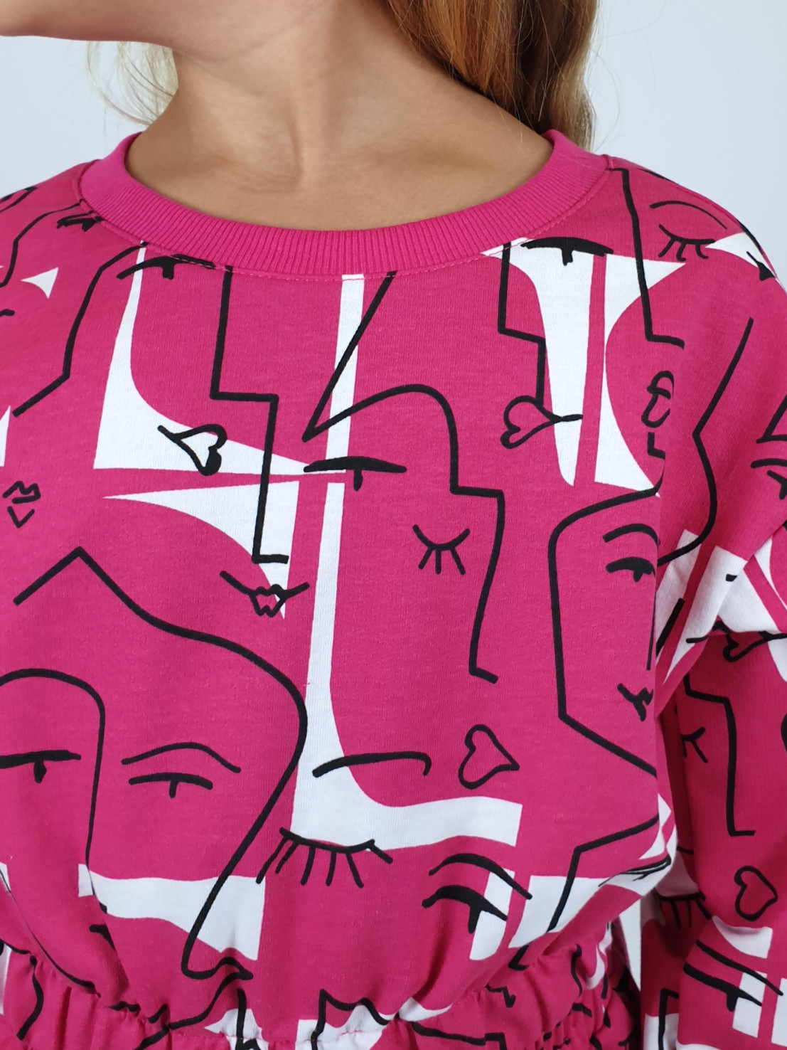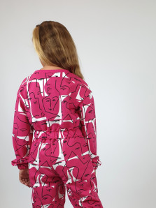 Футер 2-нитка:75% х/б,25% п/э. Джемпер-укороченный,спущенное плечо.Рукав и низ изделия на резинке.В горловине стойка из ластика.