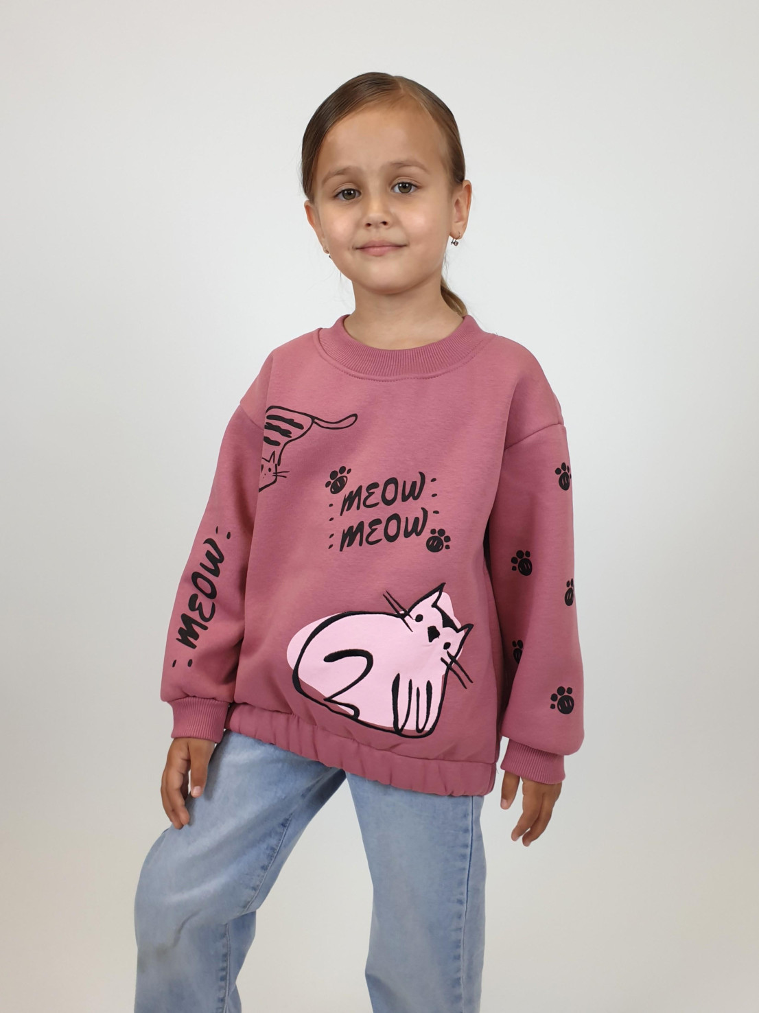 Футер 3-нитка:65% х/б,35% п/э. Джемпер-прямого силуэта,спущенное плечо.Рукав на манжете из ластика.Низ изделия на резинке.В горловине стойка из ластика.Печать и вышивка на переде.
