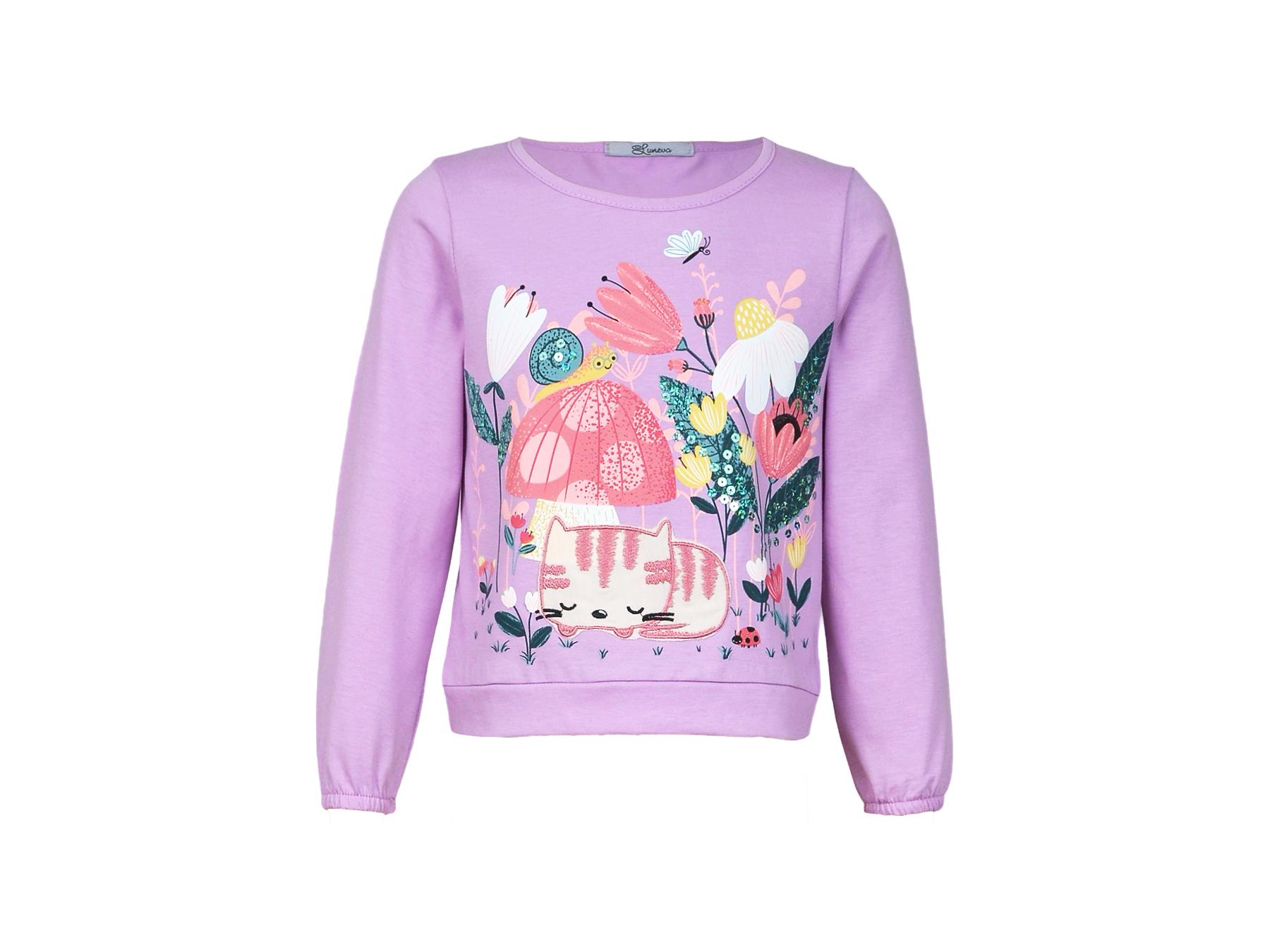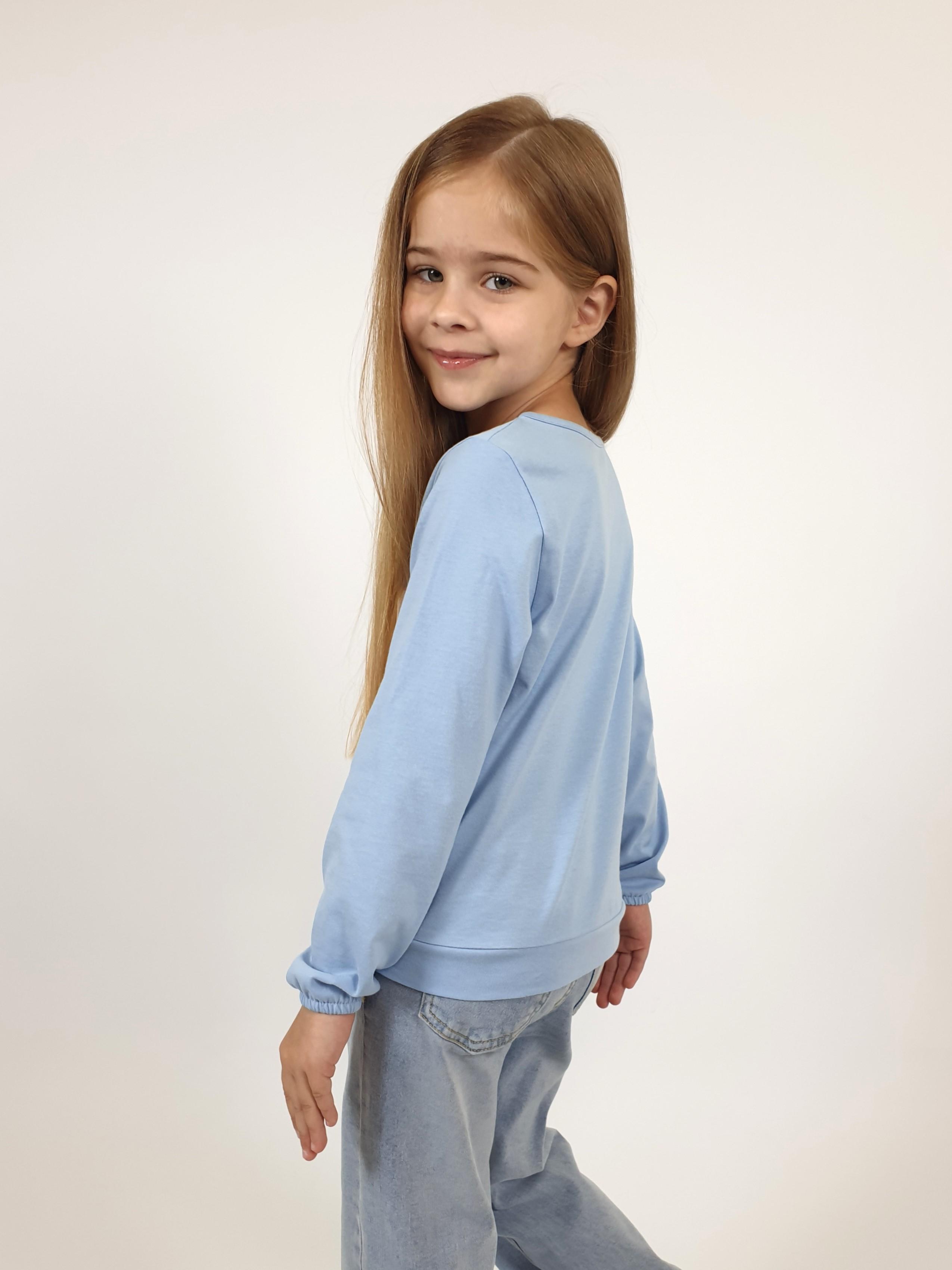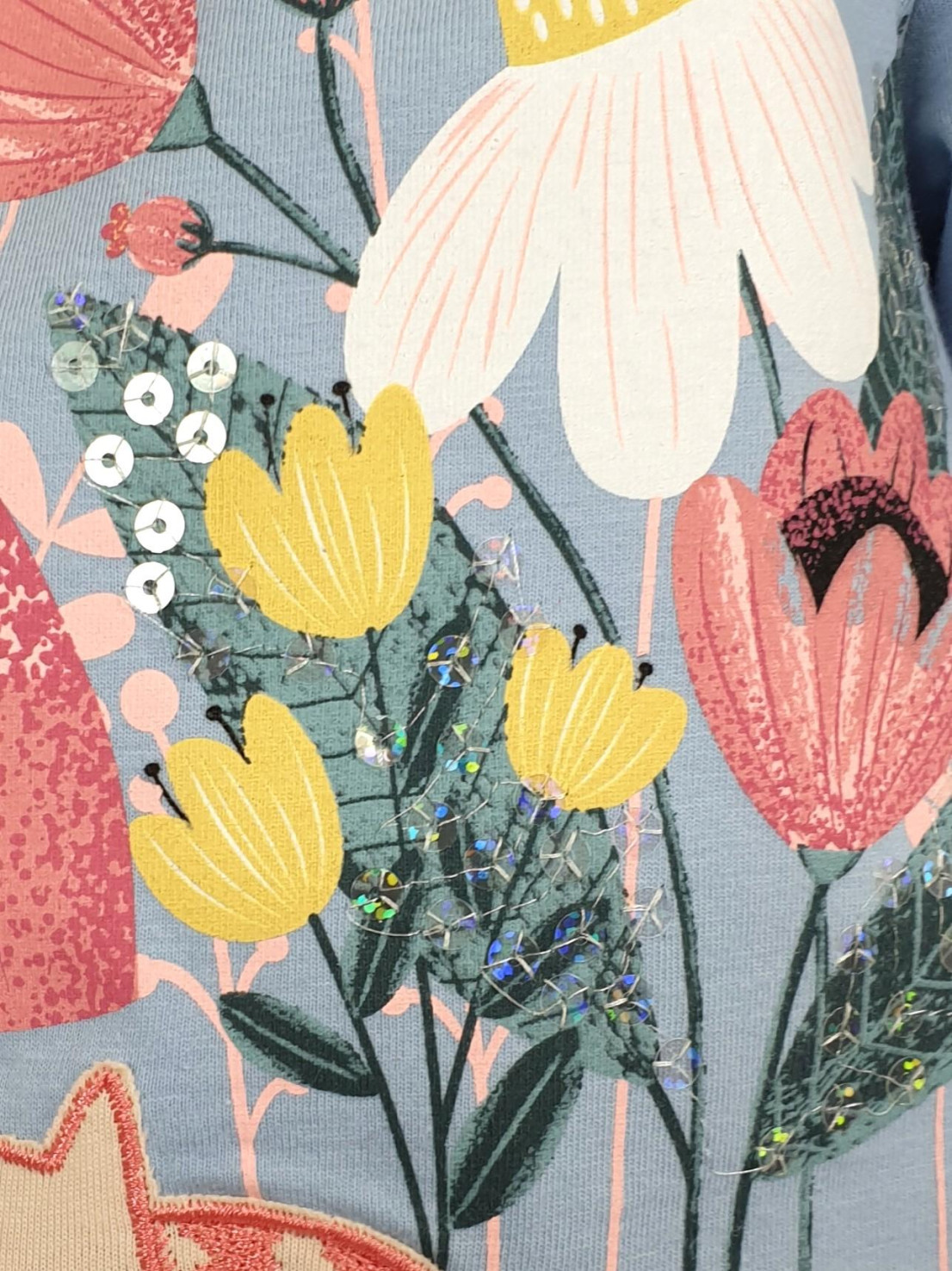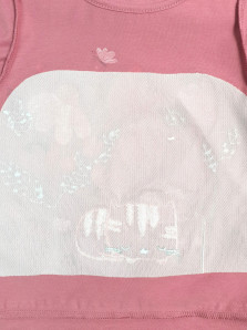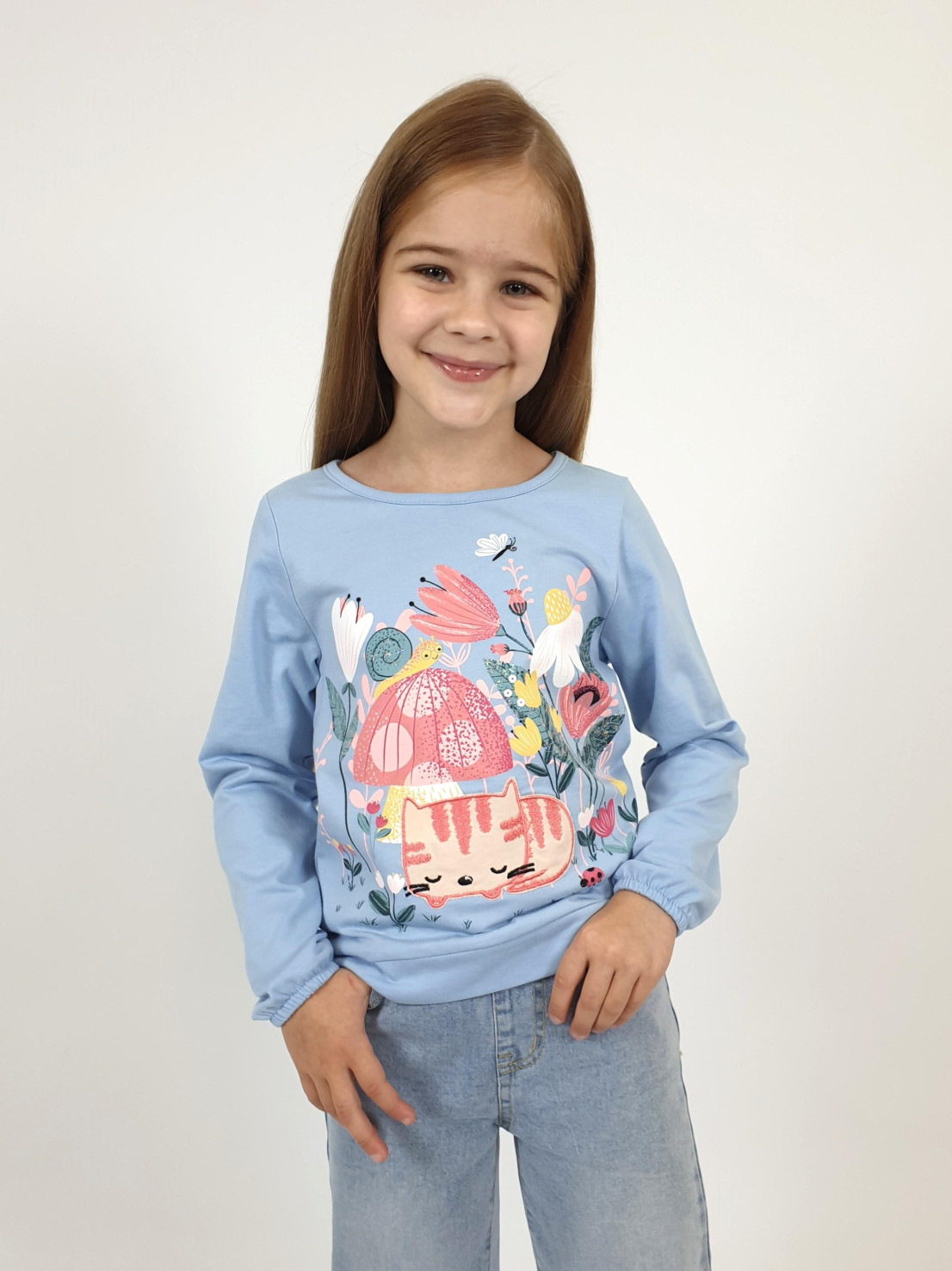 Кулирное полотно:100% х/б. Джемпер-прямого силуэта,на поясе.Печать на переде и вышивка(пайетки) с апликацией,втачной длинный рукав на резинке.Горловина окантована.
