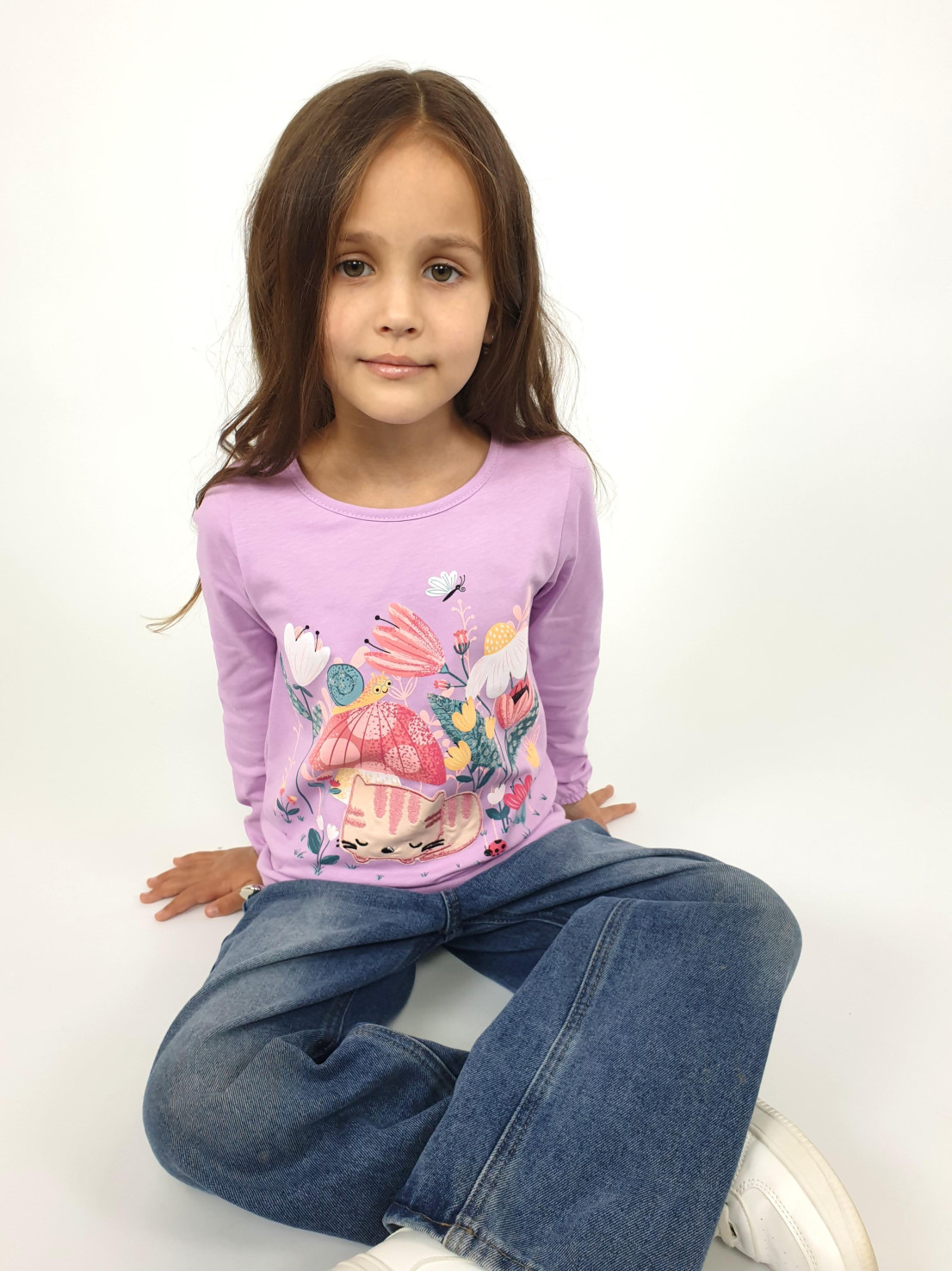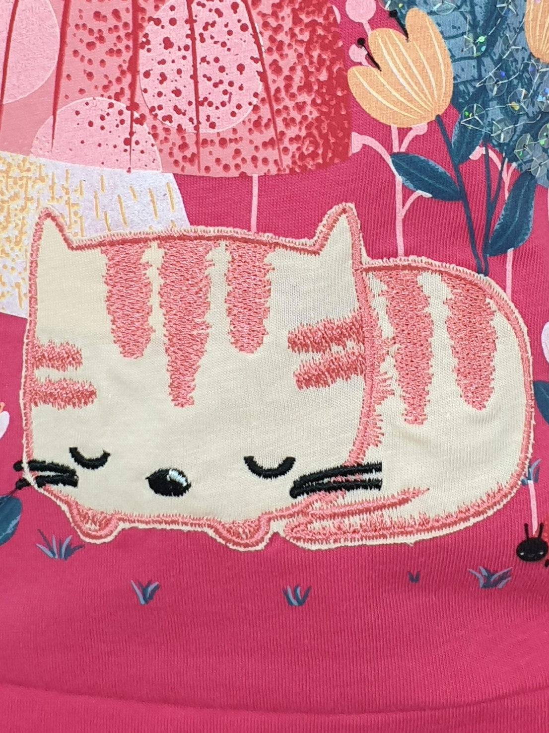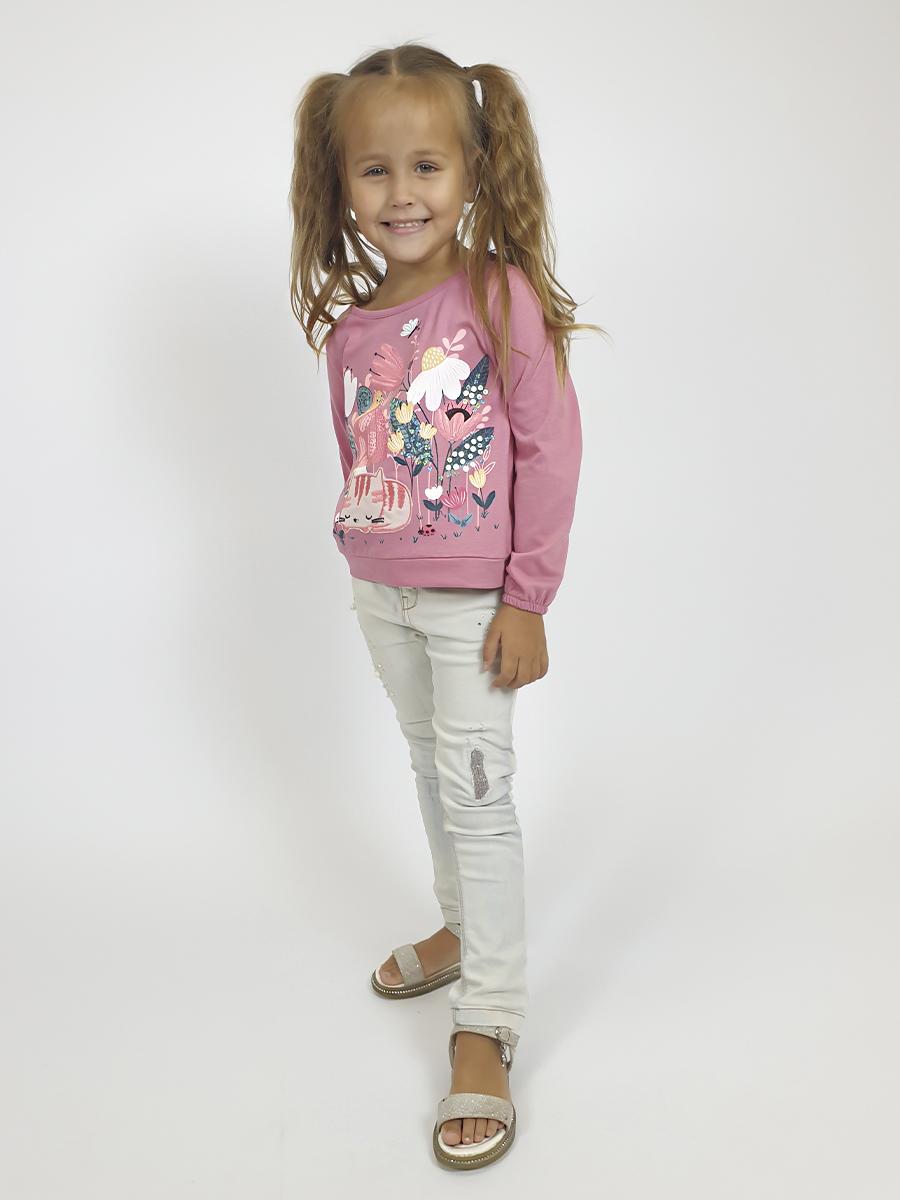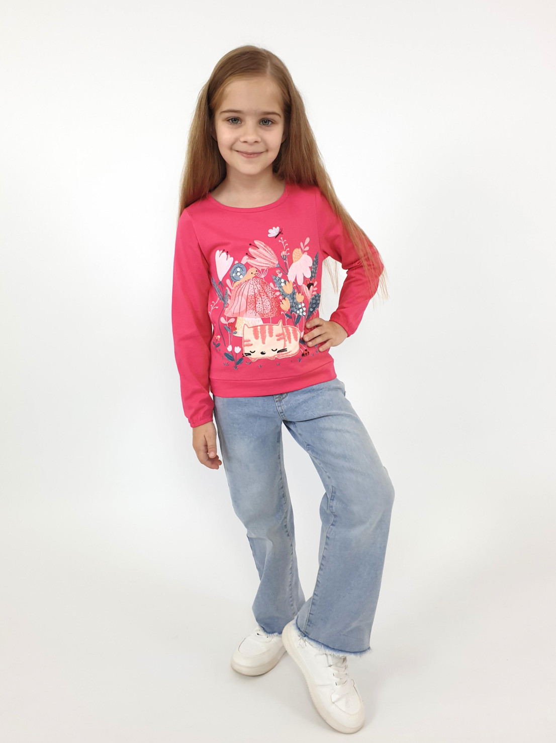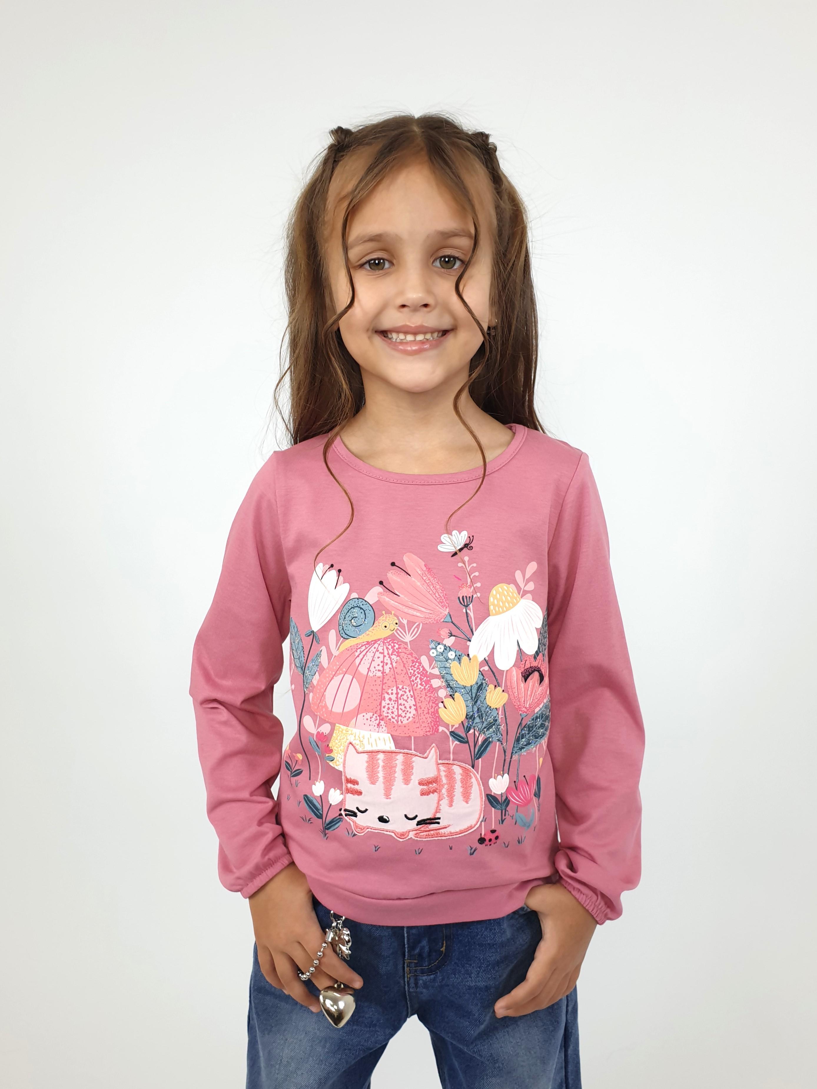 Кулирное полотно:100% х/б. Джемпер-прямого силуэта,на поясе.Печать на переде и вышивка(пайетки) с апликацией,втачной длинный рукав на резинке.Горловина окантована.