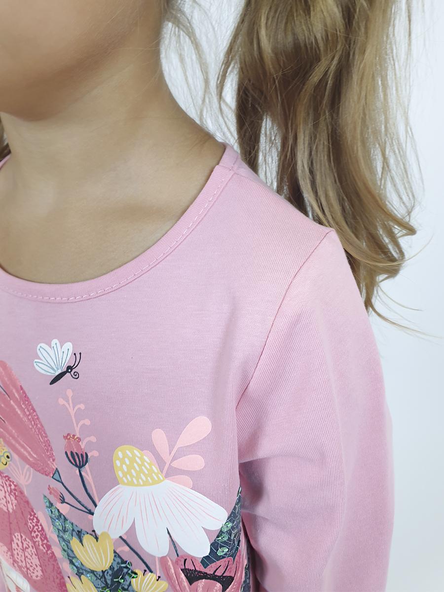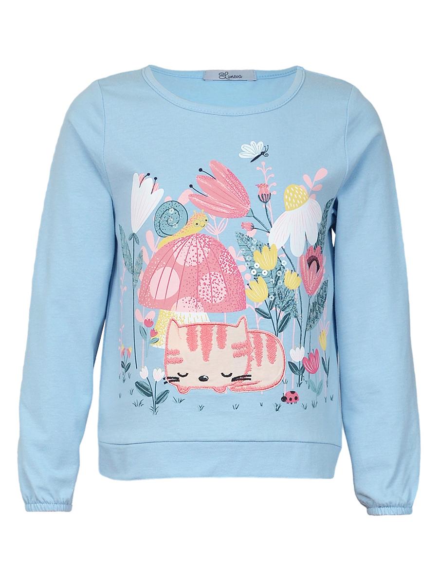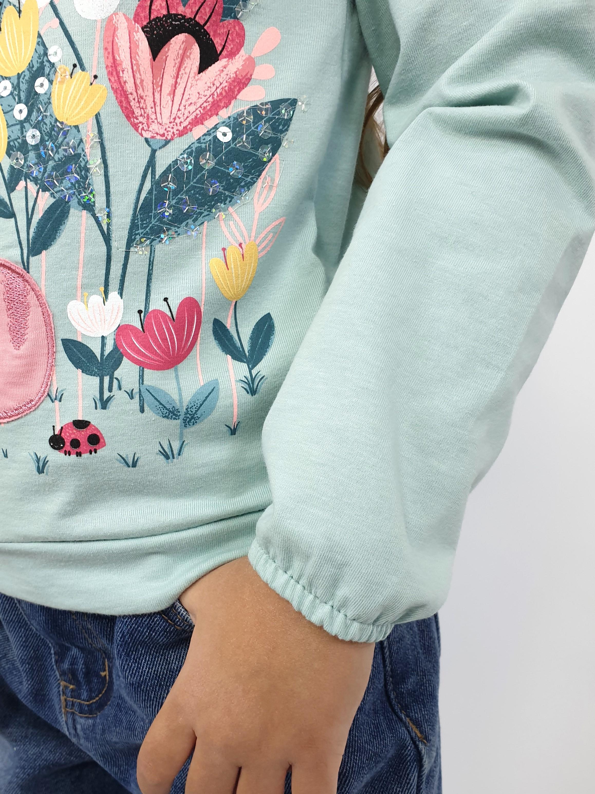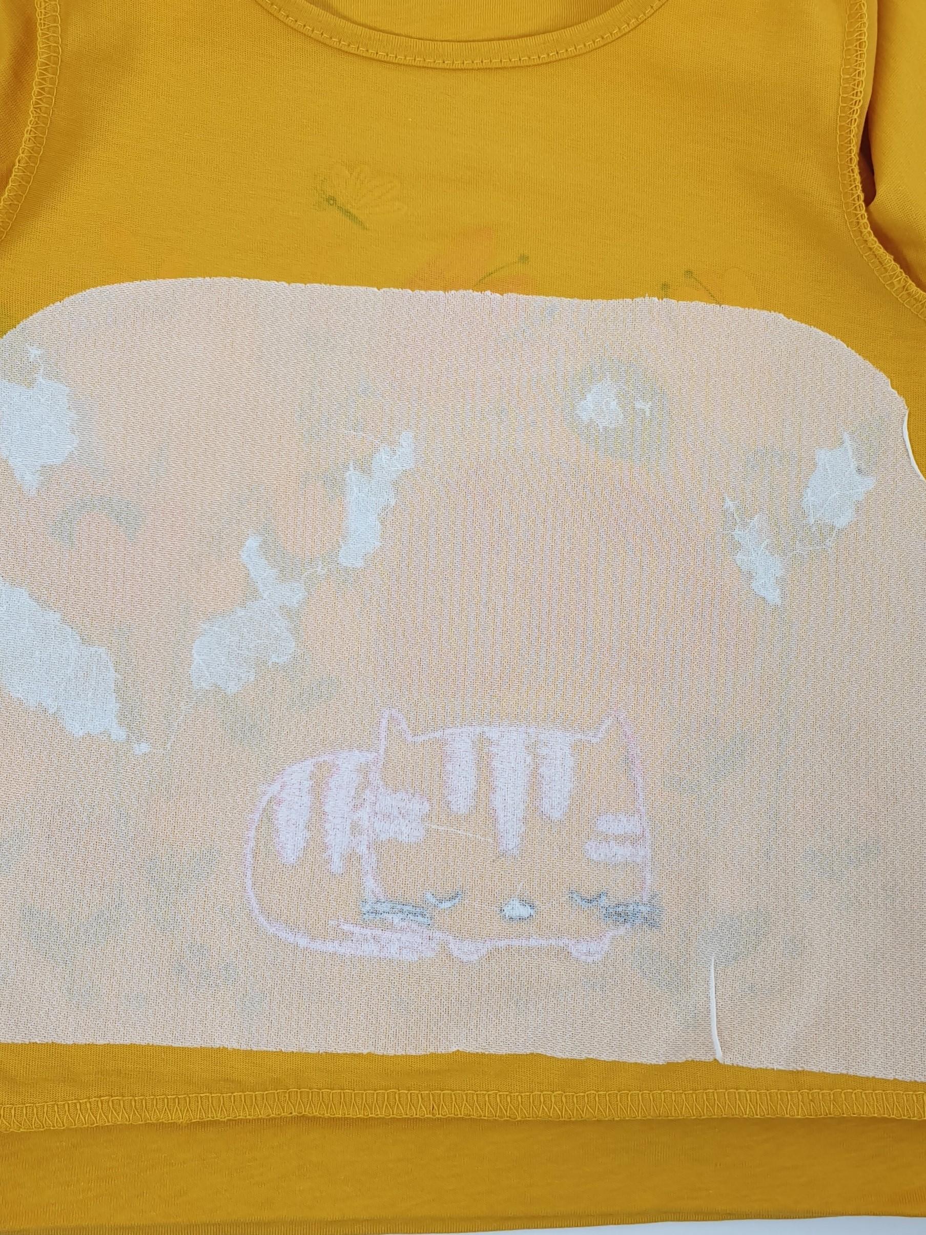 Кулирное полотно:100% х/б. Джемпер-прямого силуэта,на поясе.Печать на переде и вышивка(пайетки) с апликацией,втачной длинный рукав на резинке.Горловина окантована.