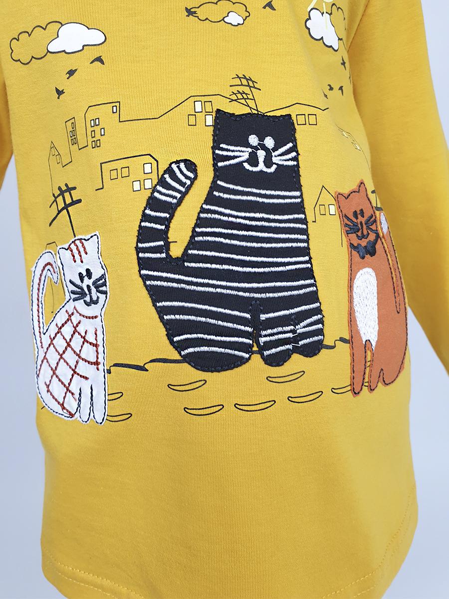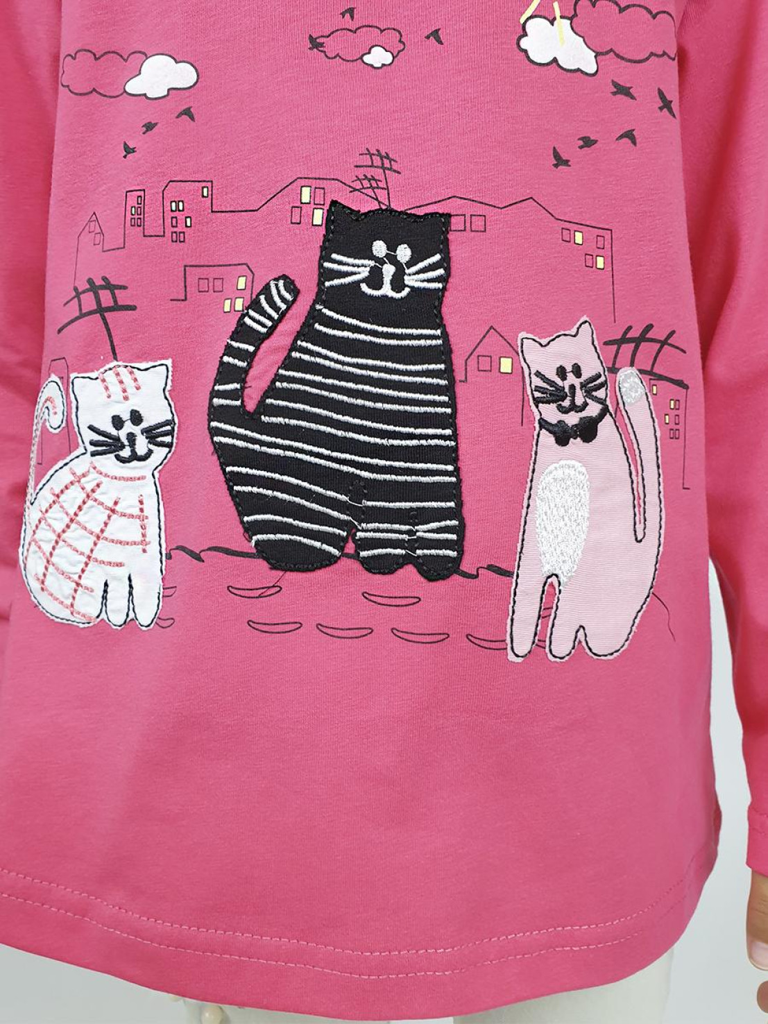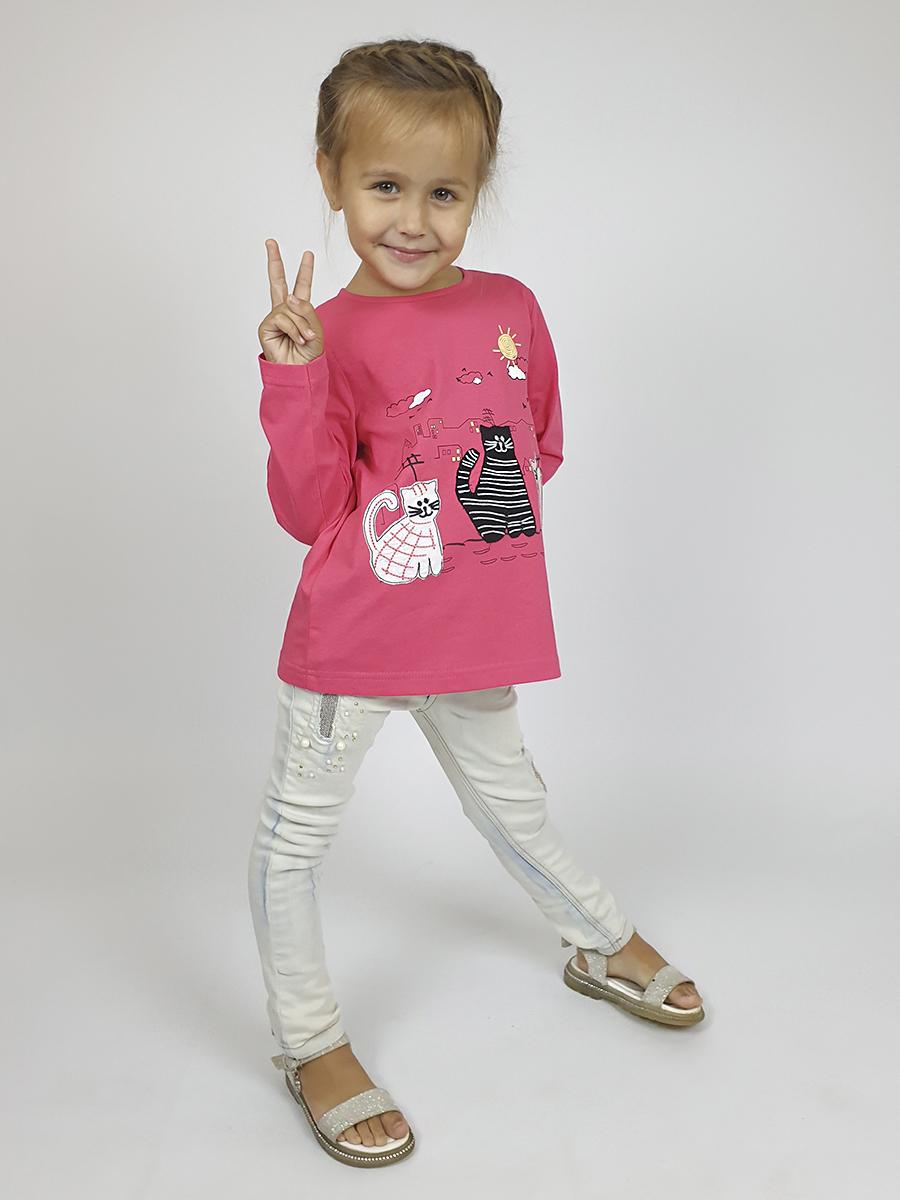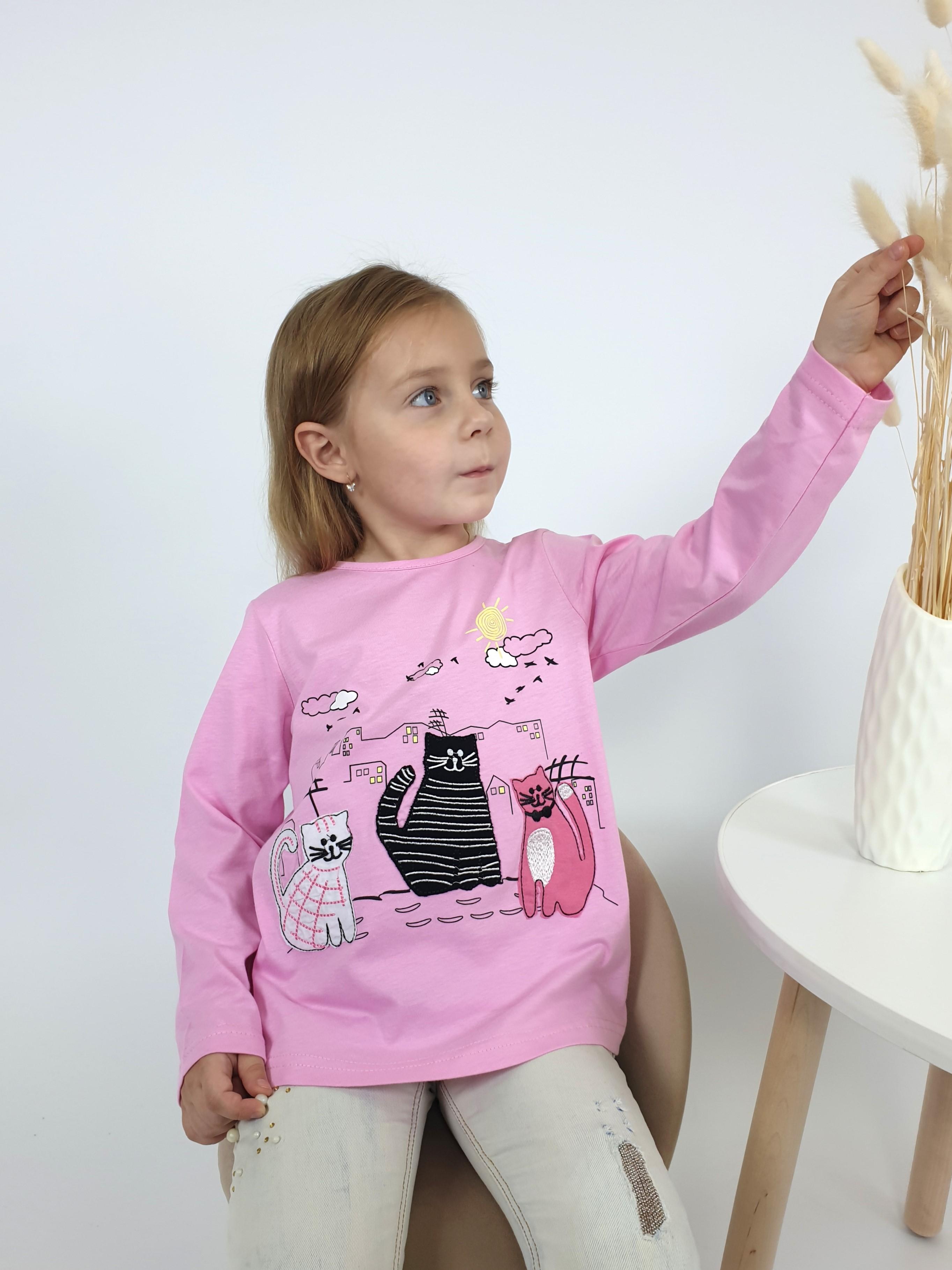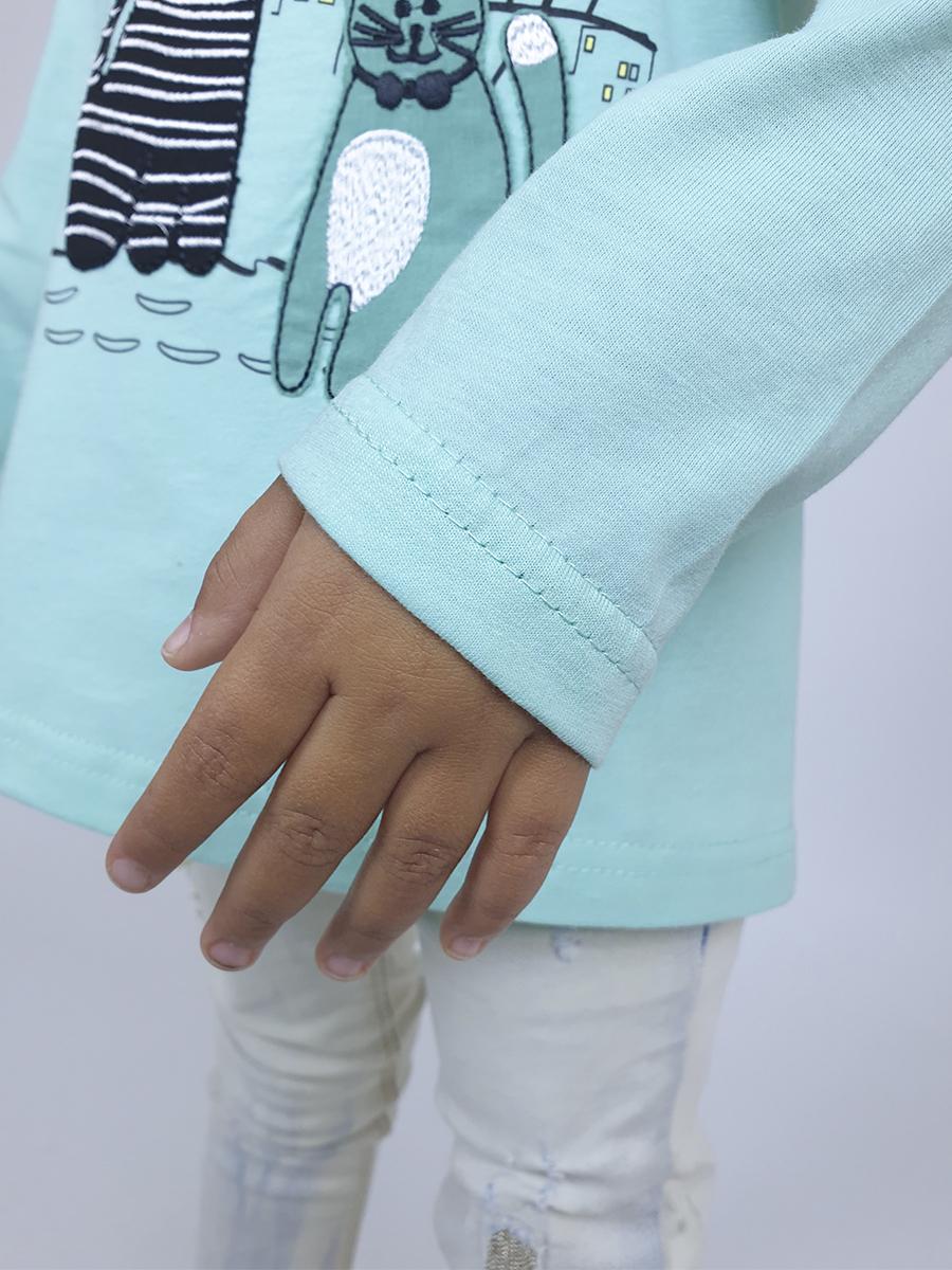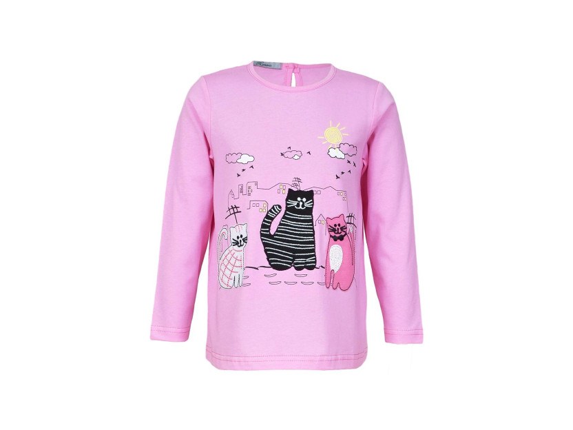 Кулирное полотно:100% х/б. Джемпер-силуэт трапеция,длинный втачной рукав.Горловина окантована,застежка на пуговицу по спинке.Печать на переде и вышивка(аппликация).