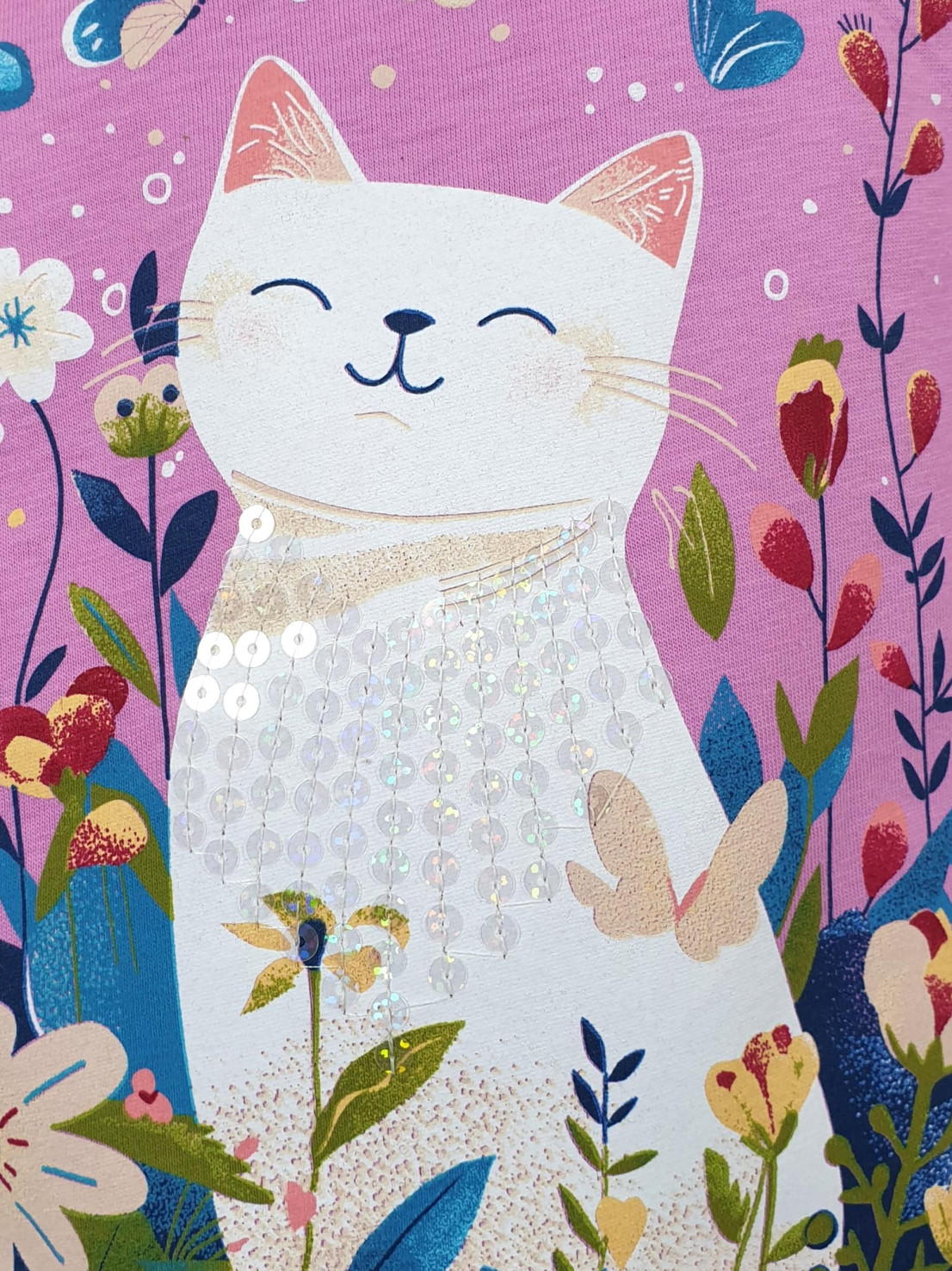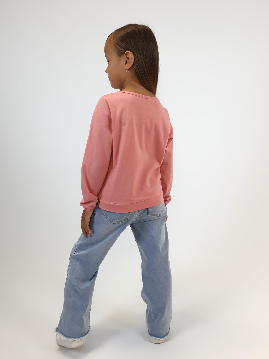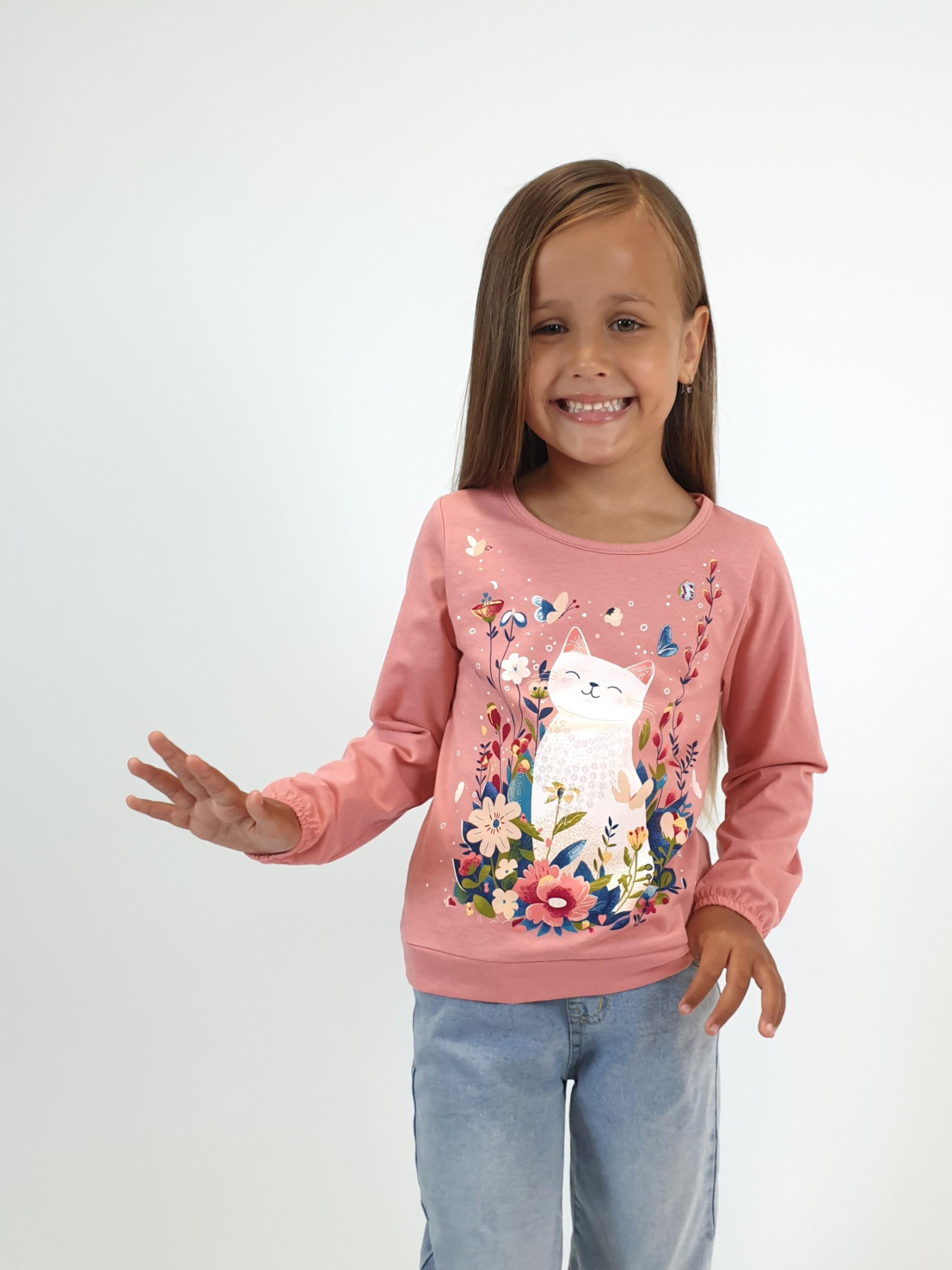 Кулирное полотно:100% х/б. Джемпер-прямого силуэта,на поясе.На переде печать и вышивка(пайетки),втачной длинный рукав на резинке.Горловина окантована.
