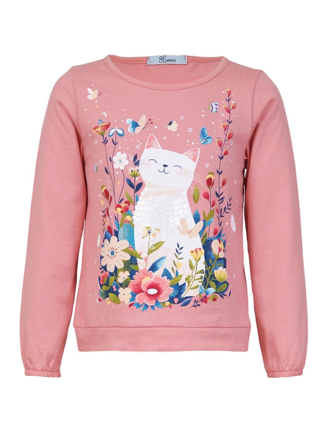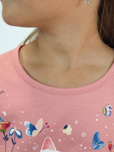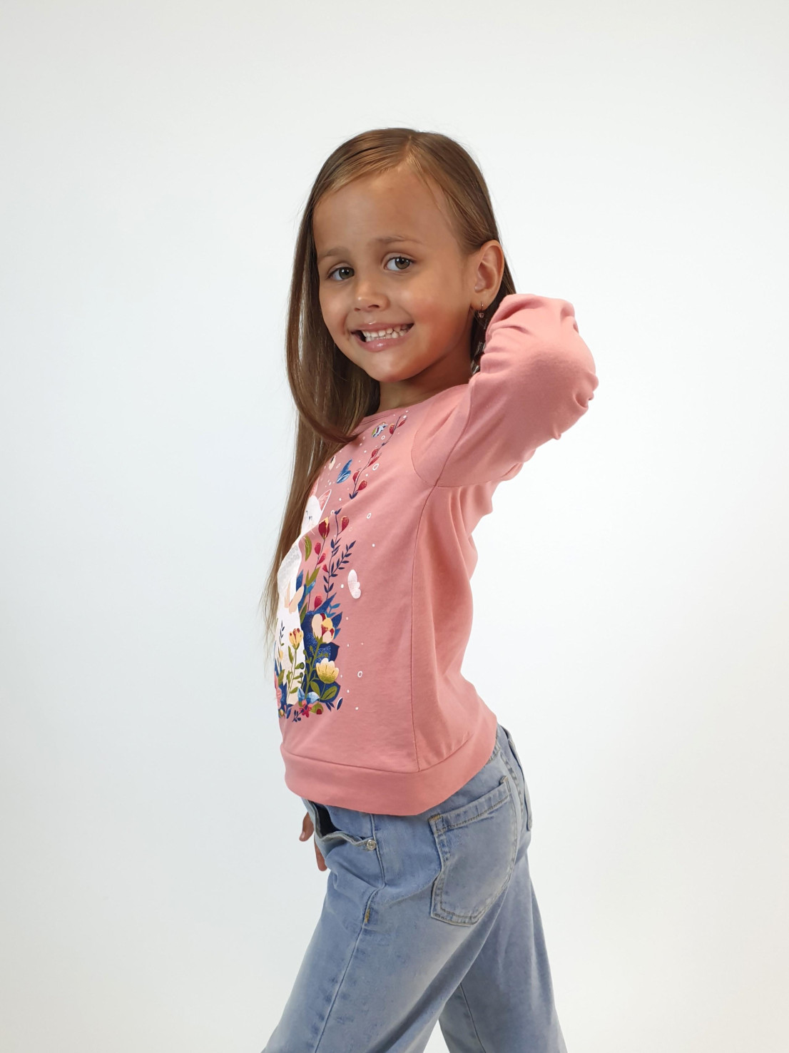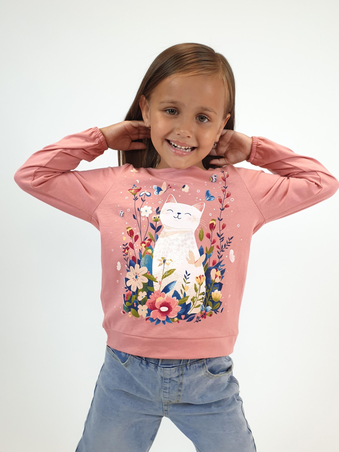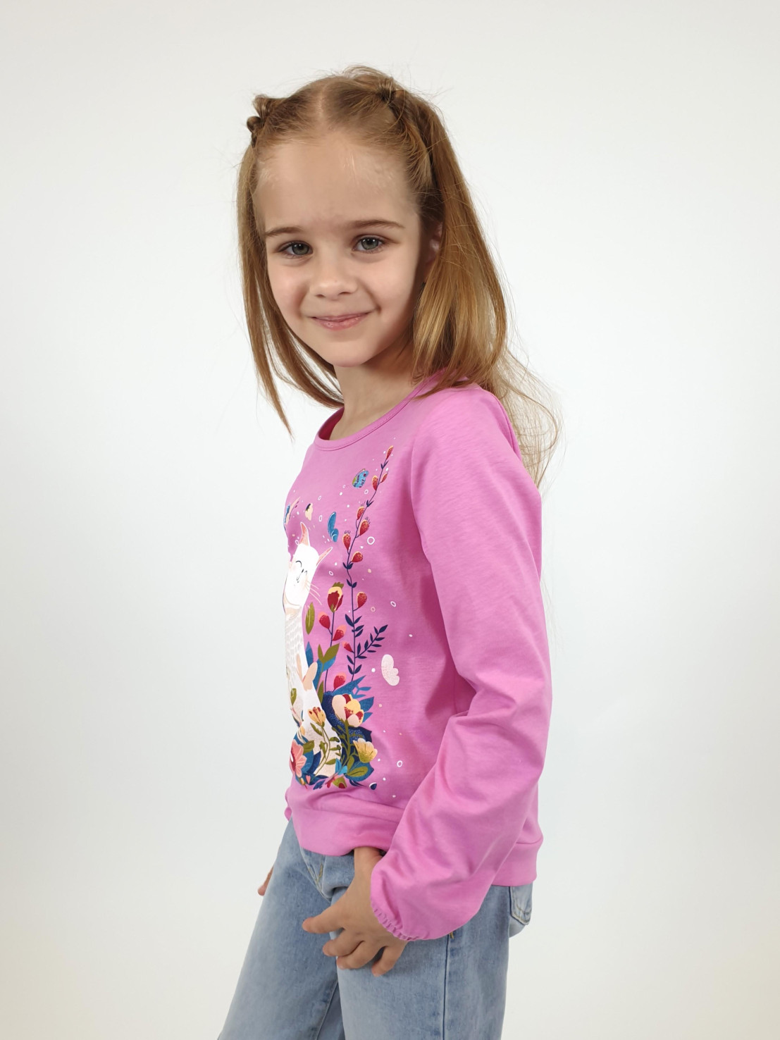 Кулирное полотно:100% х/б. Джемпер-прямого силуэта,на поясе.На переде печать и вышивка(пайетки),втачной длинный рукав на резинке.Горловина окантована.