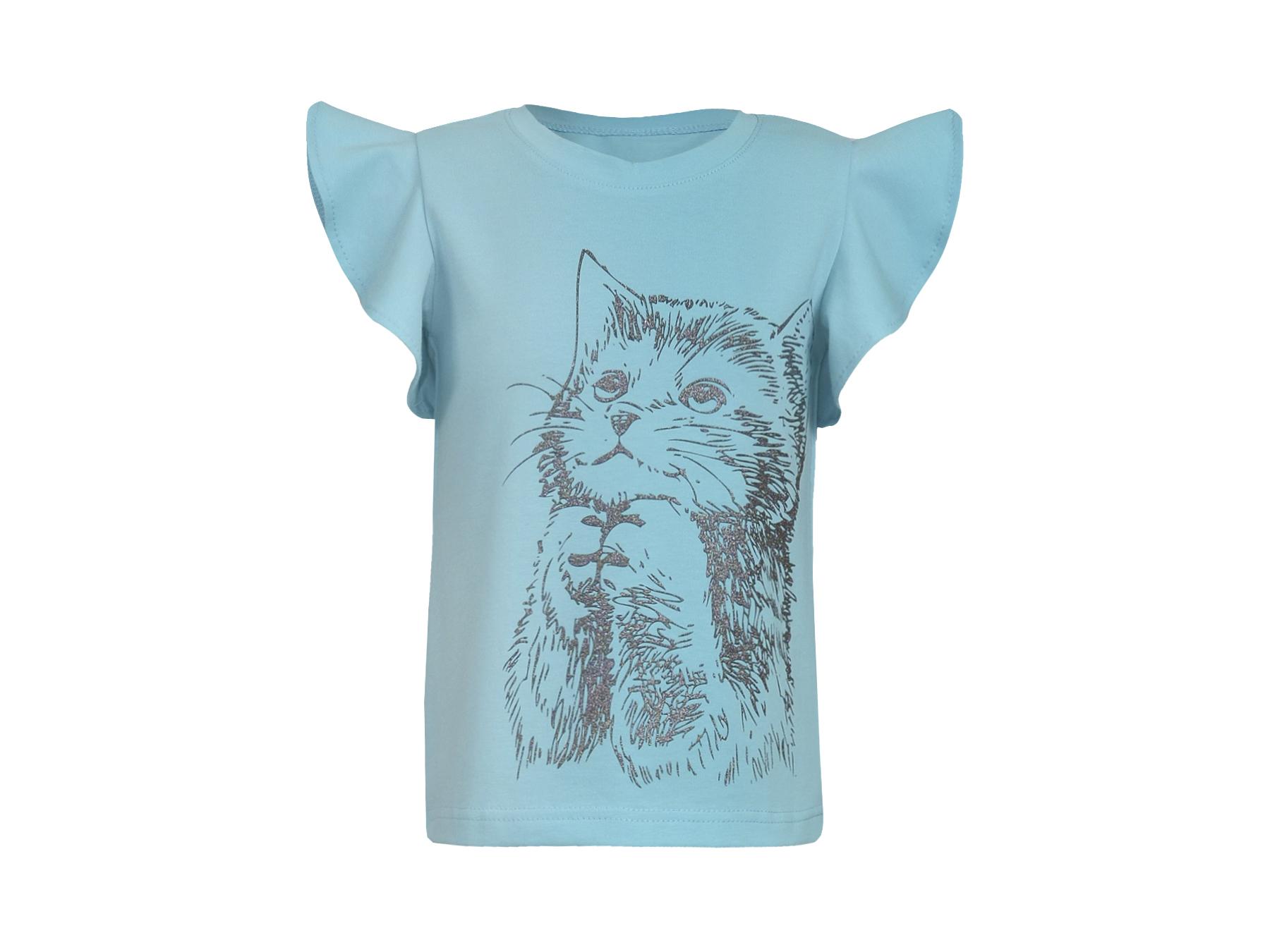 Кулирное полотно: 95% х/б.,5% лайкра. Джемпер-полуприлегающий силуэт,перед с печатью.Короткий рукав-волан,горловина обработана планкой.