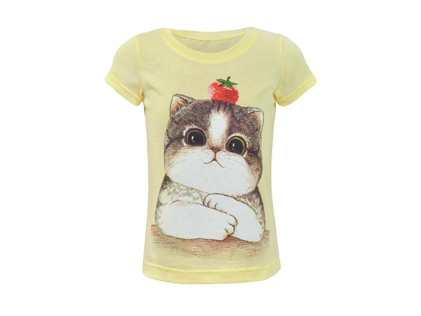 Кулирное полотно 100% х/б. Джемпер- прямого силуэта, перед с печатью, втачной короткий рукав. Горловина обработана планкой.