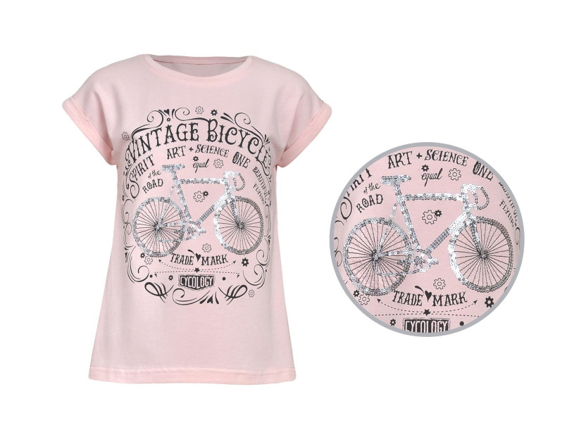Футболка для девочки изготовлена из кулирного полотна ( 95% хлопок, 5% лайкра). Материал легкий, приятный на ощупь, устойчивый к частым стиркам. Изящный принт с вышивкой-пайетки точно понравится юным модницам. Идеальна для прогулок, школы и как повседневный вариант.