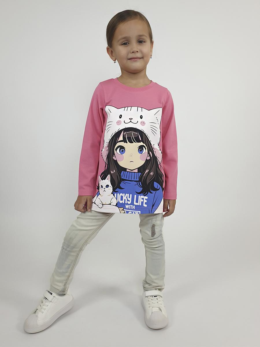 Кулирное полотно:100% х/б. Джемпер-силуэт трапеция,перед с печатью.Рукав втачной,длинный.Горловина обработана ластиком,низ изделия и рукава подшиты.