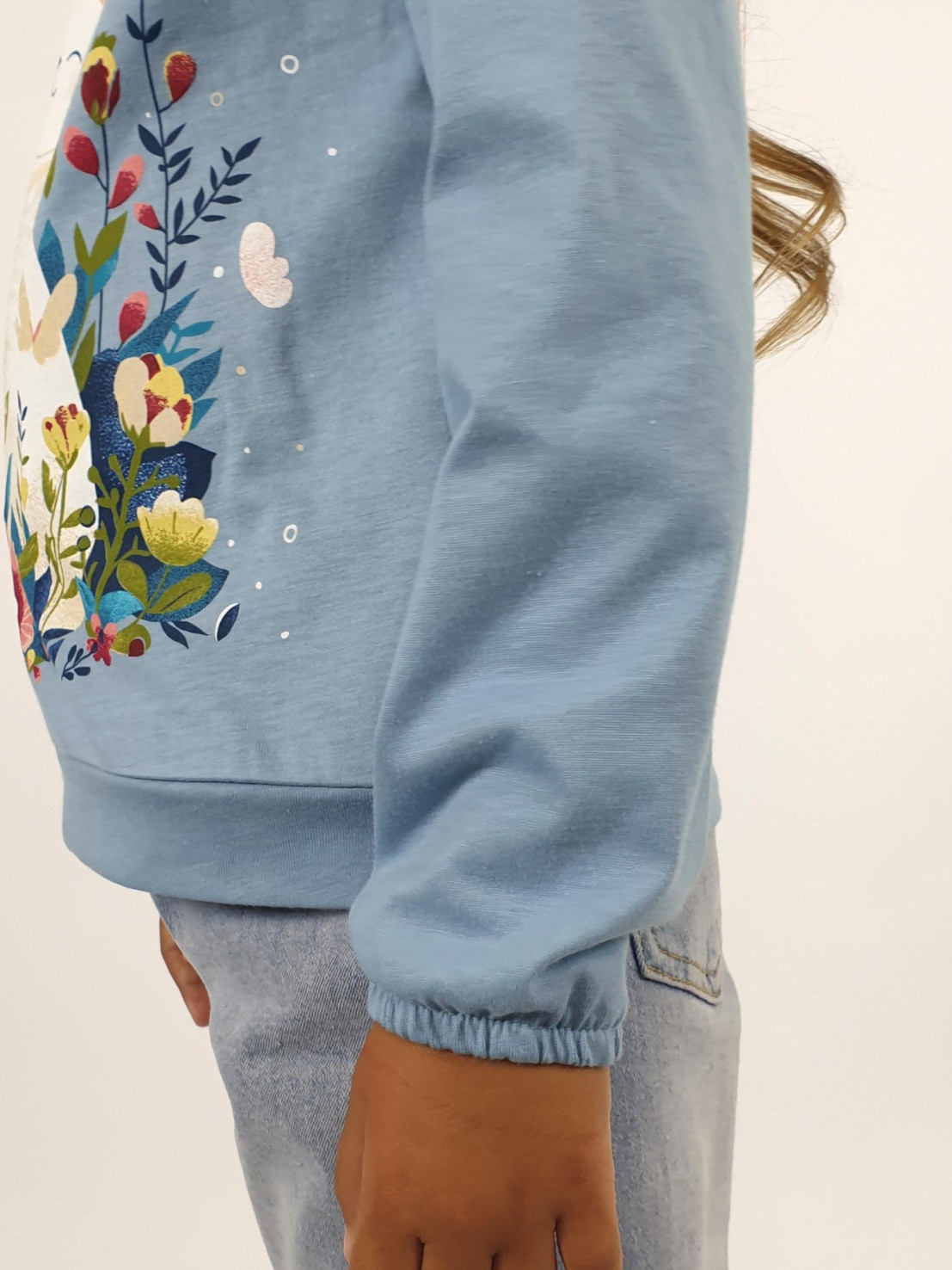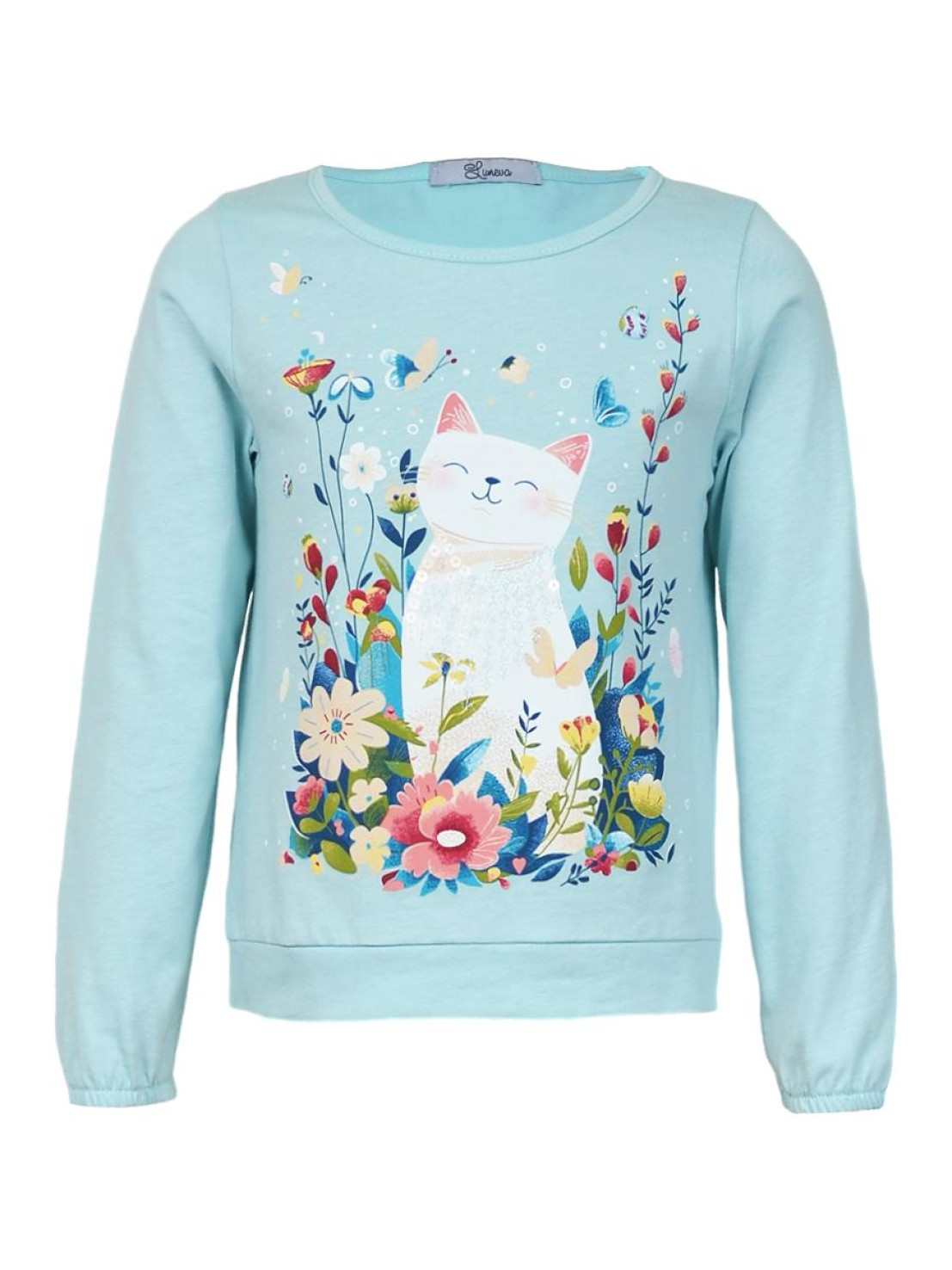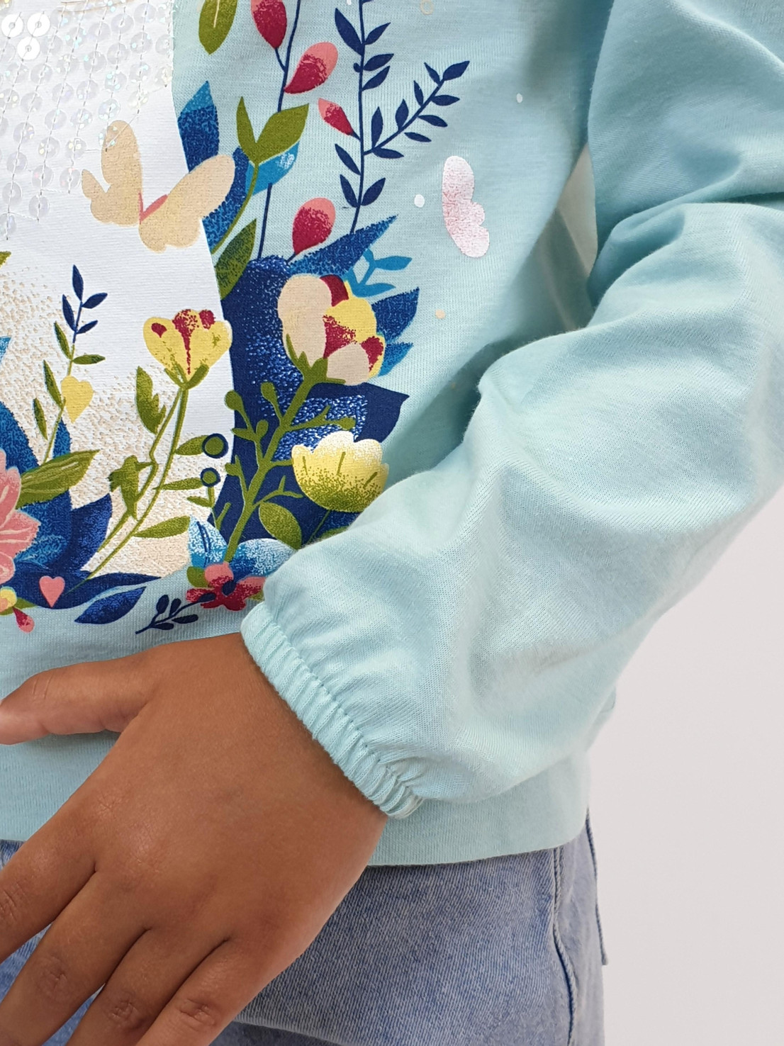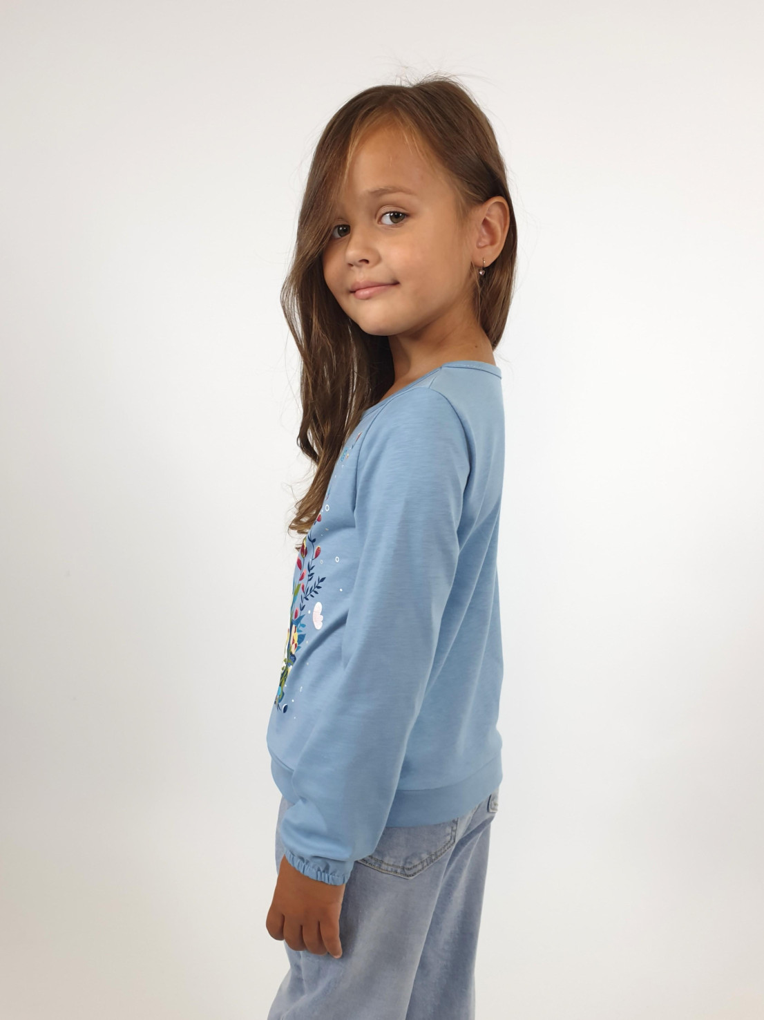 Кулирное полотно:100% х/б. Джемпер-прямого силуэта,на поясе.На переде печать и вышивка(пайетки),втачной длинный рукав на резинке.Горловина окантована.