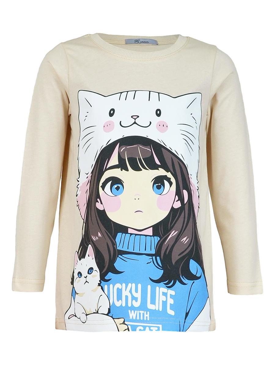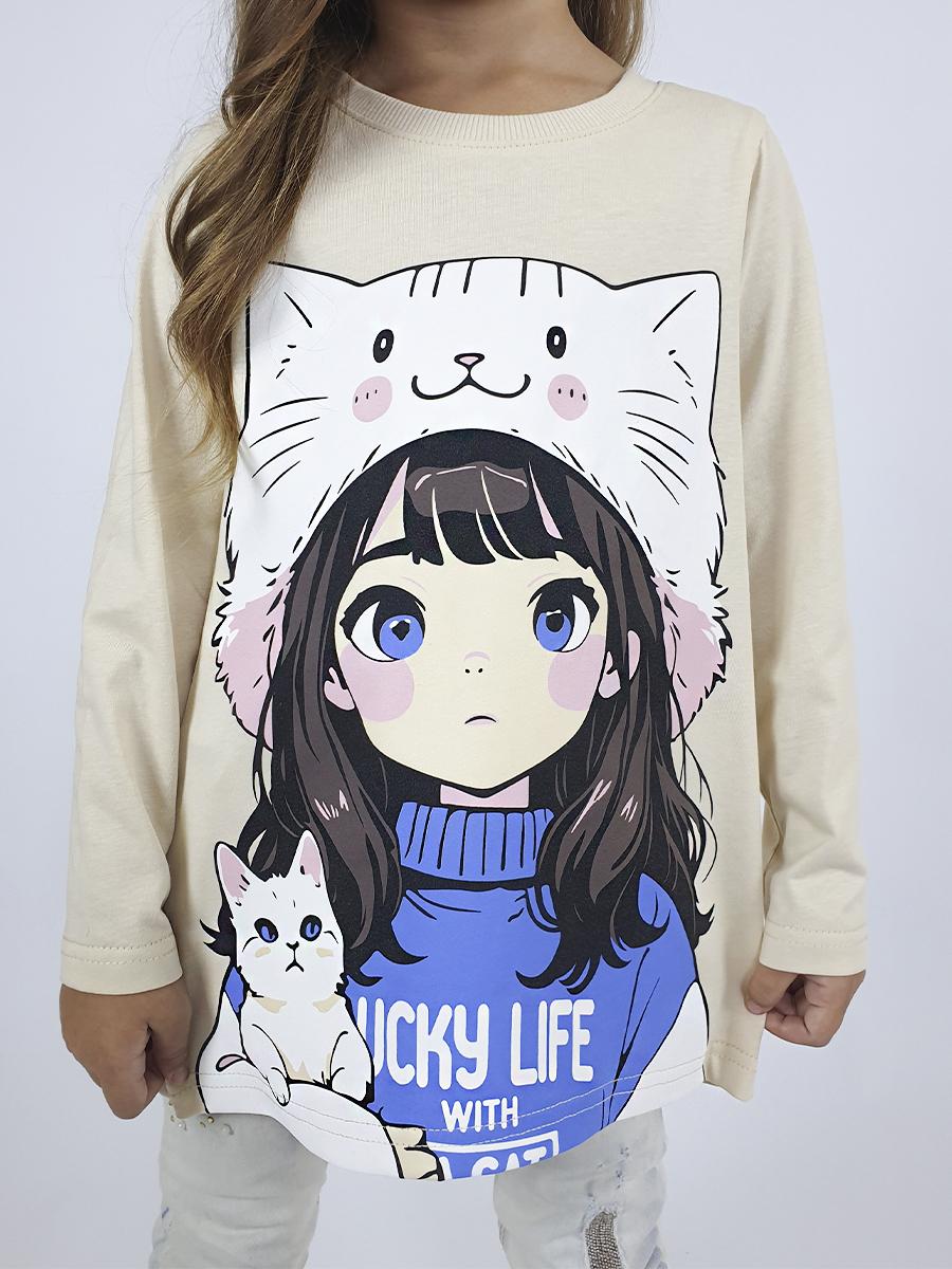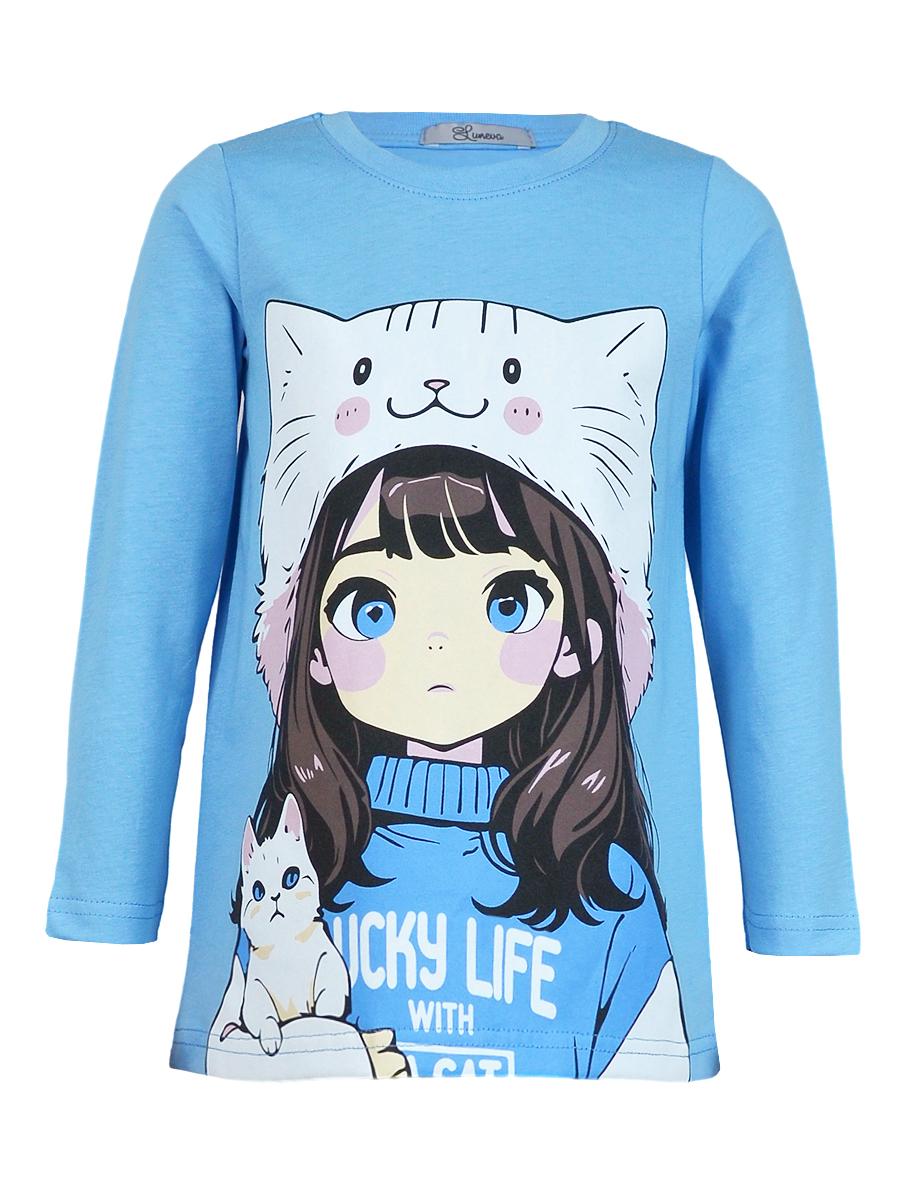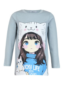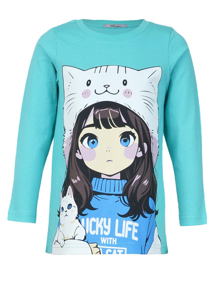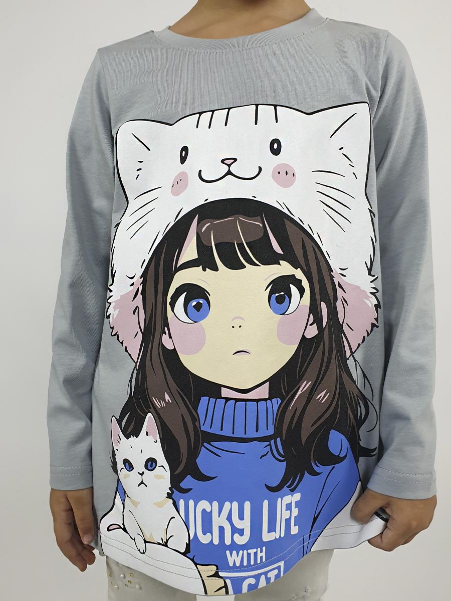 Кулирное полотно:100% х/б. Джемпер-силуэт трапеция,перед с печатью.Рукав втачной,длинный.Горловина обработана ластиком,низ изделия и рукава подшиты.