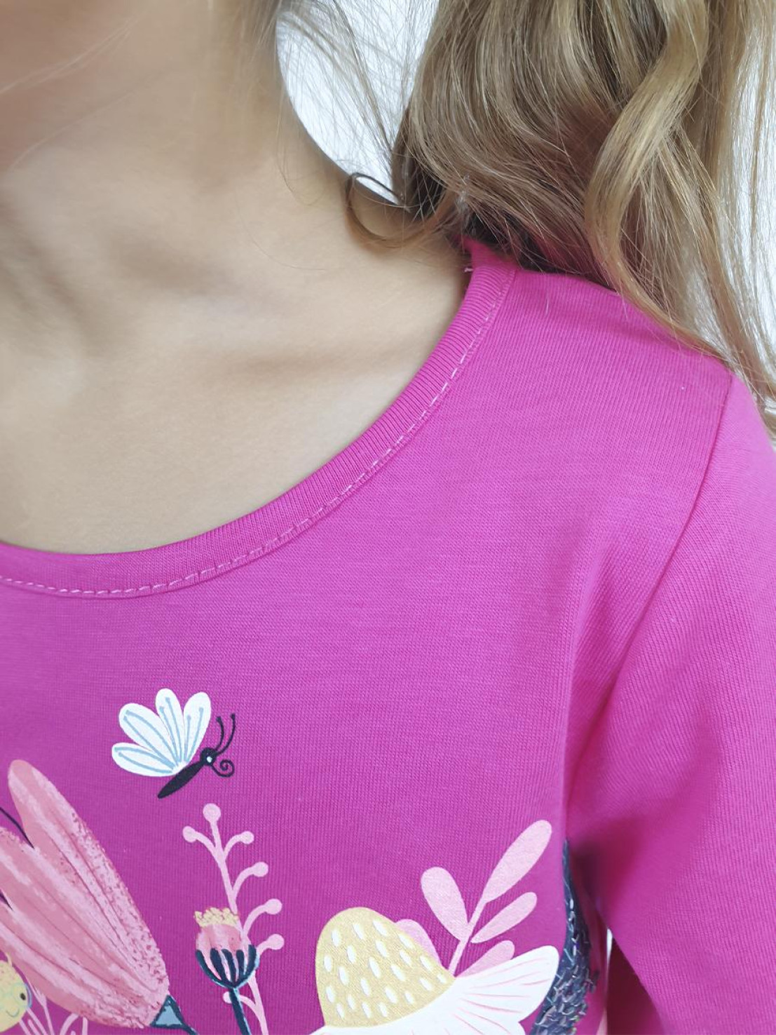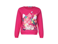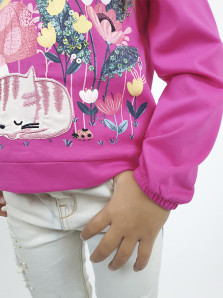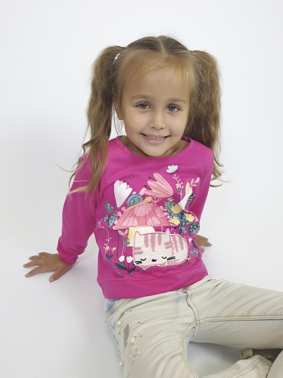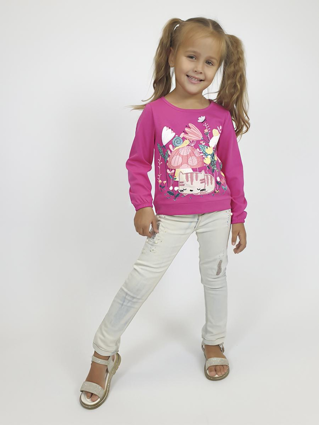 Кулирное полотно:100% х/б. Джемпер-прямого силуэта,на поясе.Печать на переде и вышивка(пайетки) с апликацией,втачной длинный рукав на резинке.Горловина окантована.