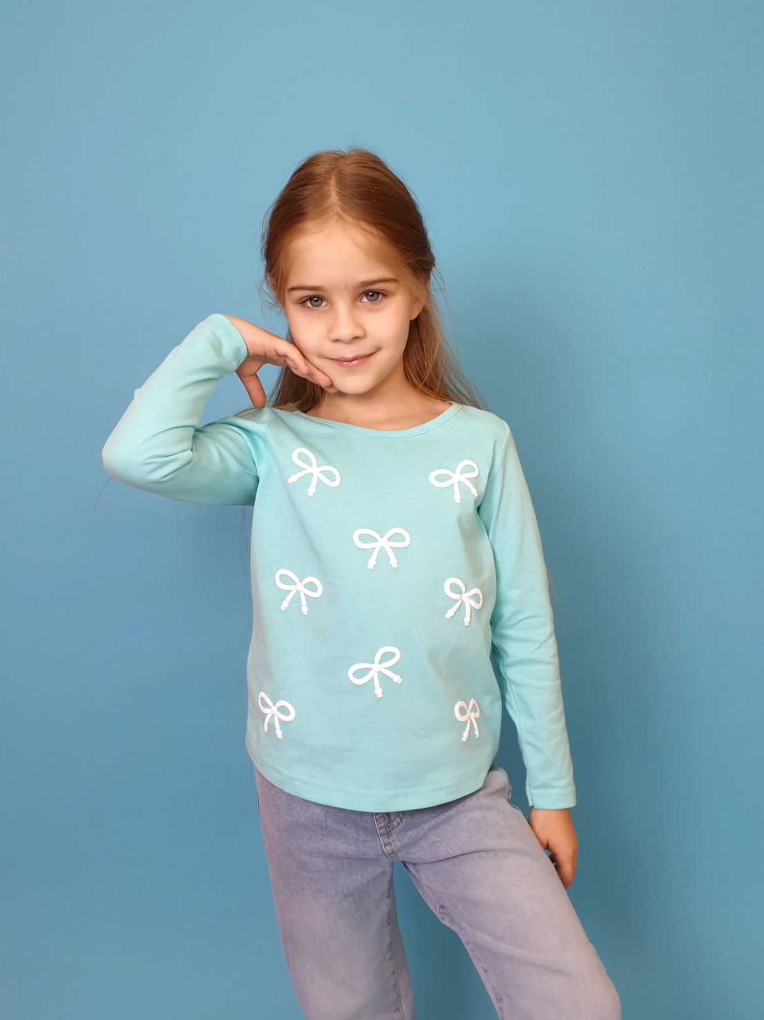 Кулирное полотно:100% х/б. Джемпер-полуприлегающий силуэт,перед с печатью.Рукав длинный,втачной.Горловина окантована.