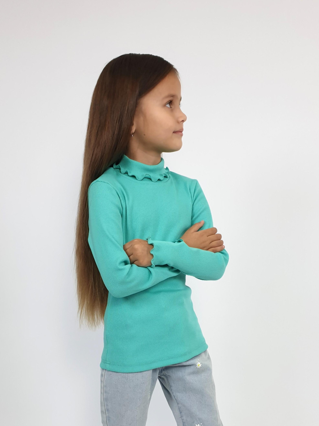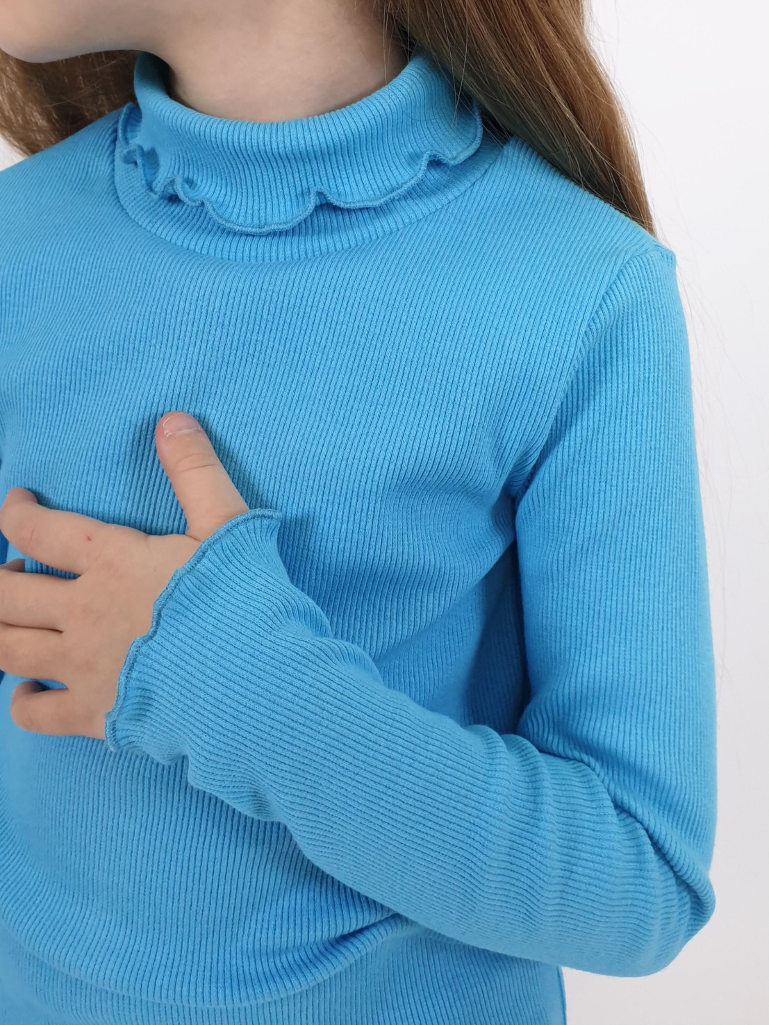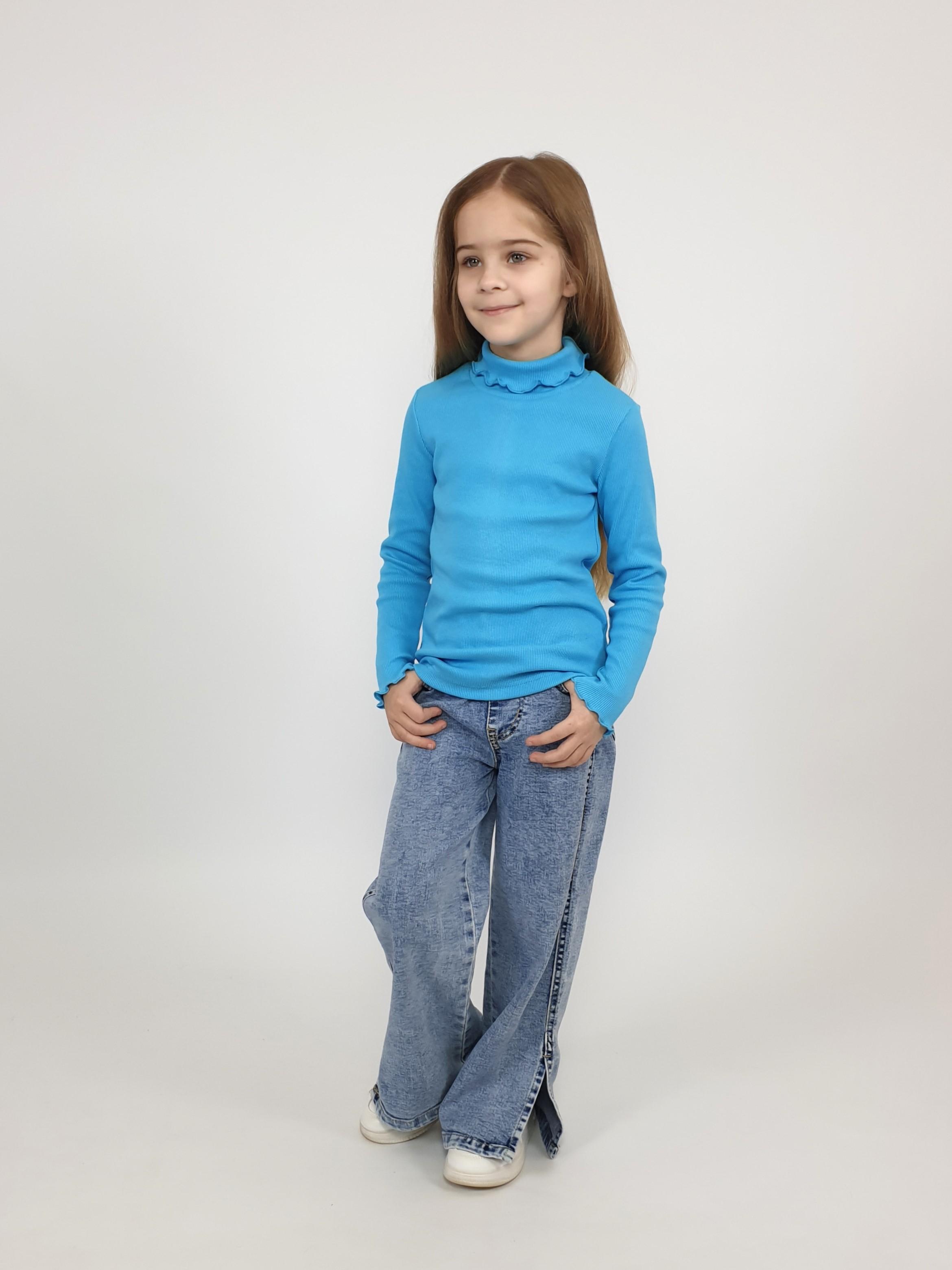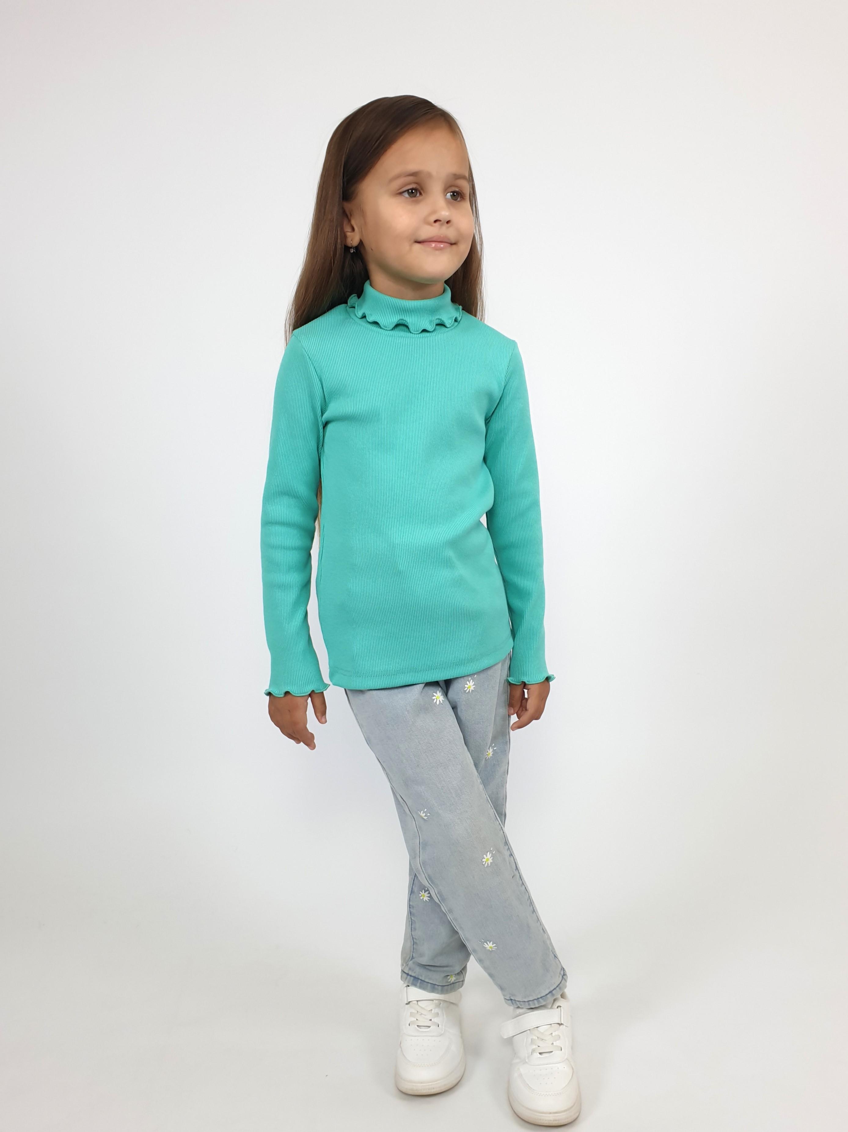 Трикотажное полотно:95% х/б,5% лайкра. Джемпер-прилегающего силуэта.Рукав втачной,длинный.Воротник стойка с отворотом и низ рукава обработан спиральным швом.Низ изделия подшит.
