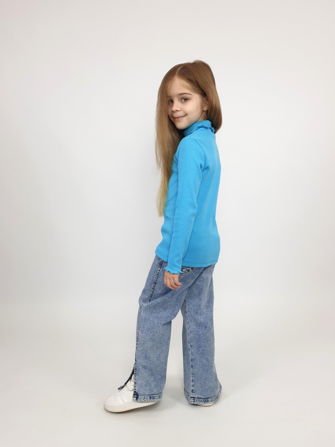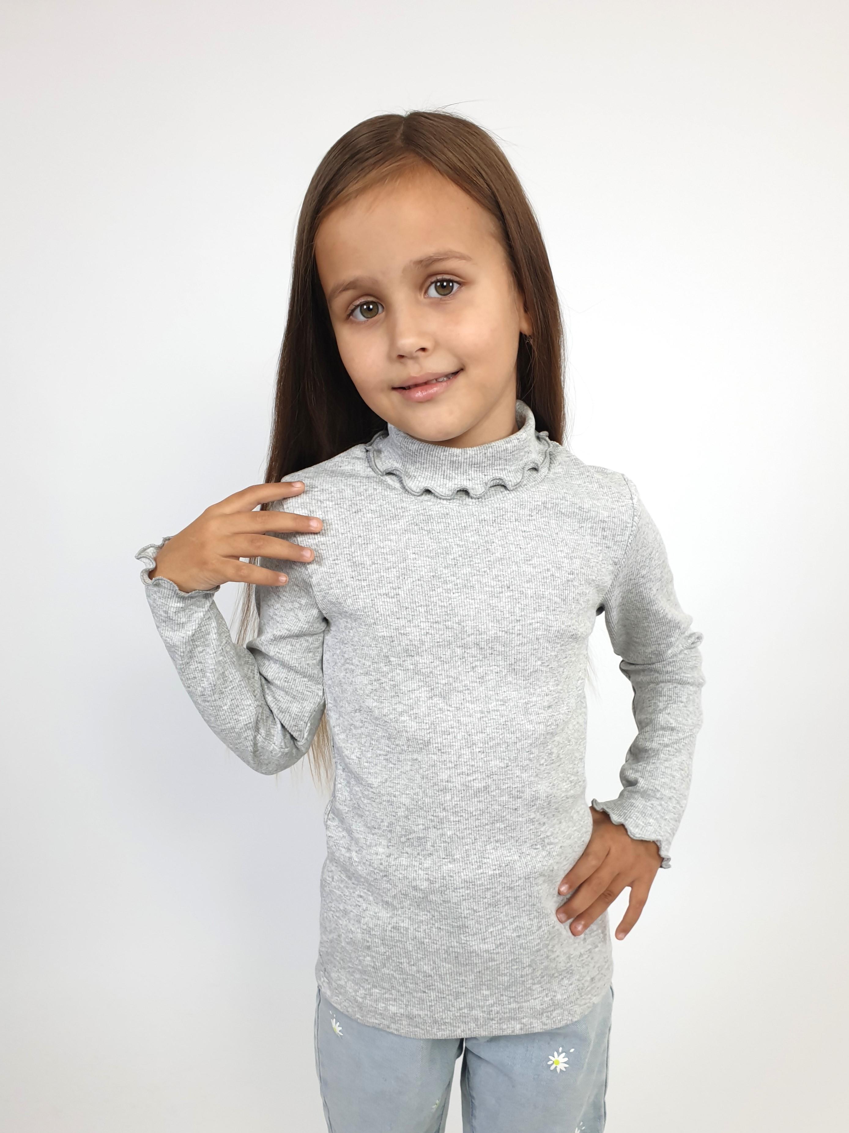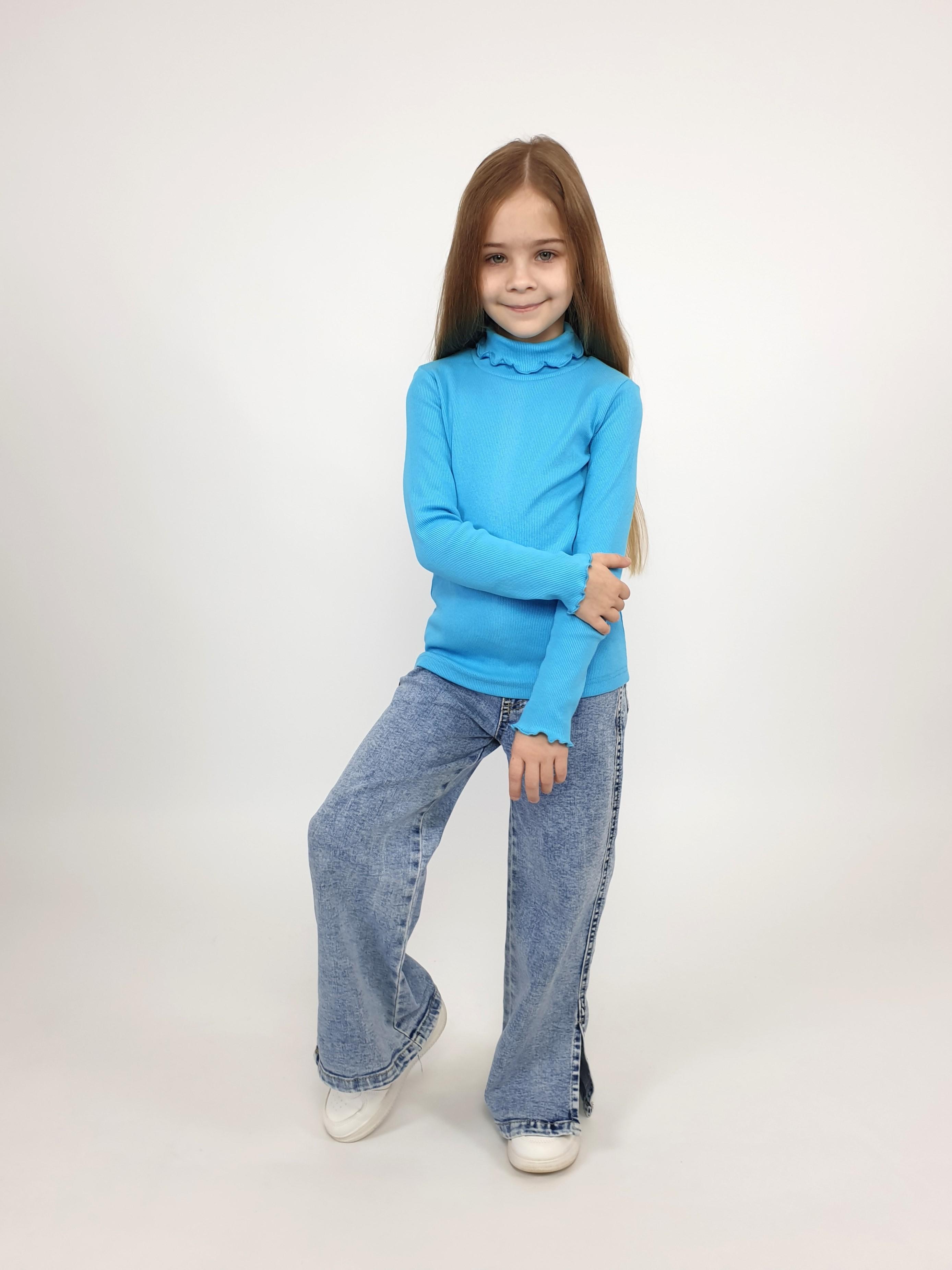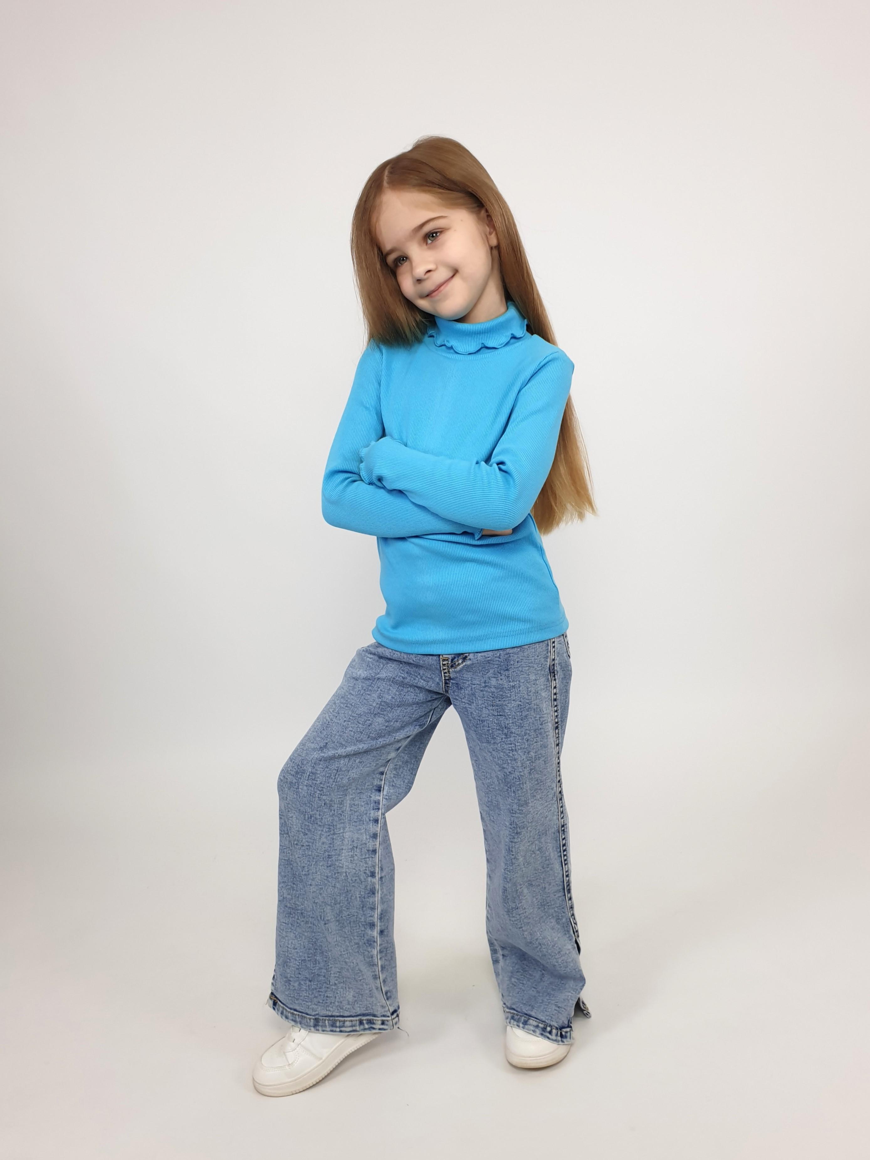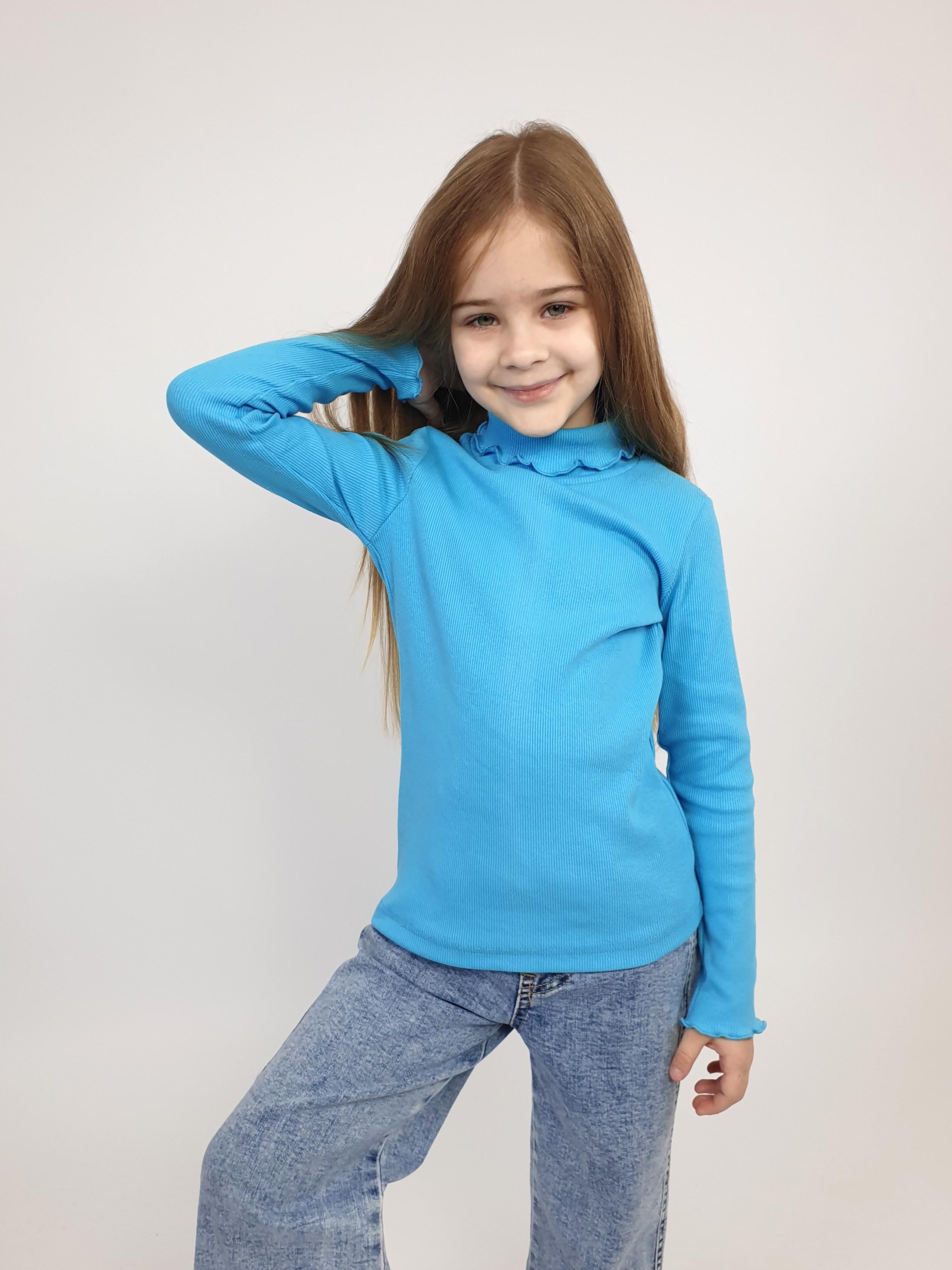 Трикотажное полотно:95% х/б,5% лайкра. Джемпер-прилегающего силуэта.Рукав втачной,длинный.Воротник стойка с отворотом и низ рукава обработан спиральным швом.Низ изделия подшит.