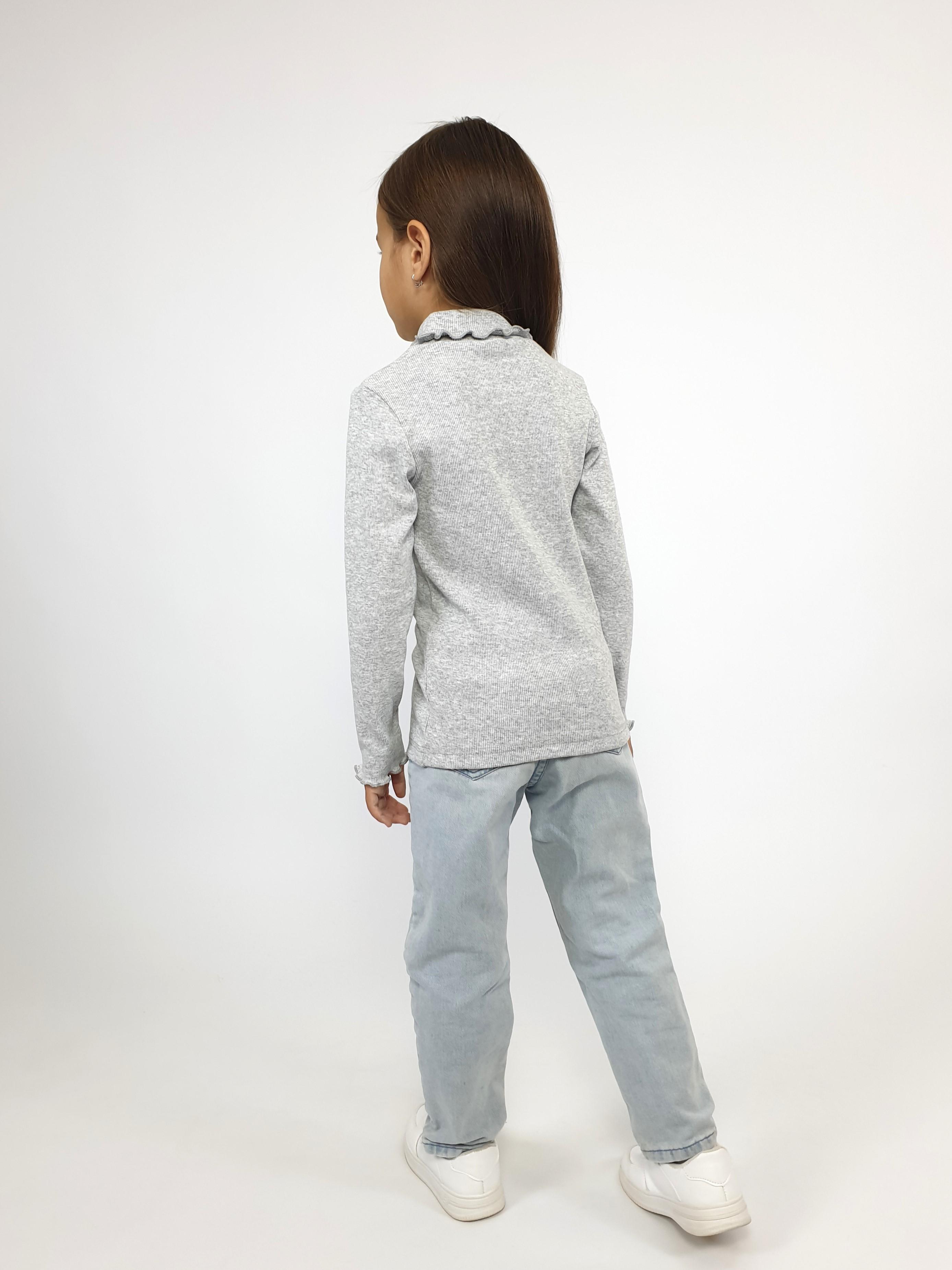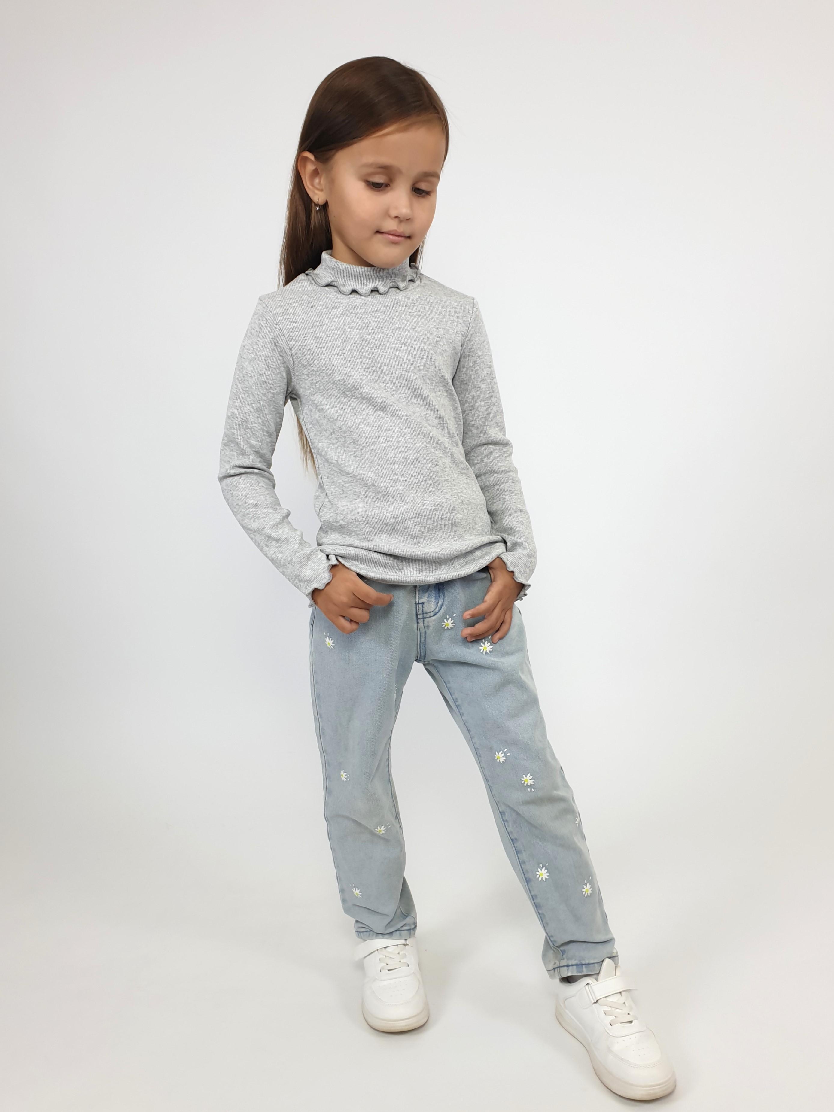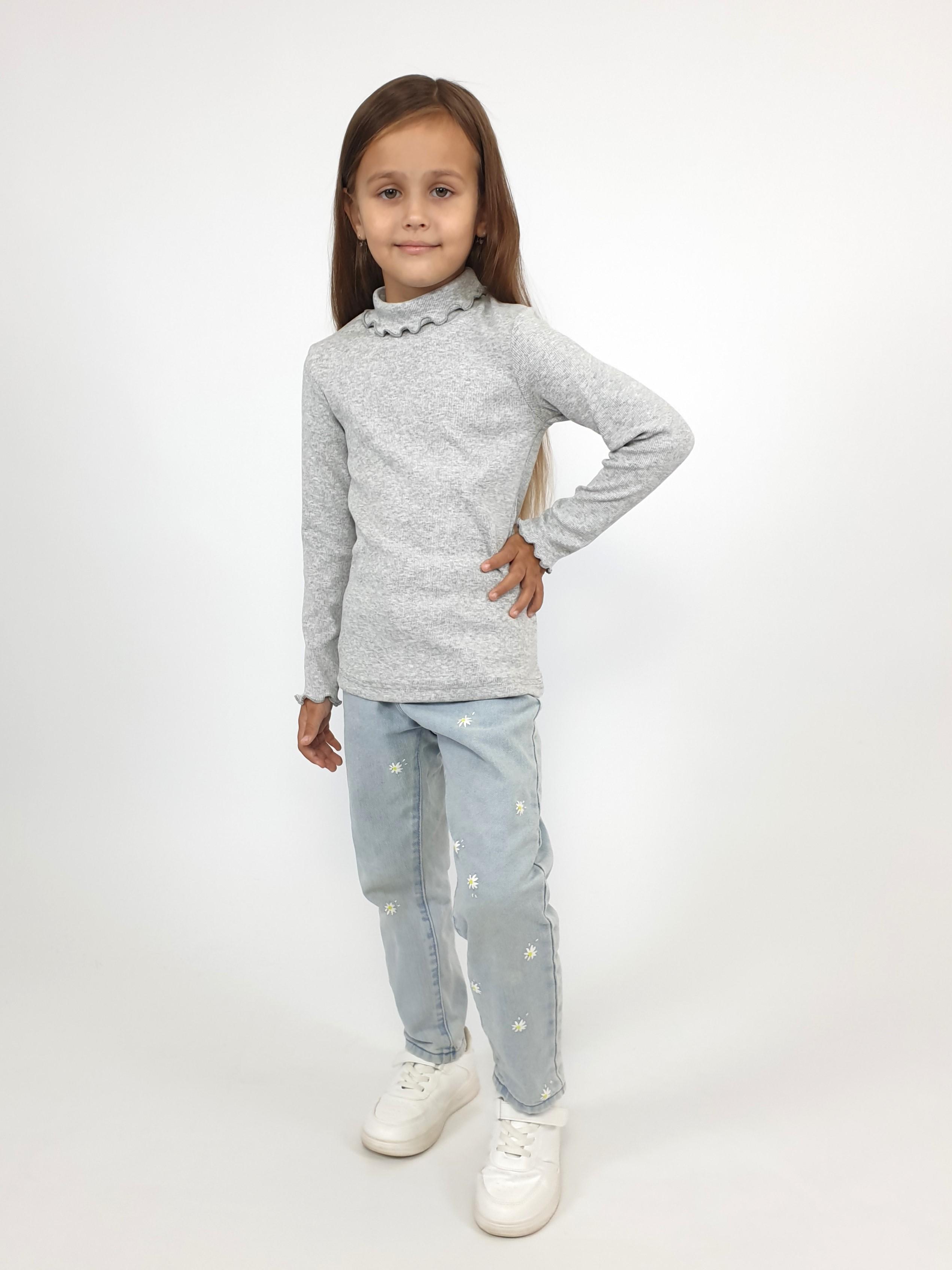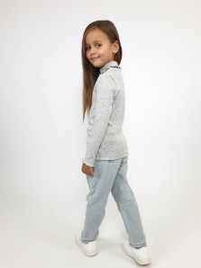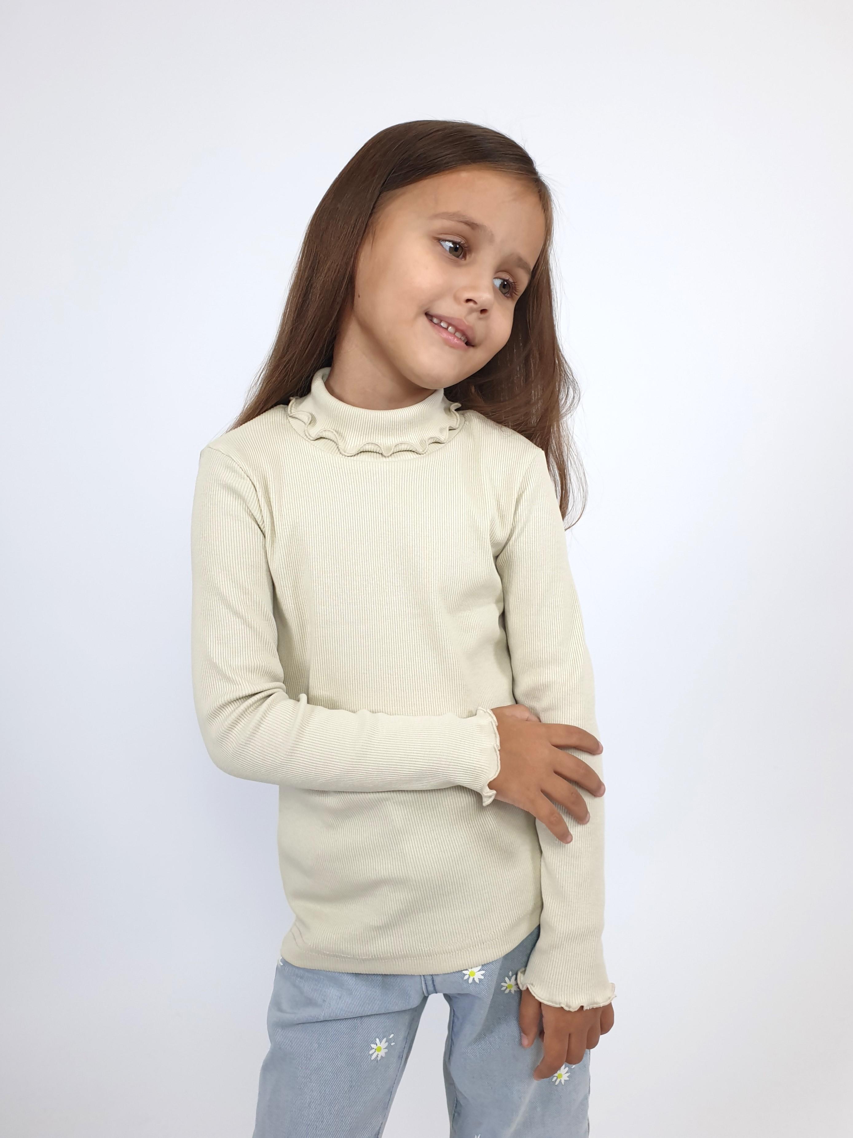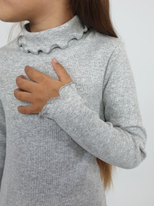 Трикотажное полотно:95% х/б,5% лайкра. Джемпер-прилегающего силуэта.Рукав втачной,длинный.Воротник стойка с отворотом и низ рукава обработан спиральным швом.Низ изделия подшит.