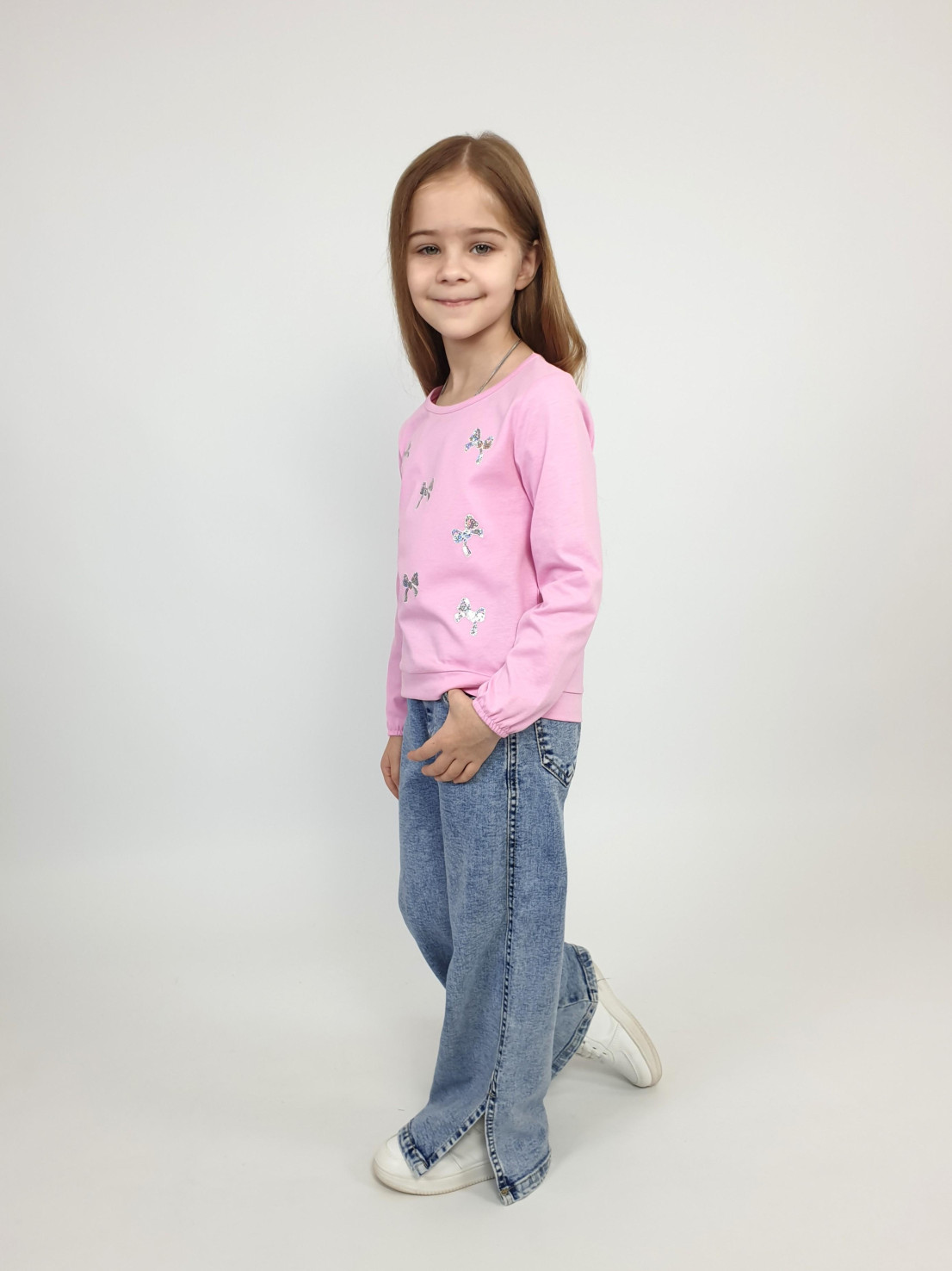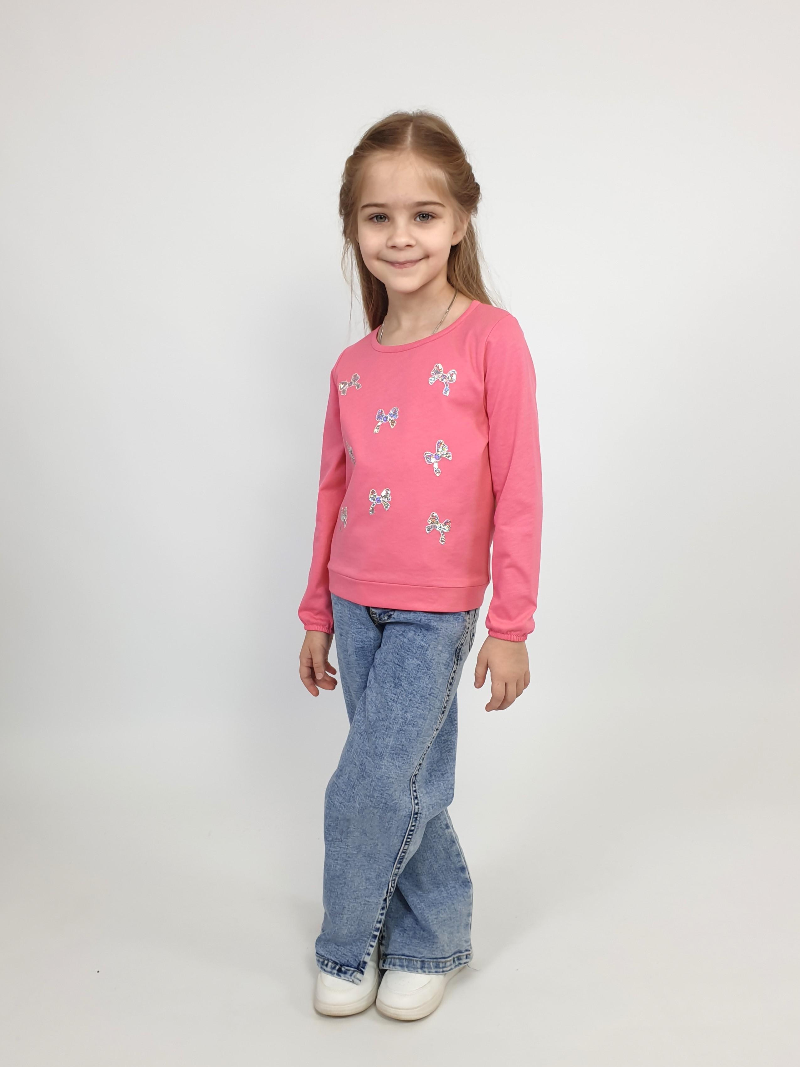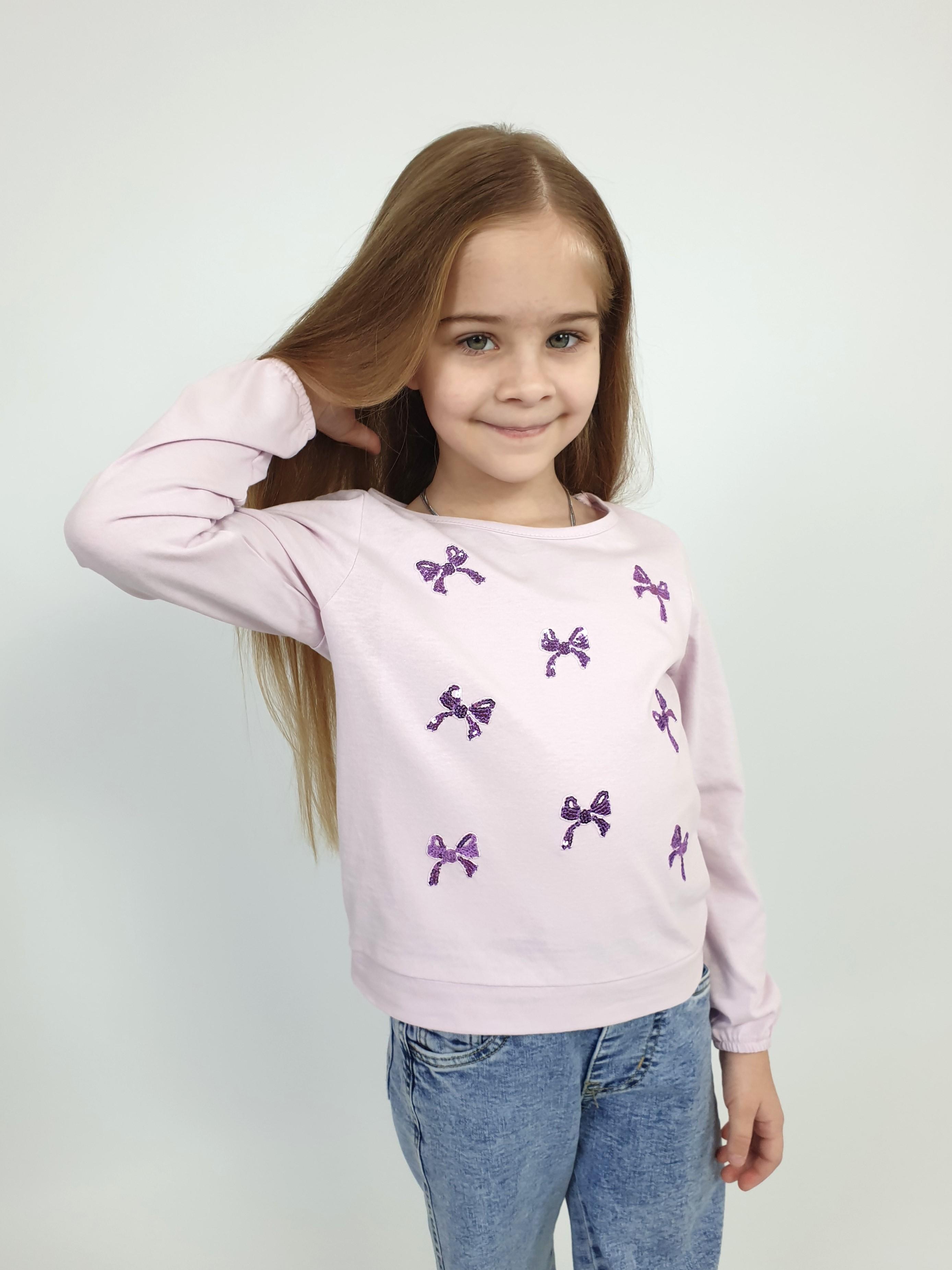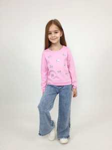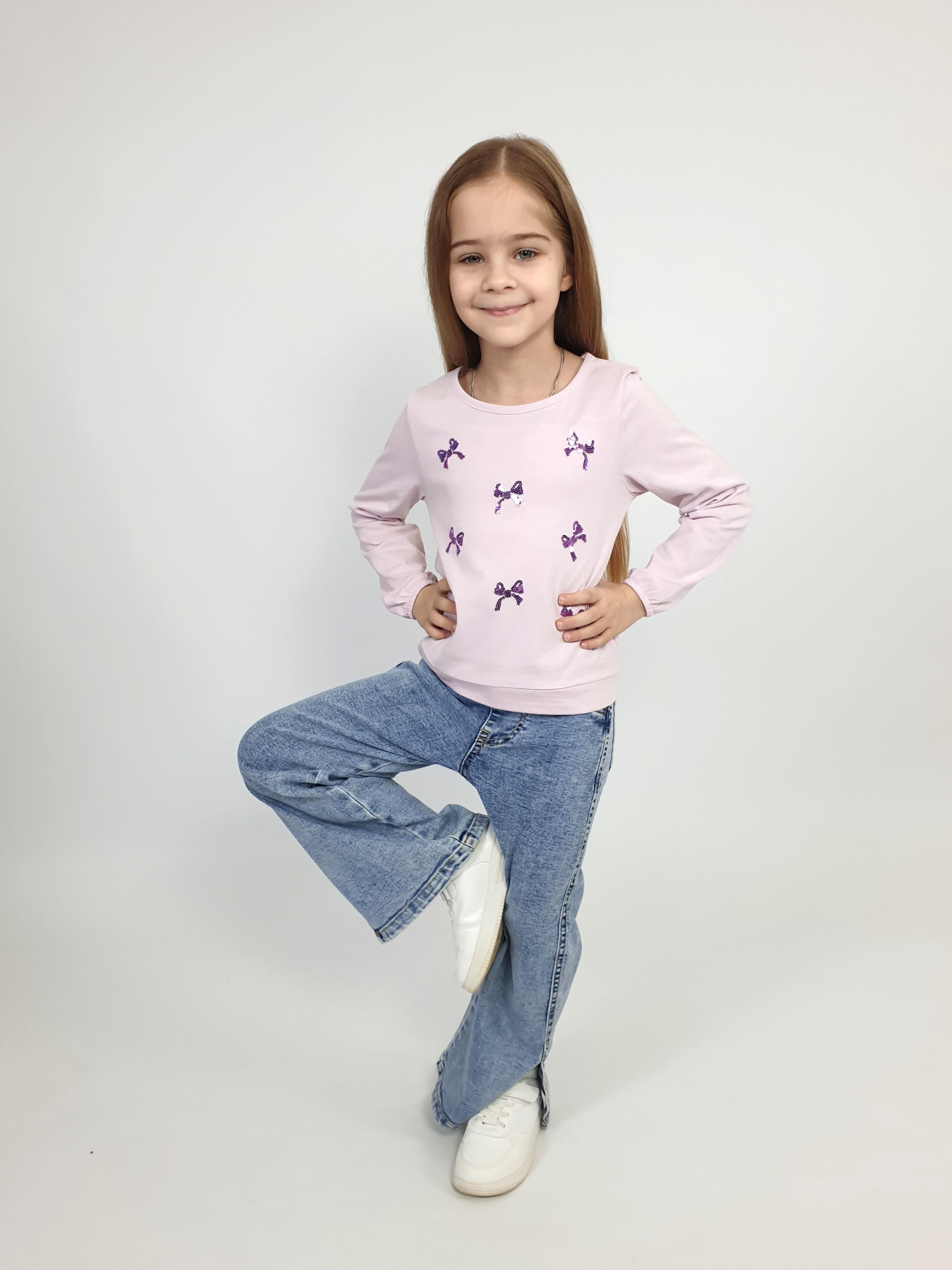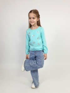Кулирное полотно:100% х/б. Джемпер-прямого силуэта,на поясе.Перед с вышивкой(пайетки),втачной длинный рукав на резинке.Горловина окантована.