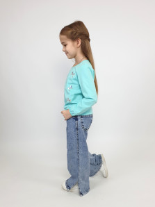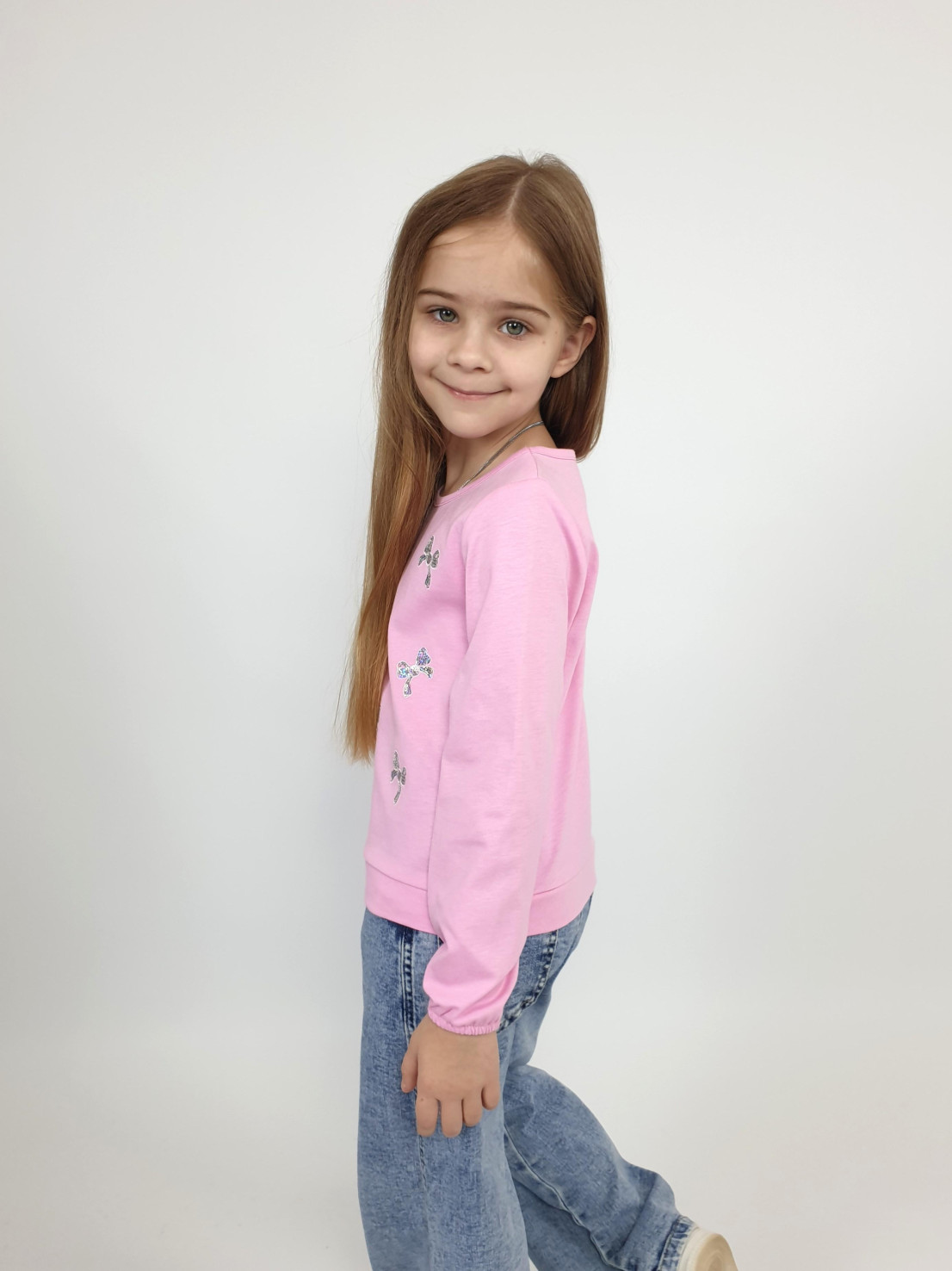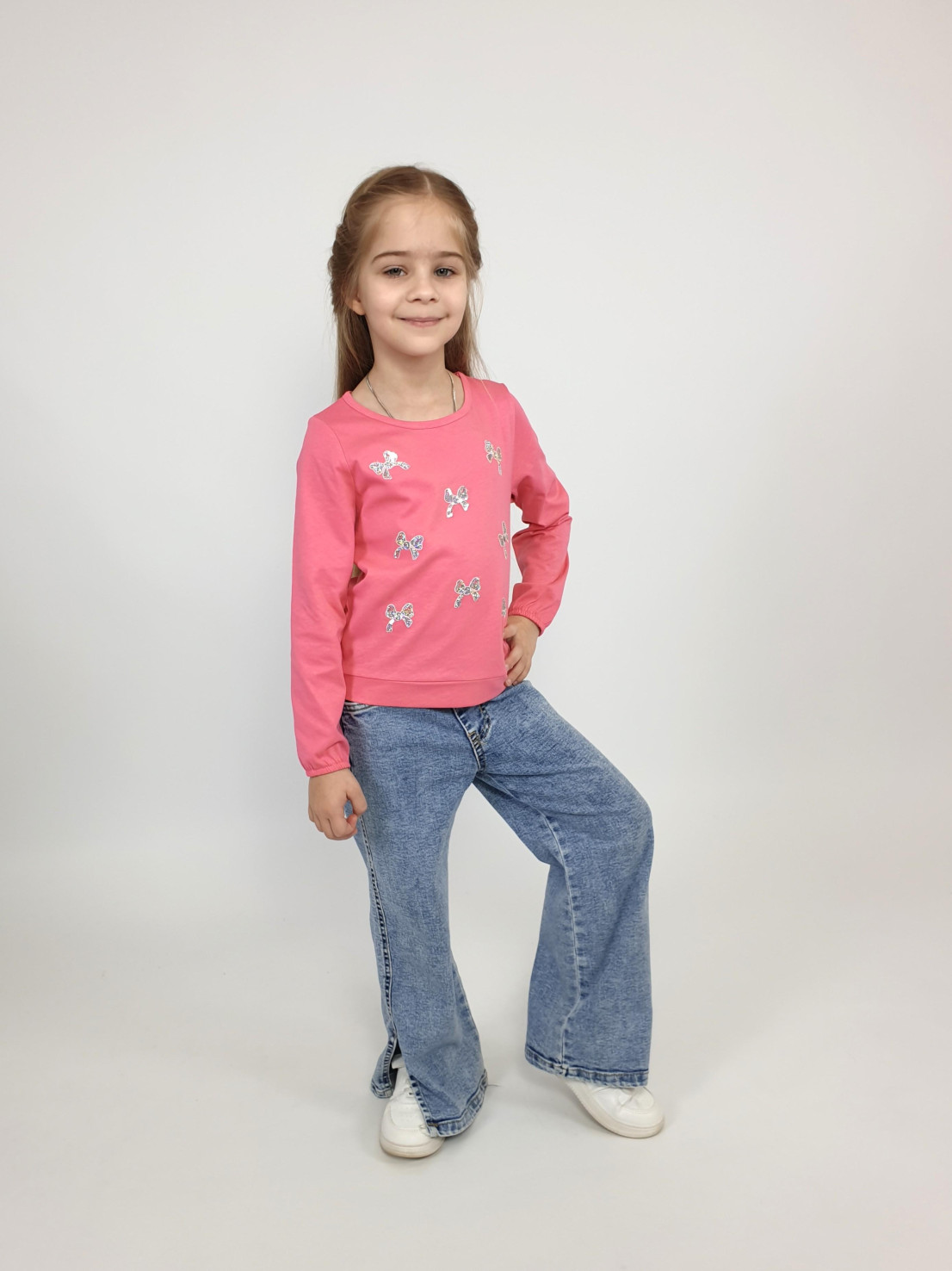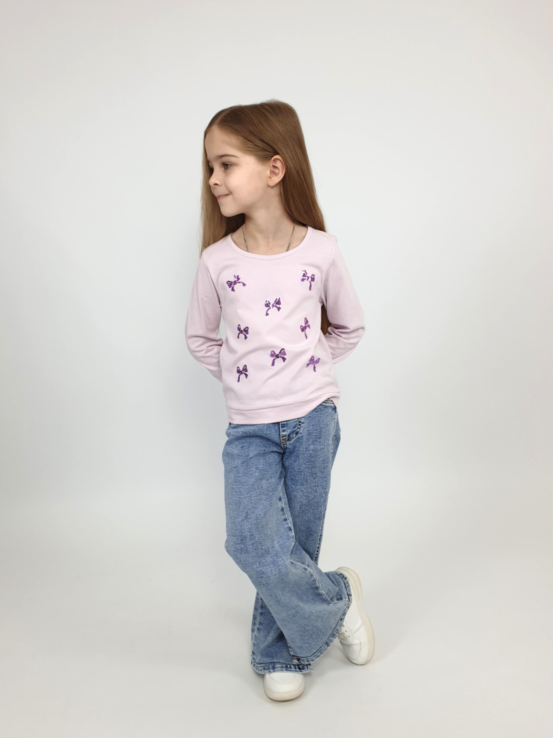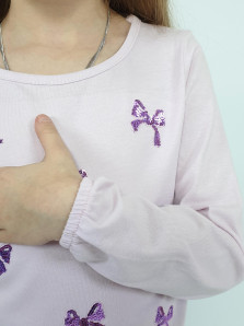 Кулирное полотно:100% х/б. Джемпер-прямого силуэта,на поясе.Перед с вышивкой(пайетки),втачной длинный рукав на резинке.Горловина окантована.