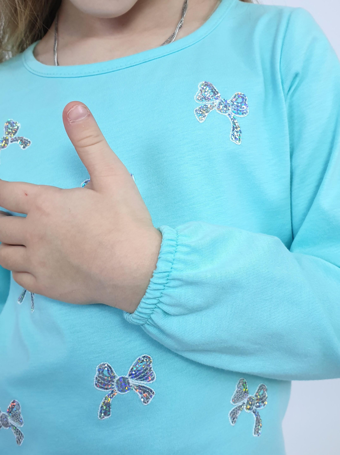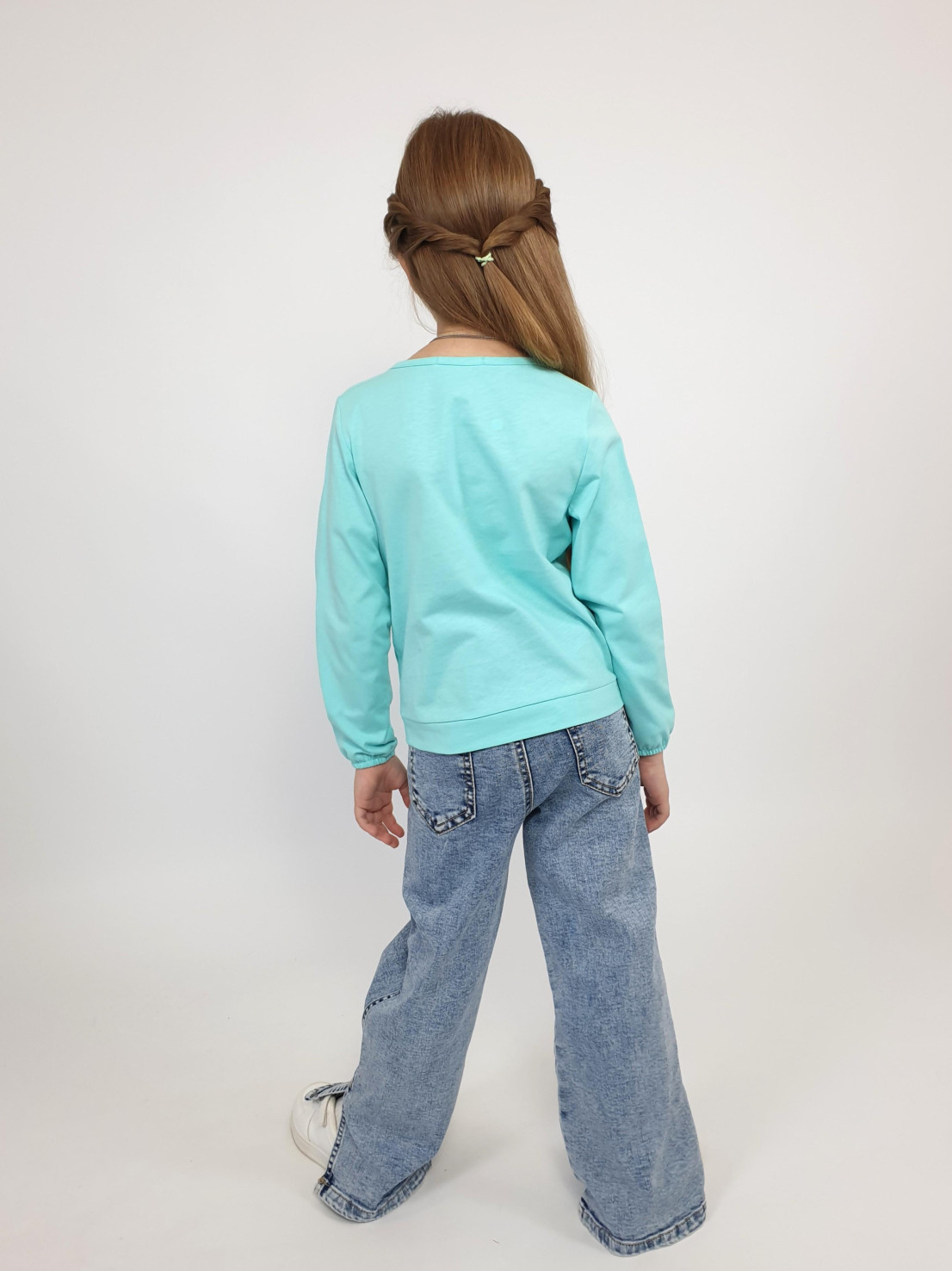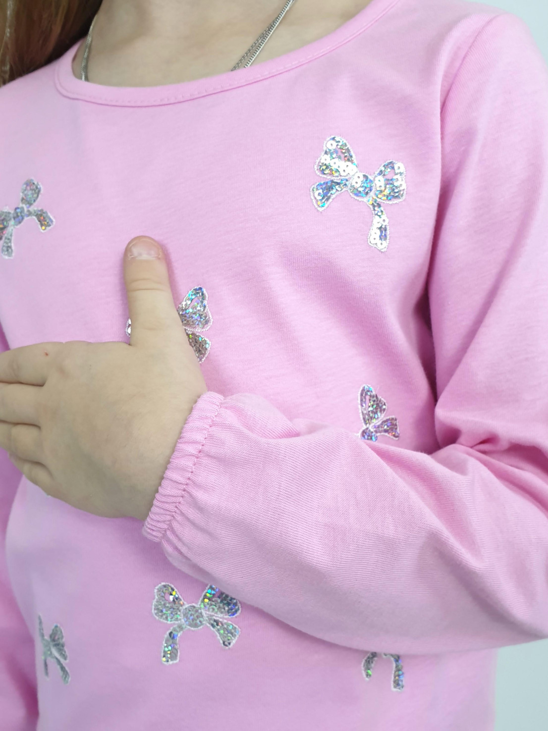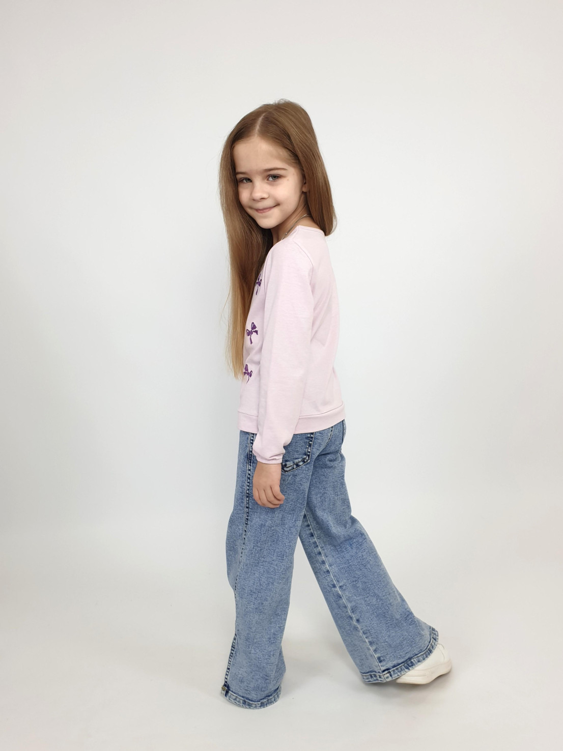 Кулирное полотно:100% х/б. Джемпер-прямого силуэта,на поясе.Перед с вышивкой(пайетки),втачной длинный рукав на резинке.Горловина окантована.