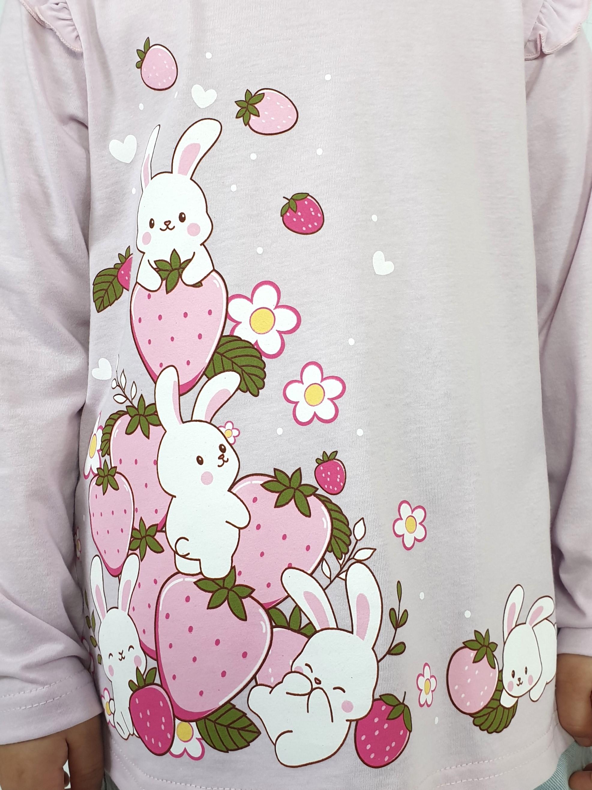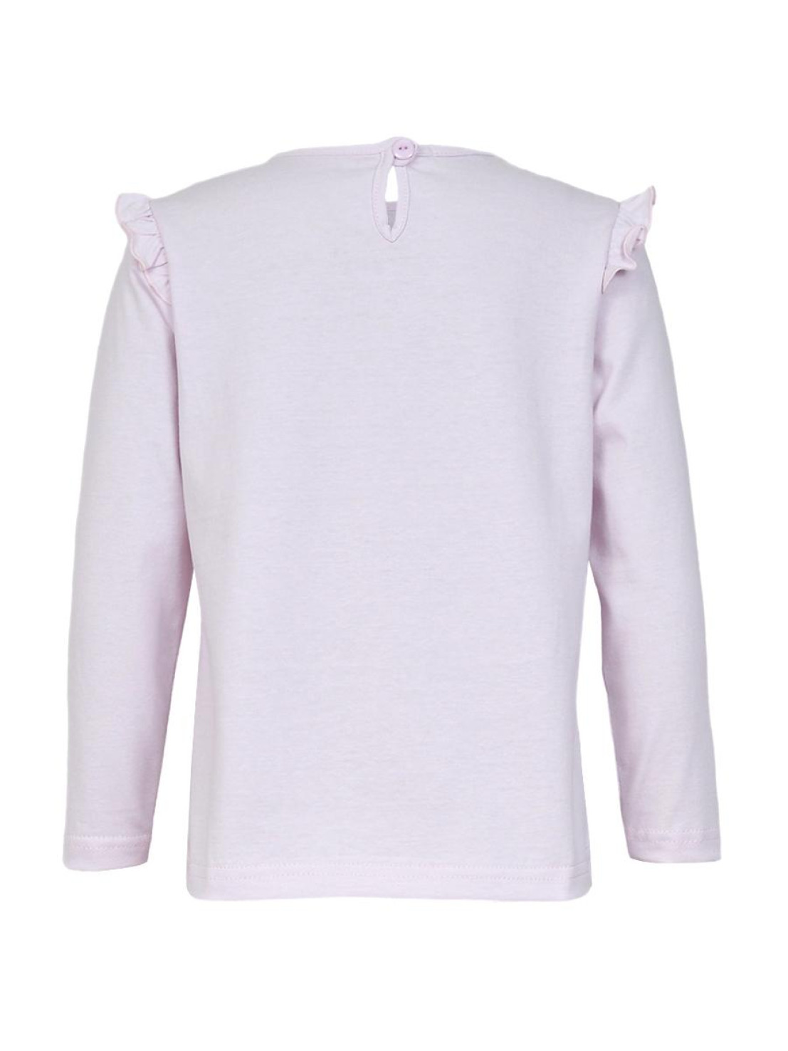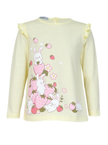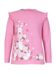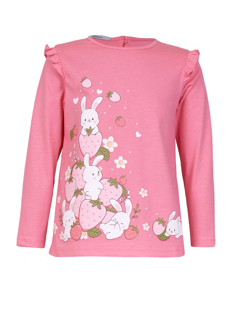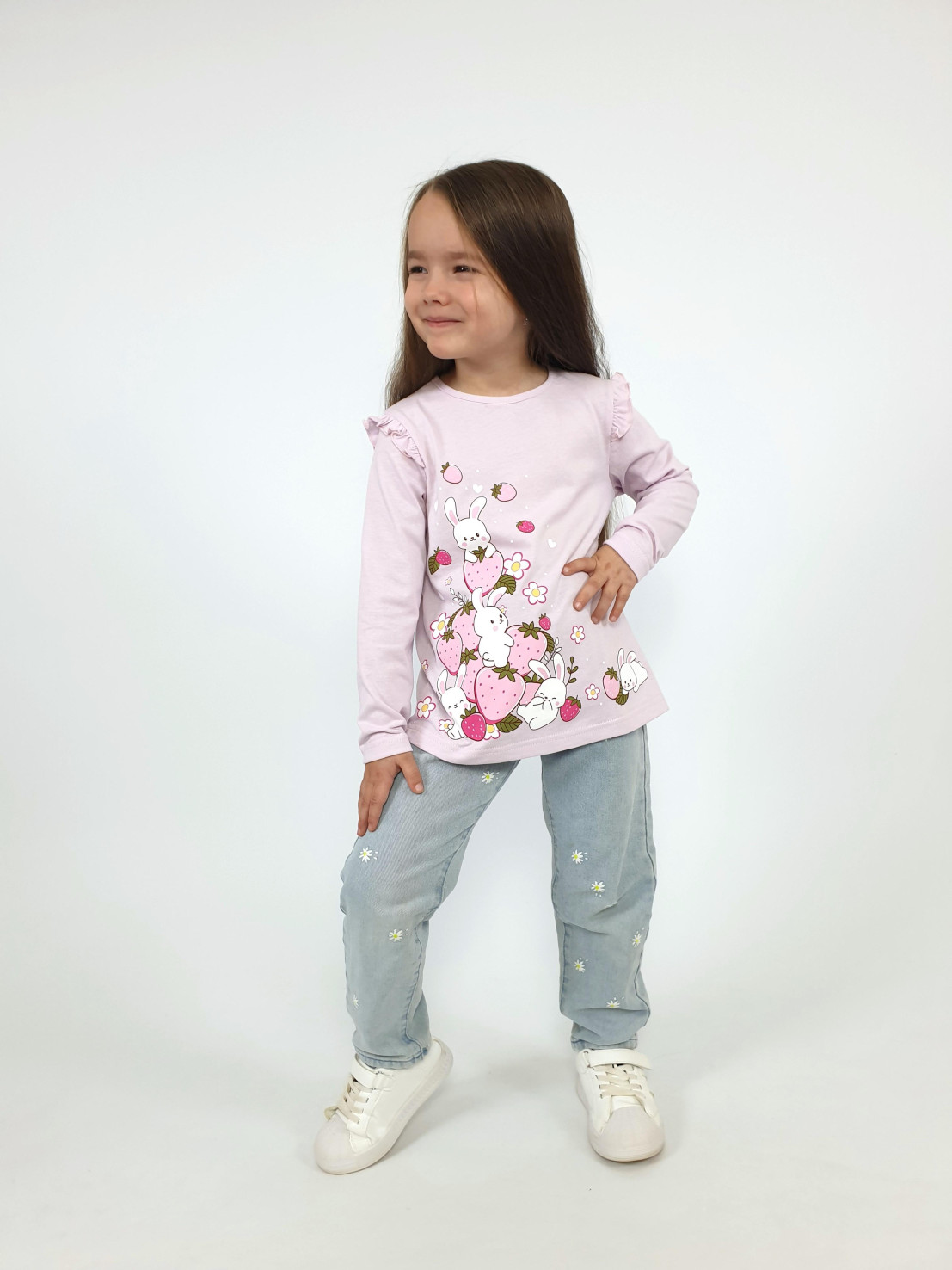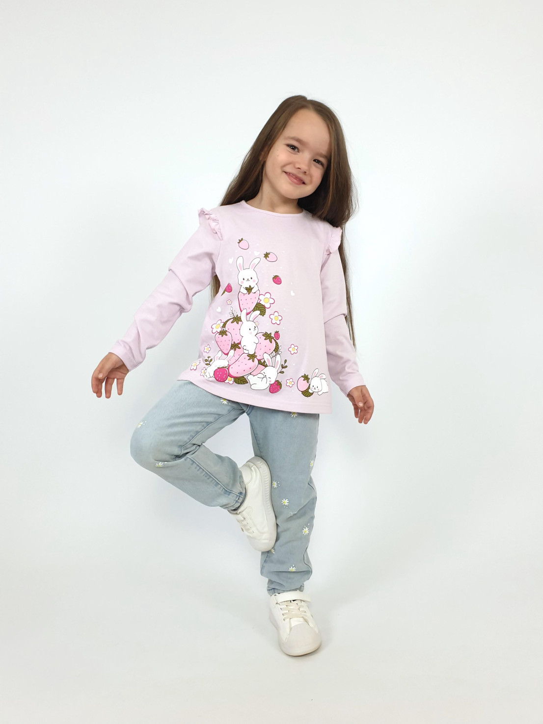 Кулирное полотно:100% х/б. Джемпер-силуэт трапеция,длинный втачной рукав,в пройме рюша.Горловина окантована,застежка на пуговицу по спинке.Печать на переде.