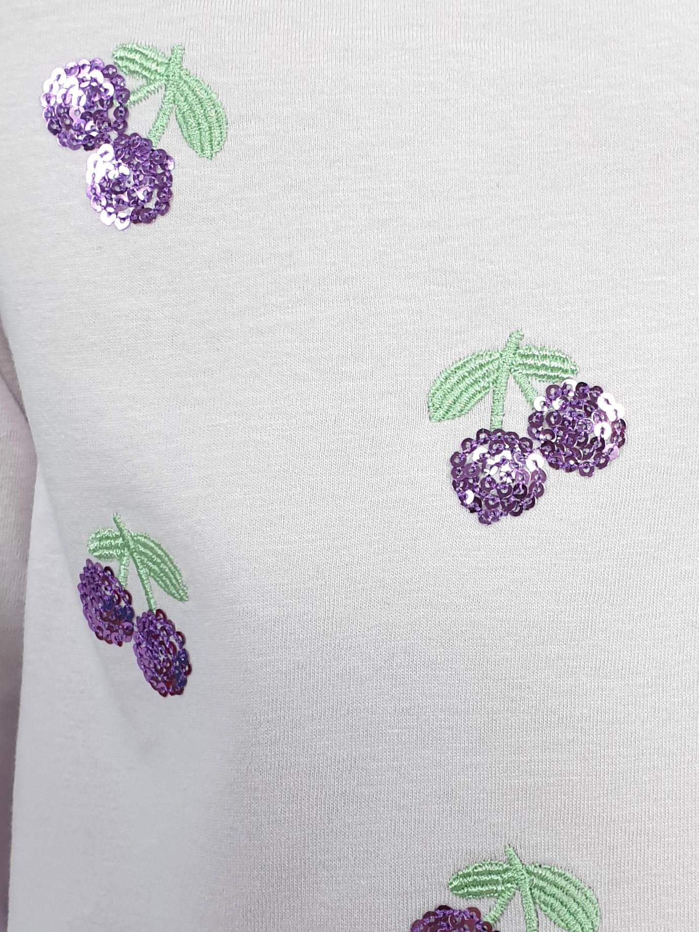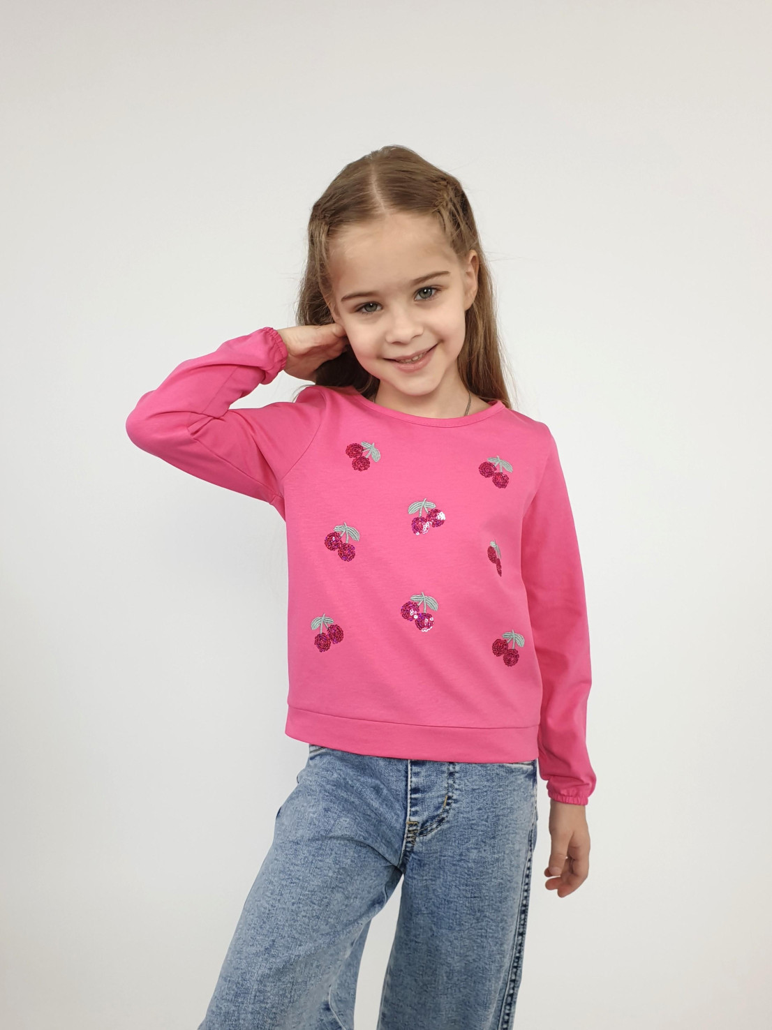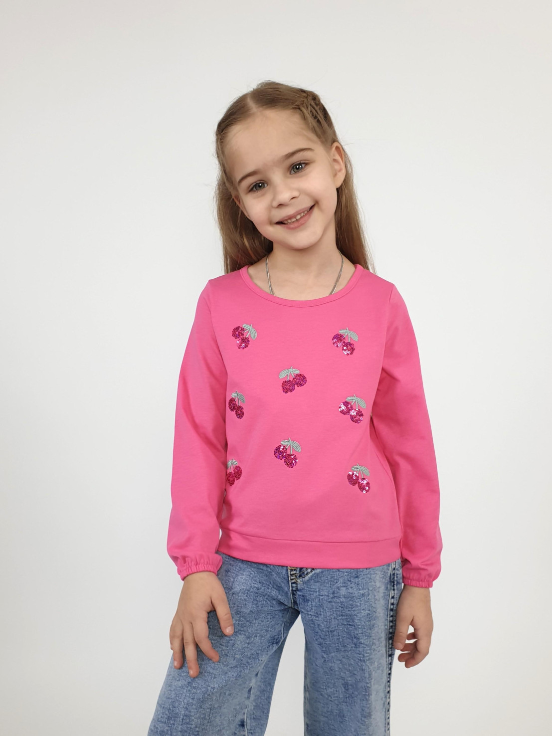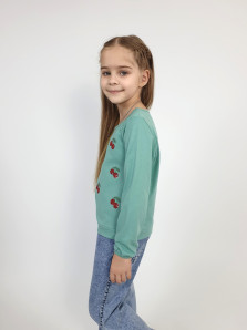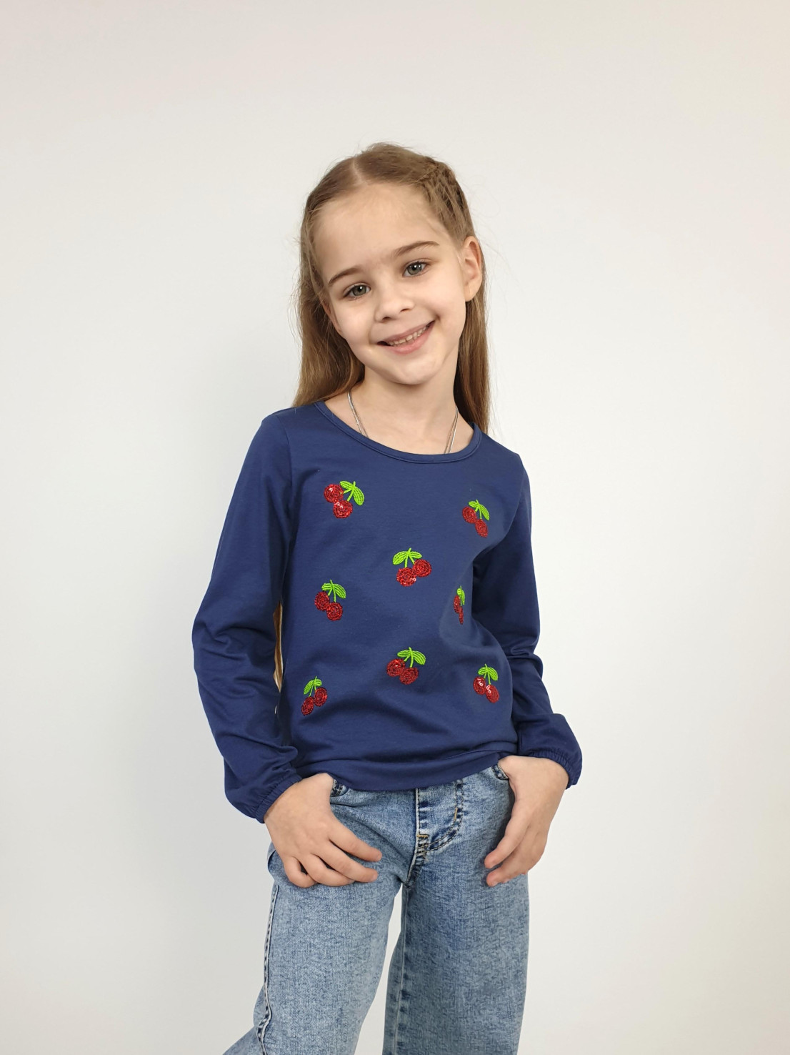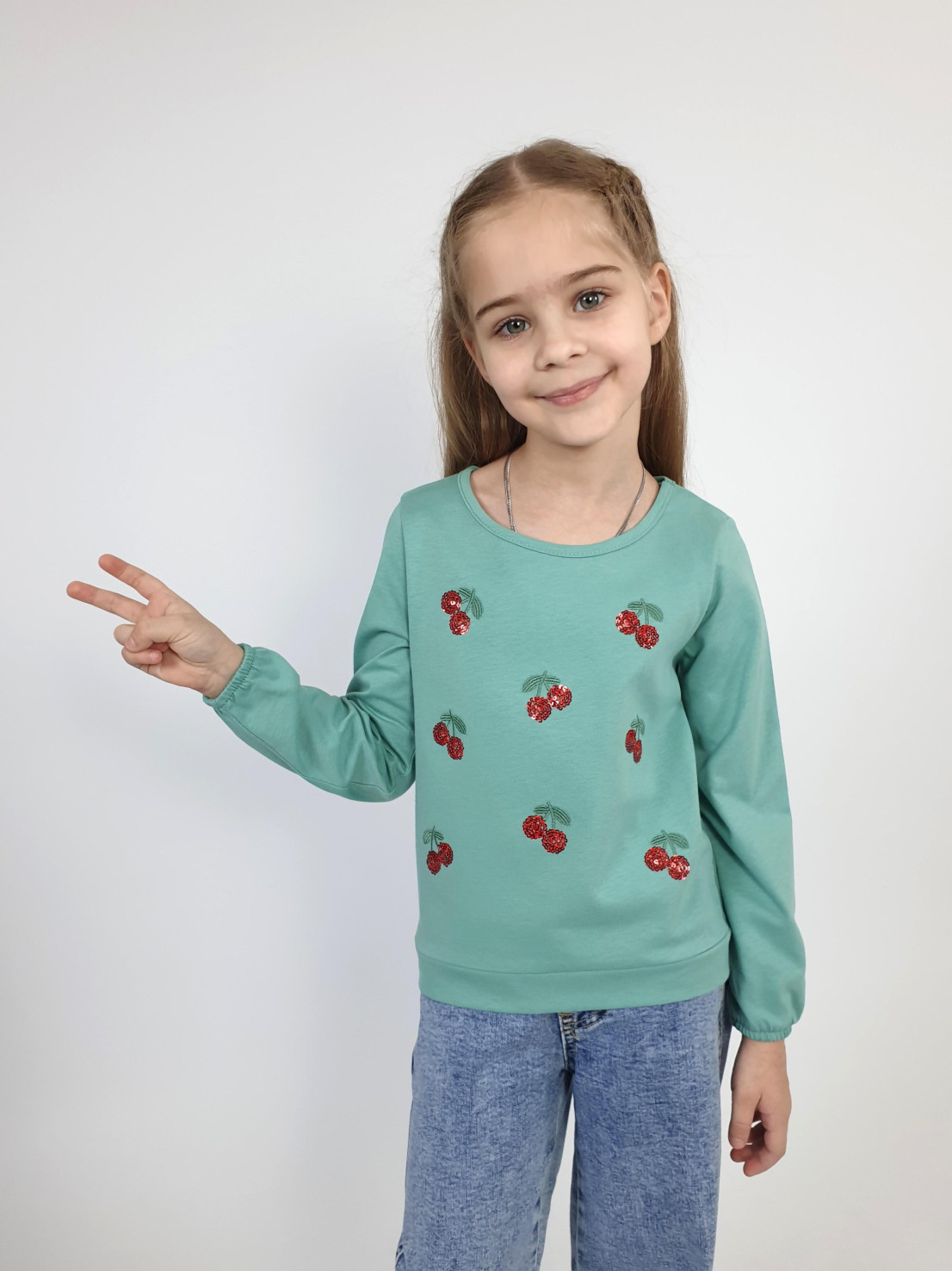 Кулирное полотно:100% х/б. Джемпер-прямого силуэта,на поясе.Перед с вышивкой(пайетки),втачной длинный рукав на резинке.Горловина окантована.