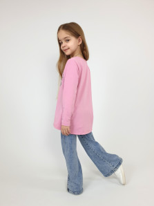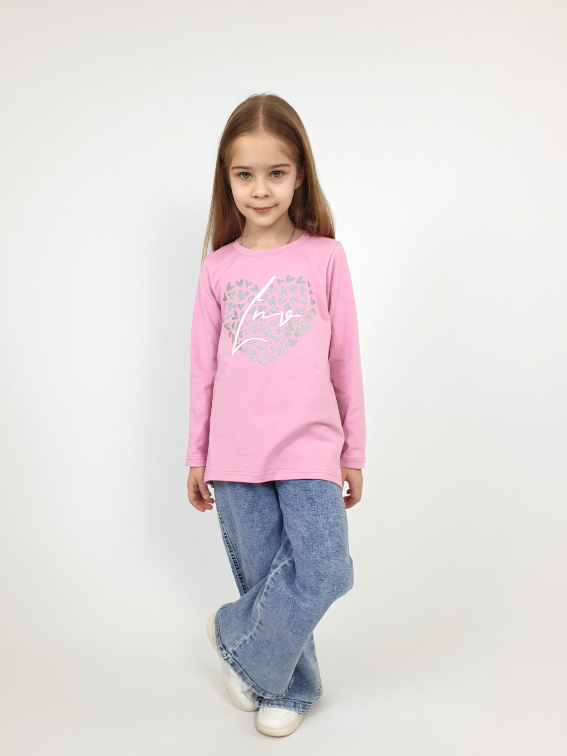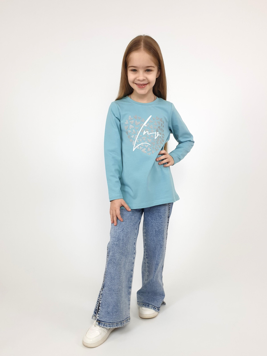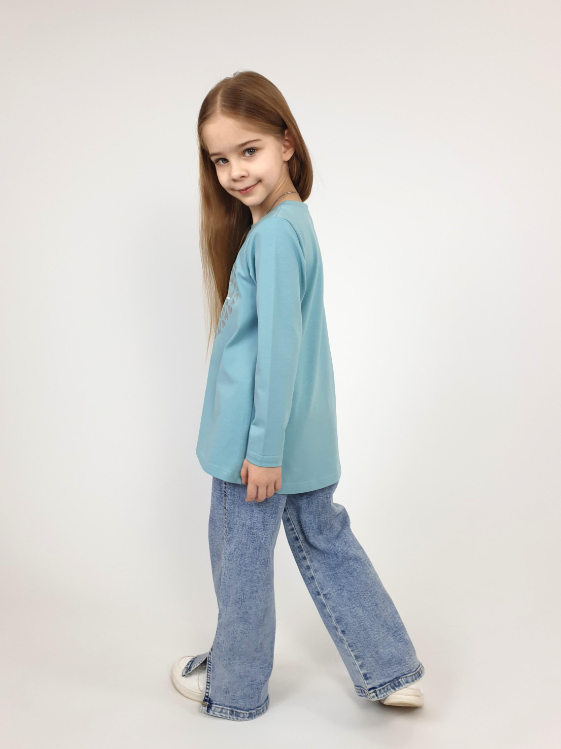Кулирное полотно:95% х/б,5% лайкра. Джемпер-силуэт трапеция,перед с печатью.Рукав втачной,длинный.Горловина обработана планкой,низ изделия и рукава подшиты.