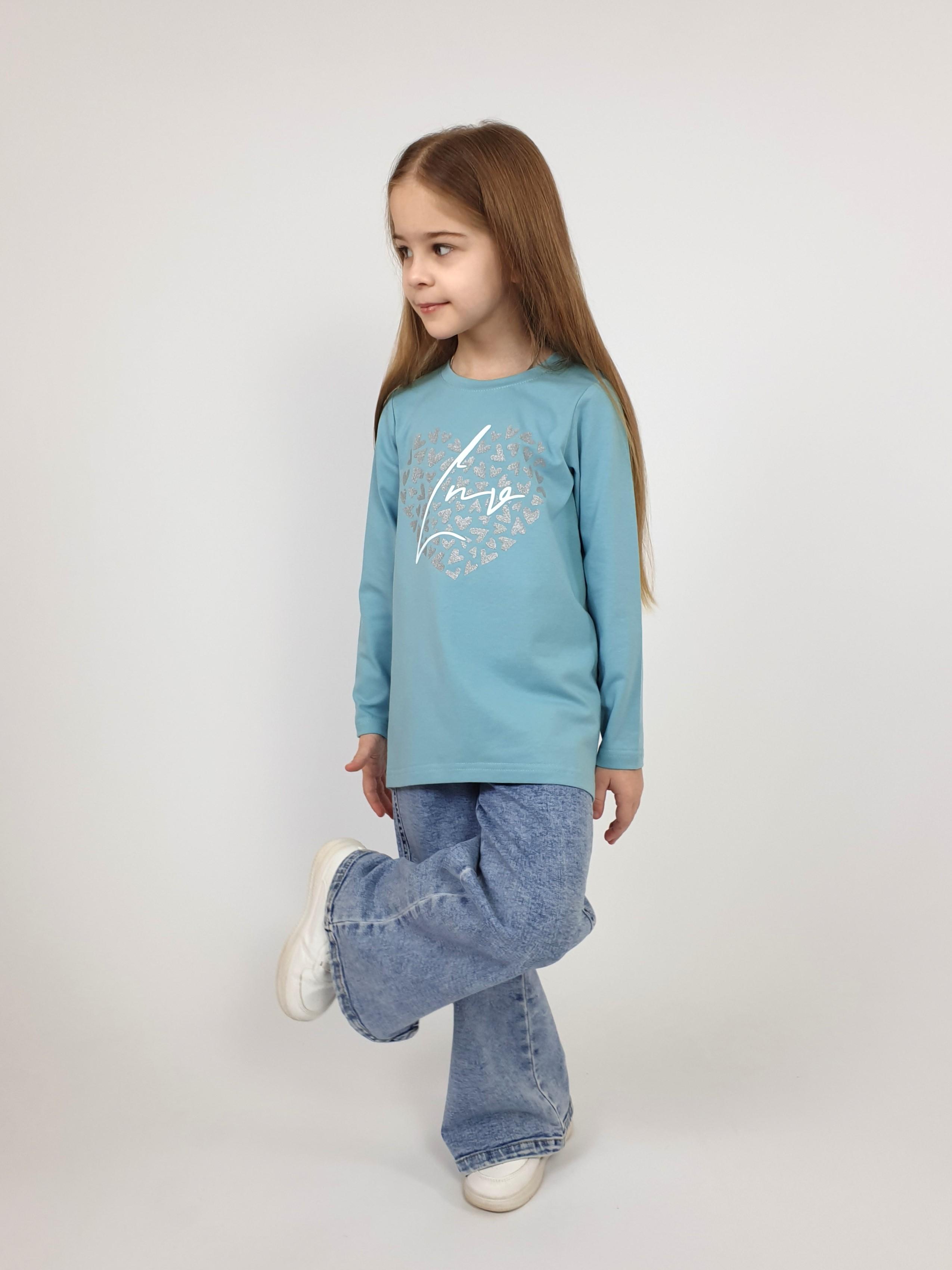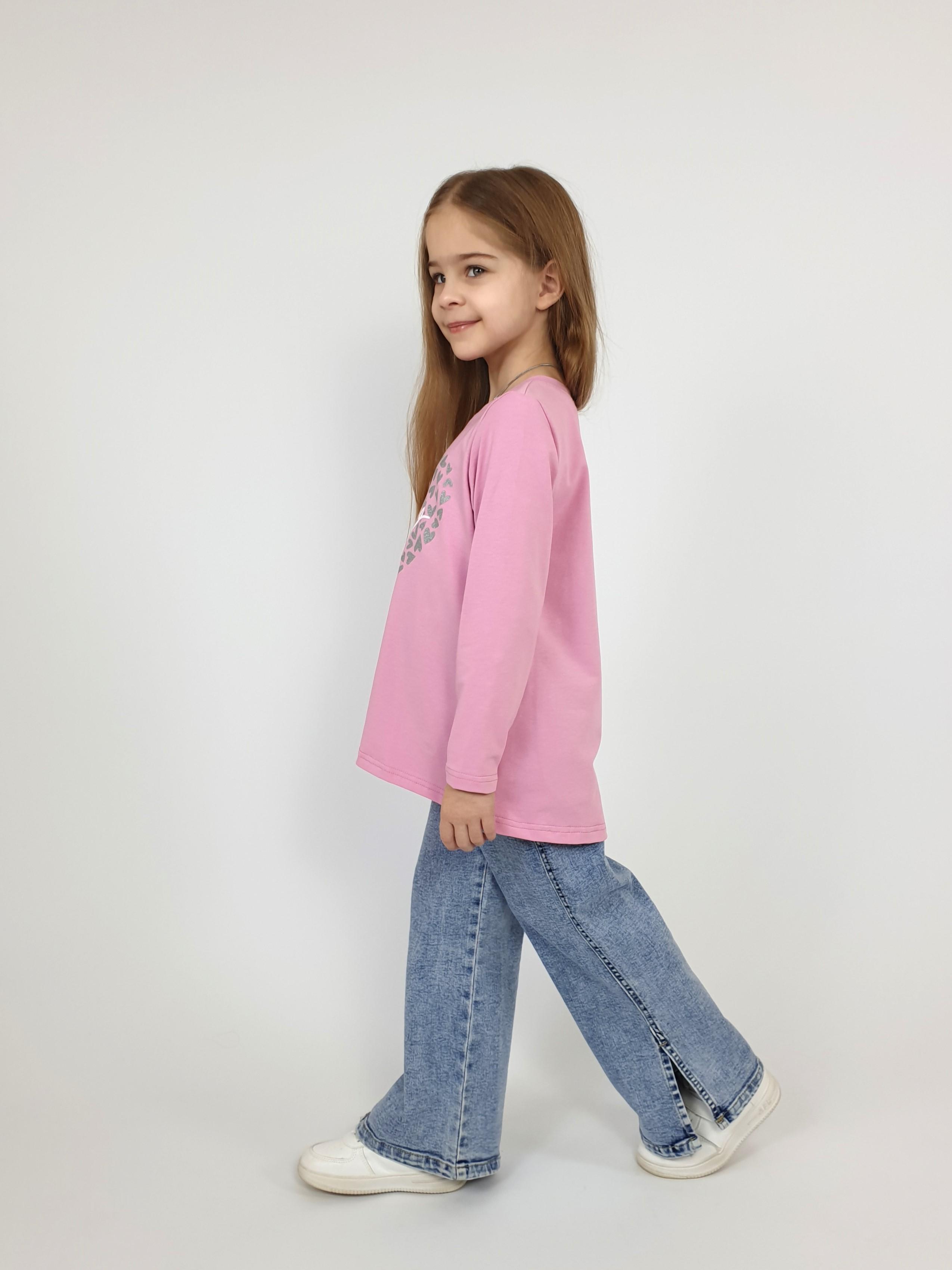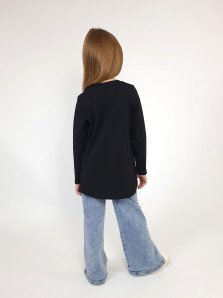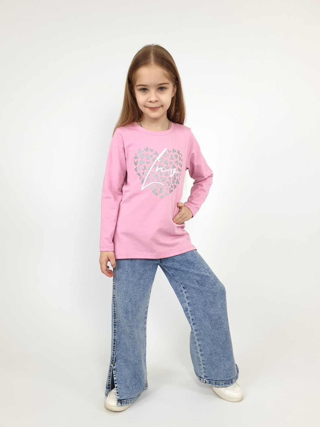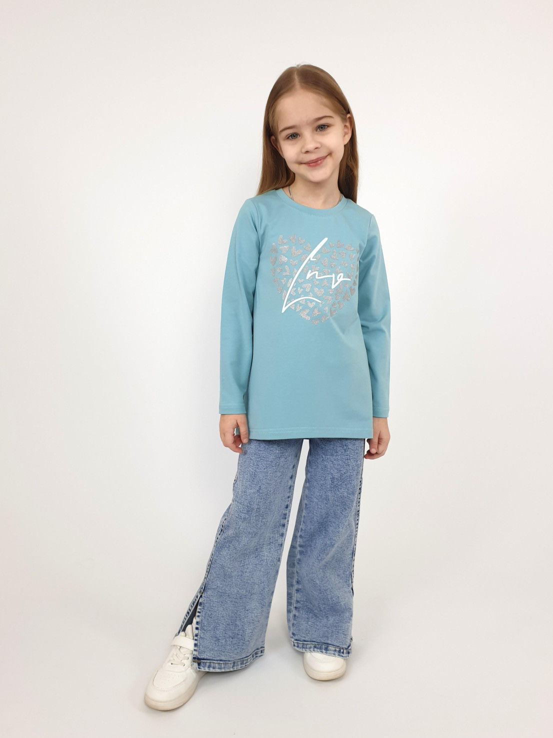 Кулирное полотно:95% х/б,5% лайкра. Джемпер-силуэт трапеция,перед с печатью.Рукав втачной,длинный.Горловина обработана планкой,низ изделия и рукава подшиты.