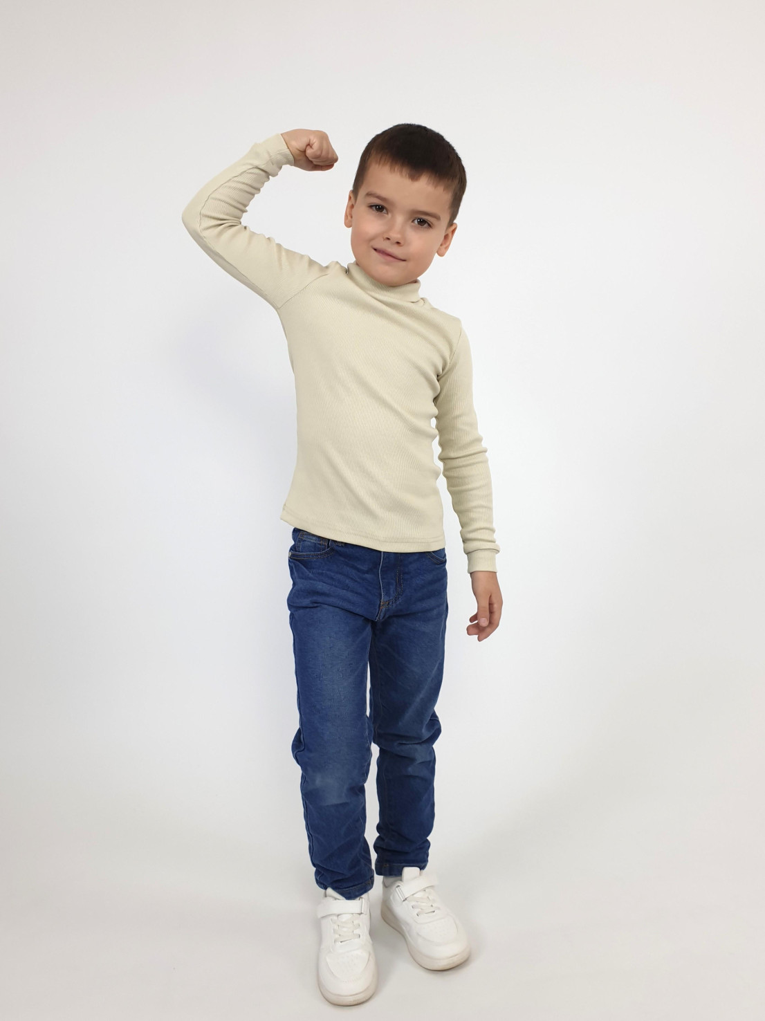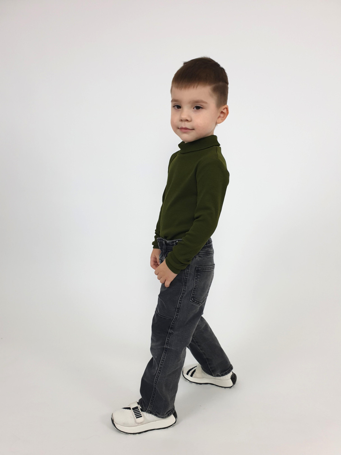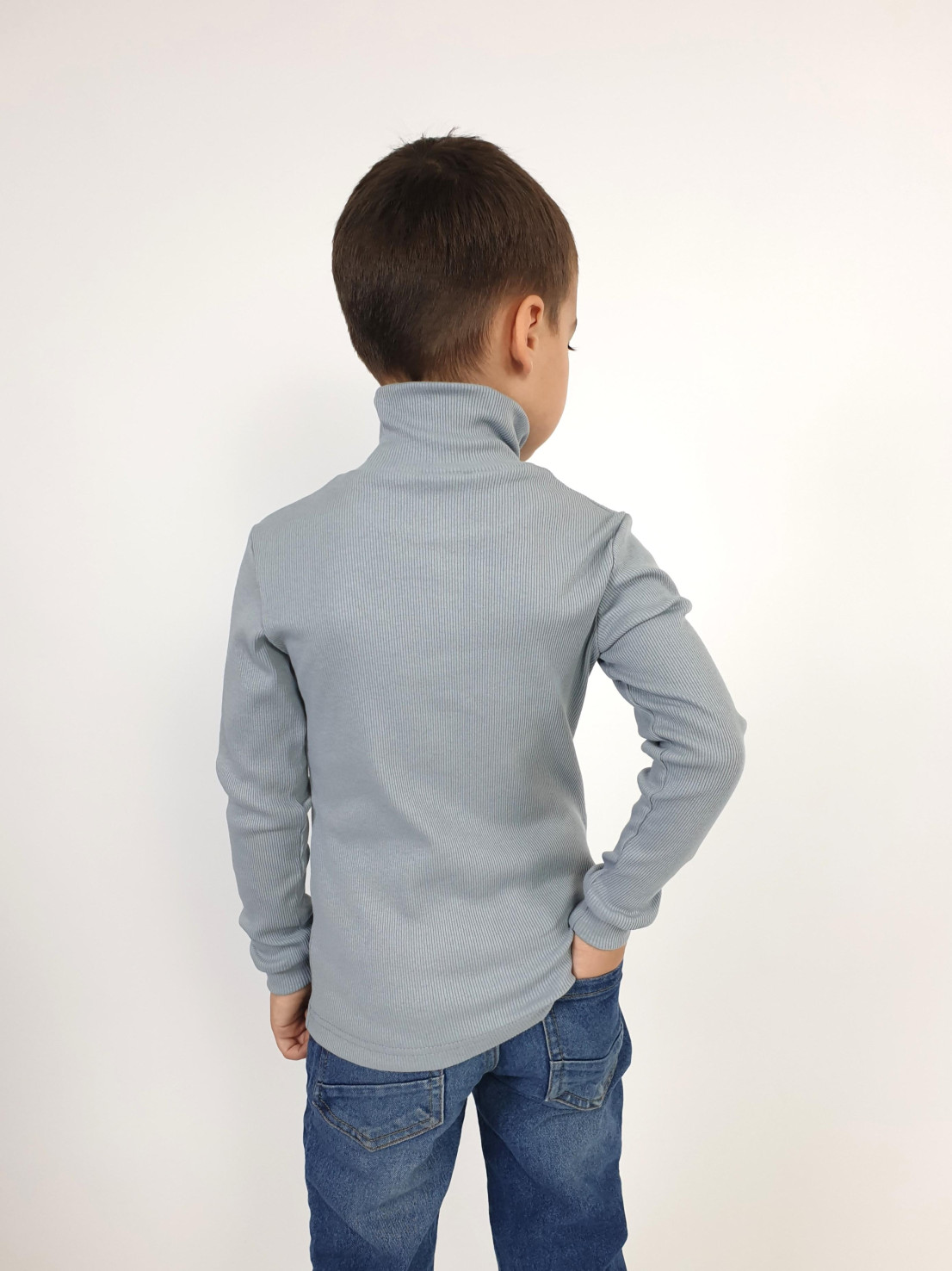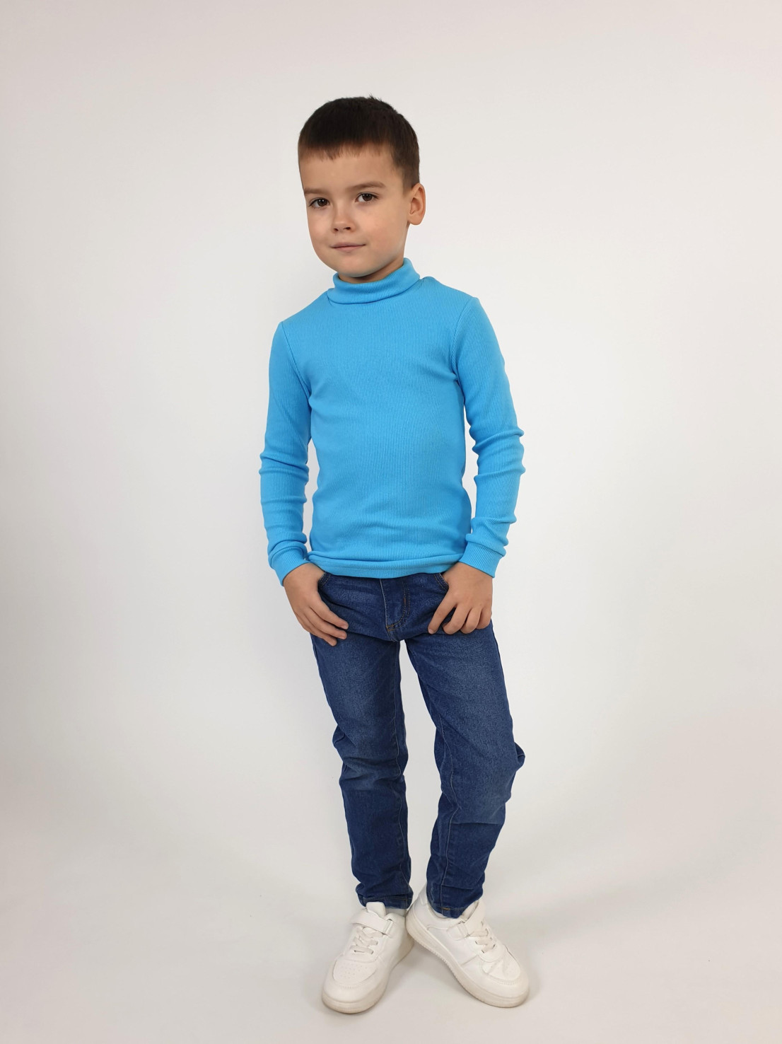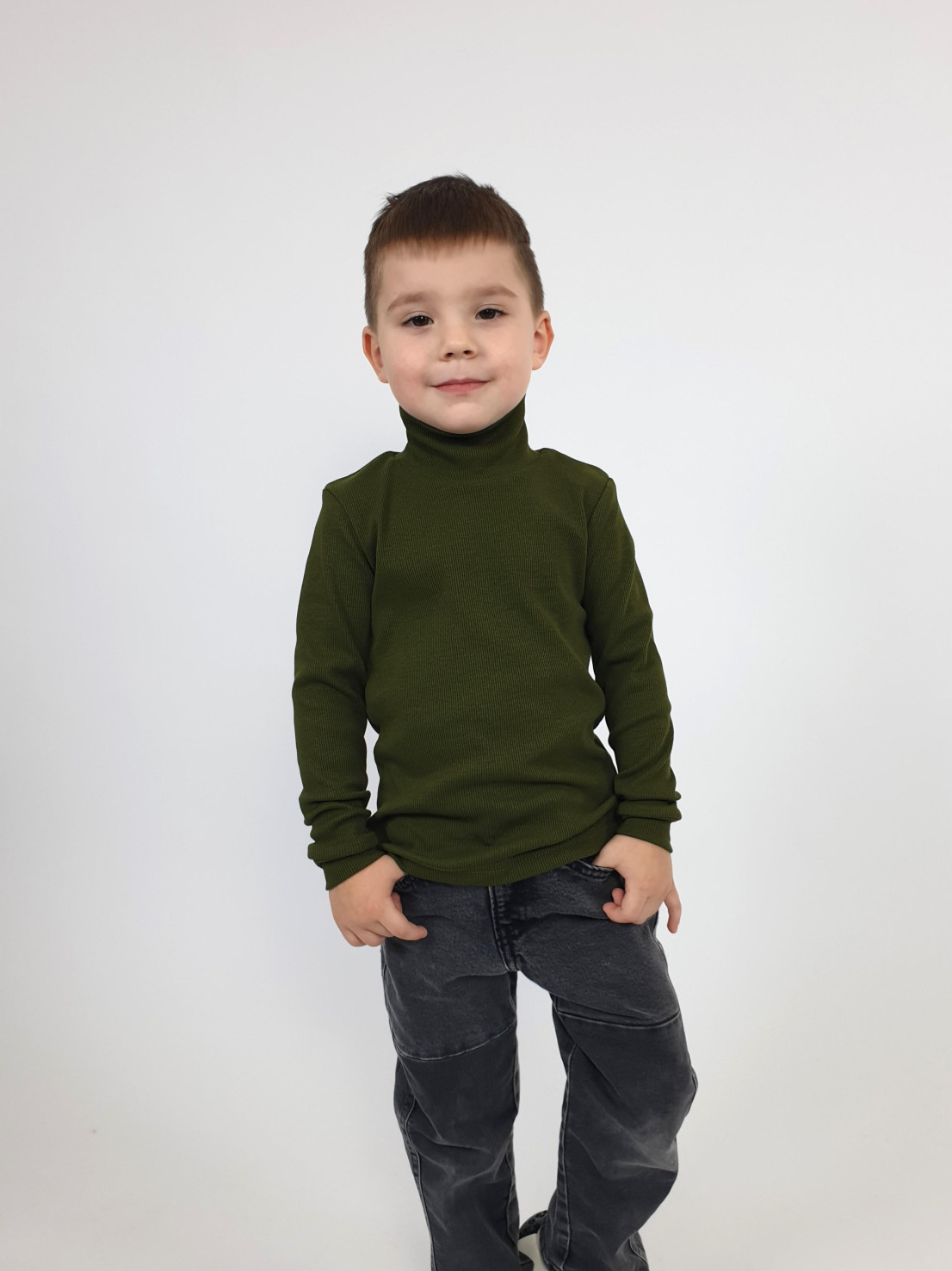 Трикотажное полотно:95% х/б,5% лайкра. Джемпер-прилегающего силуэта.Рукав втачной,длинный на манжете.Воротник стойка.Низ изделия подшит.