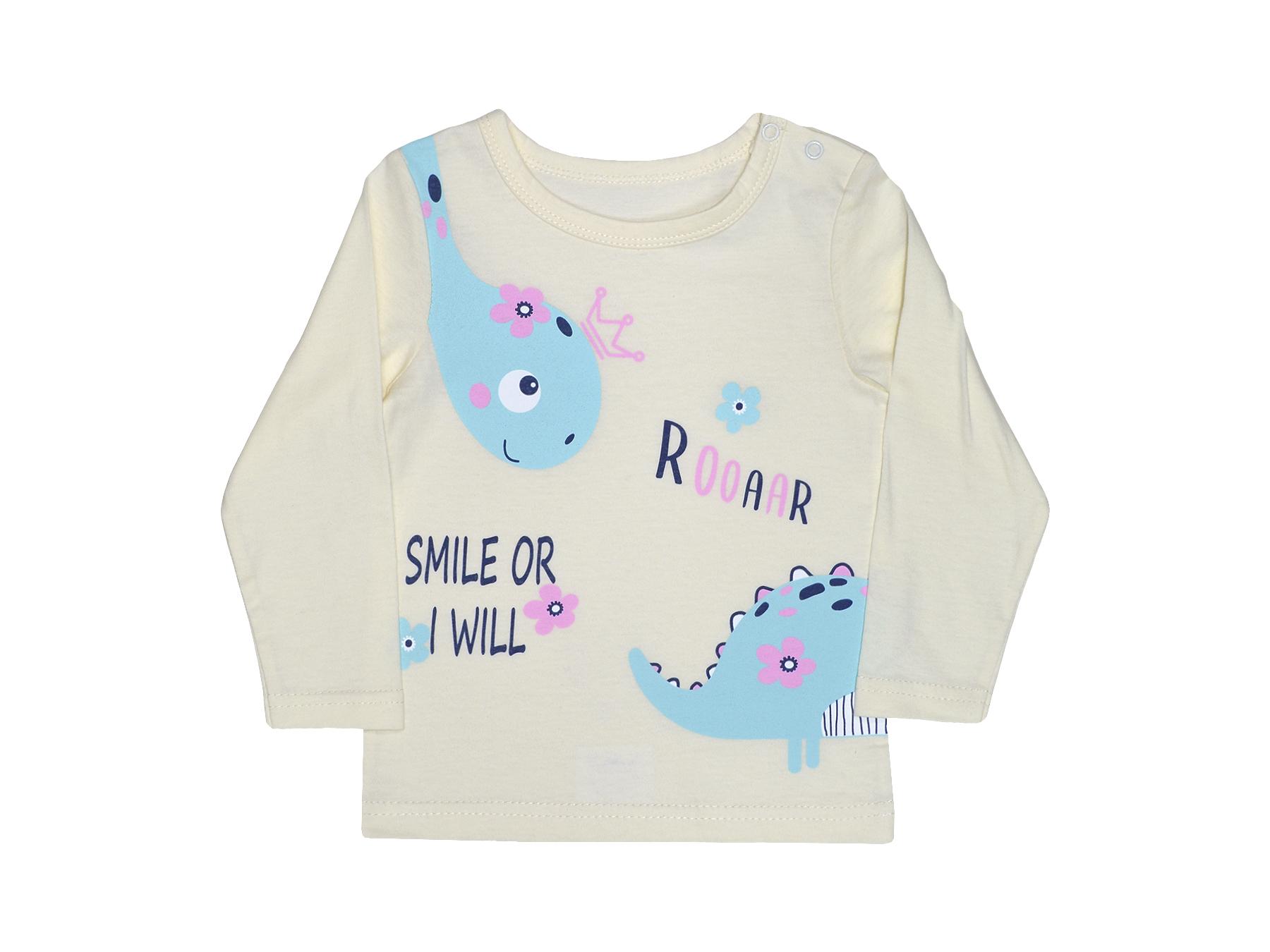 Кулирное полотно: 100% х/б. Фуфайка-печать на переде,прямая.Рукав втачной,длинный.Горловина окантована,застежка на плече,на кнопки. Низ изделия, низ рукава подшит.
