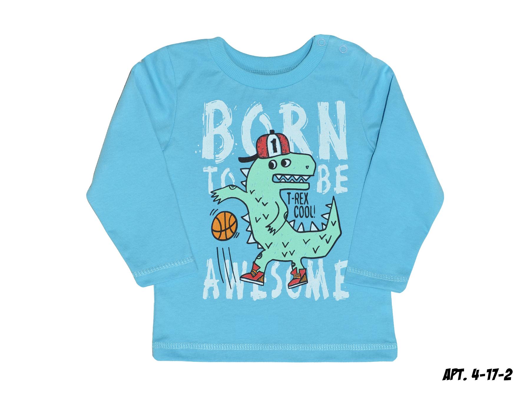 Кулирное полотно, 100% х/б. Фуфайка-прямой силуэт с печатью по переду. Застежка в плечевом шве на кнопки. Втачной длинный рукав, горловина обработана ластиком.