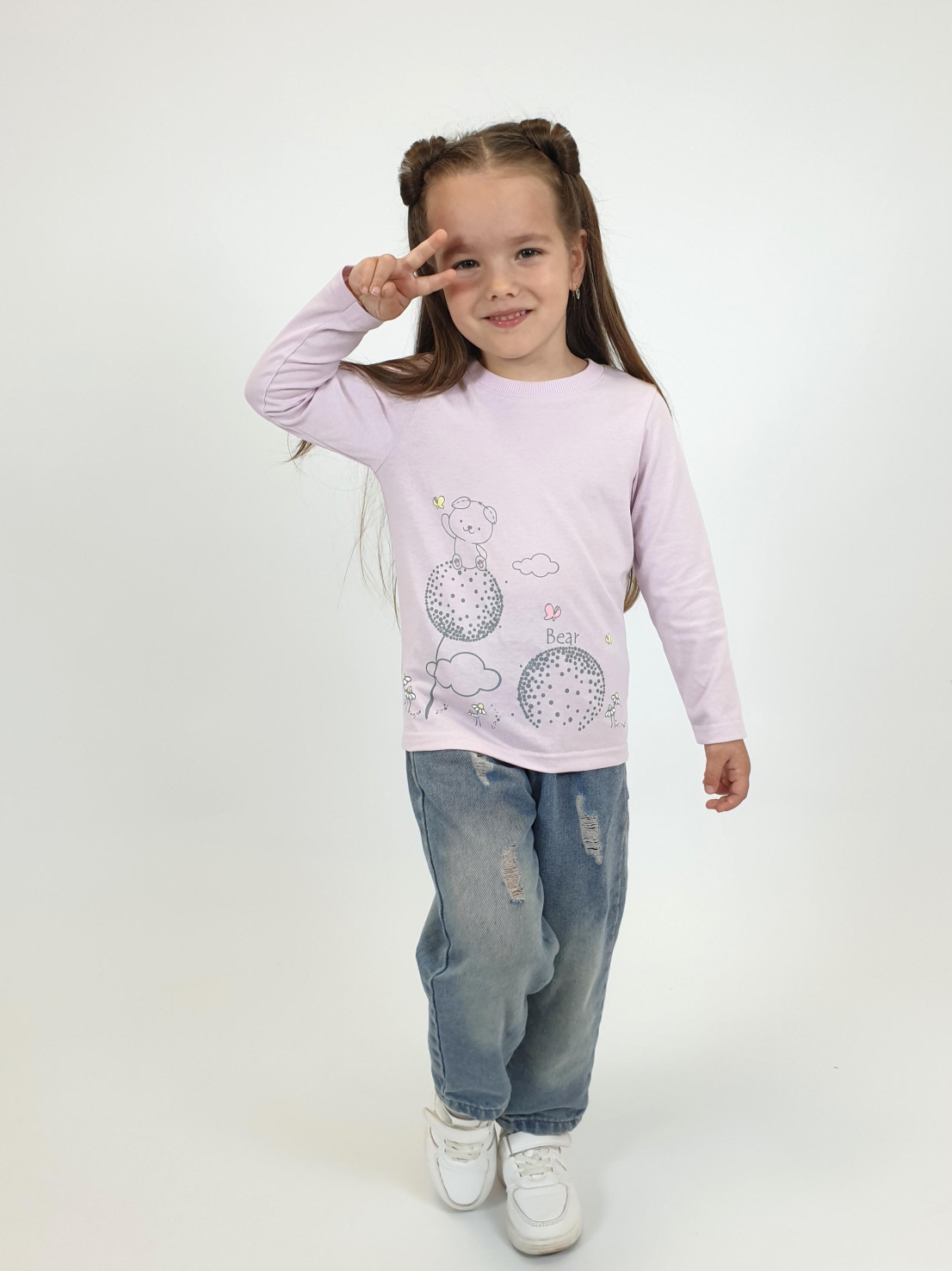 Кулирное полотно:100% х/б. Фуфайка-прямой силуэт,длинный втачной рукав.Горловина обработана ластиком.Печать на переде.