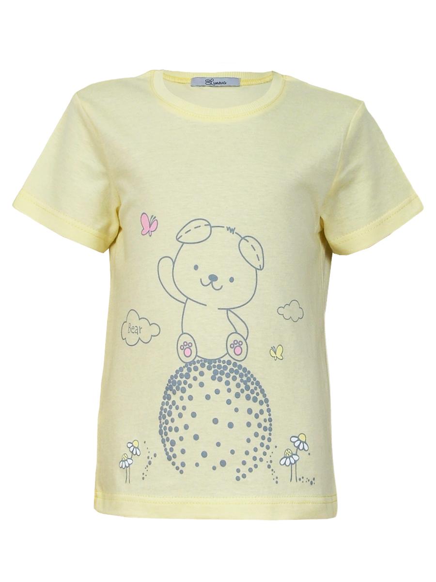 Кулирное полотно:100% х/б. Фуфайка-прямой силуэт,короткий втачной рукав.Горловина обработана ластиком.Печать на переде.