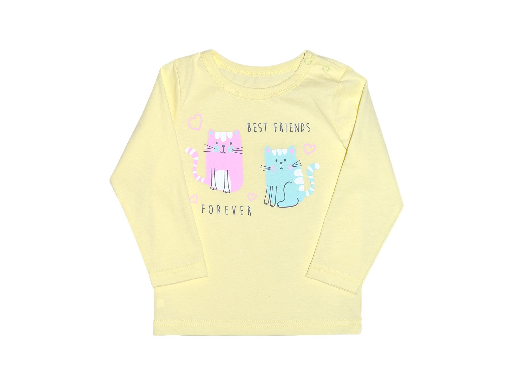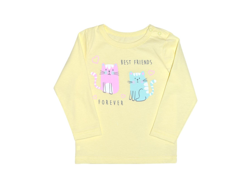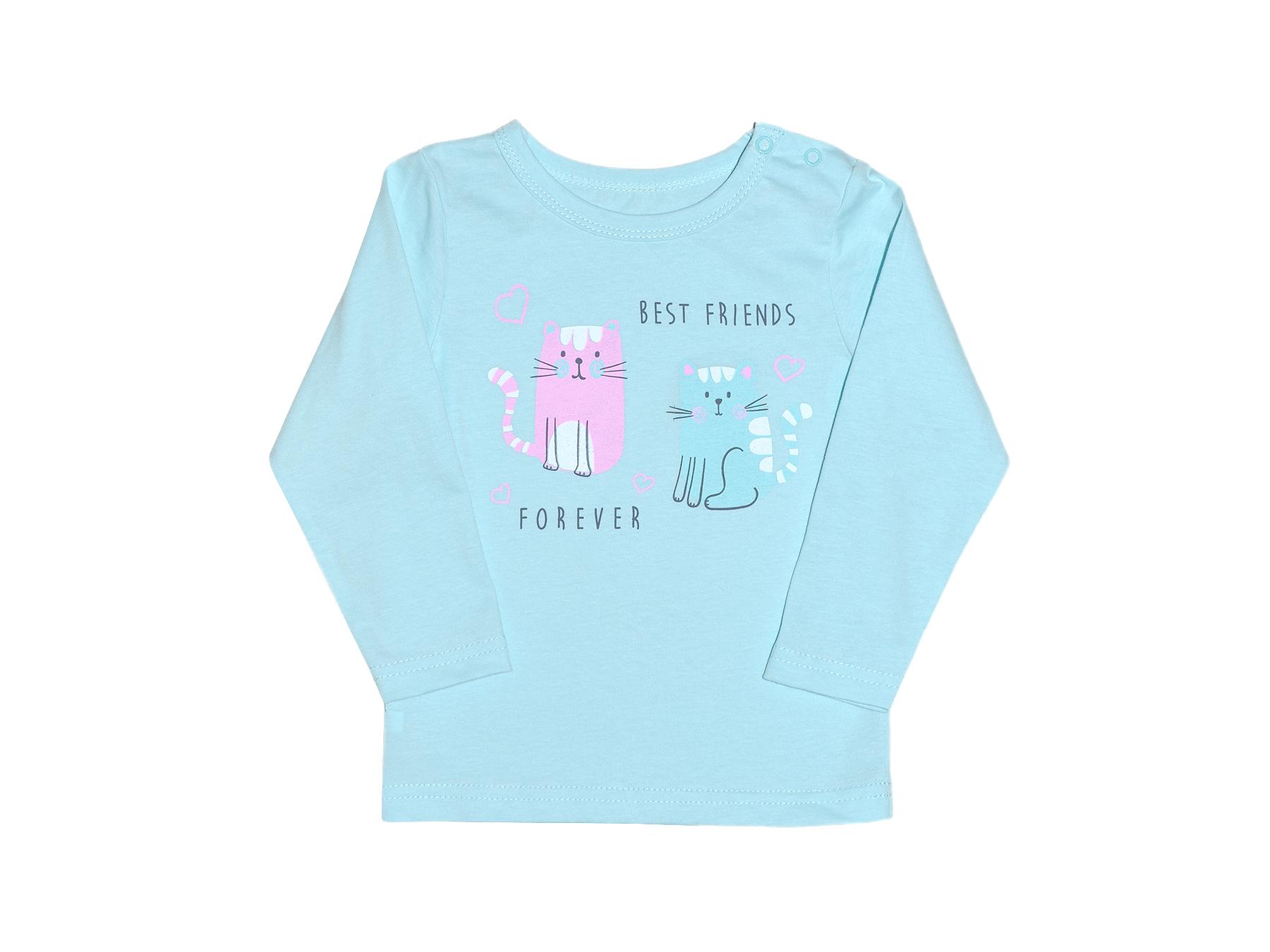 Кулирное полотно: 100% х/б. Фуфайка- прямой силуэт,длинный втачной рукав,застежка на кнопки в плечевом шве.Горловина окантована.Печать на переде.