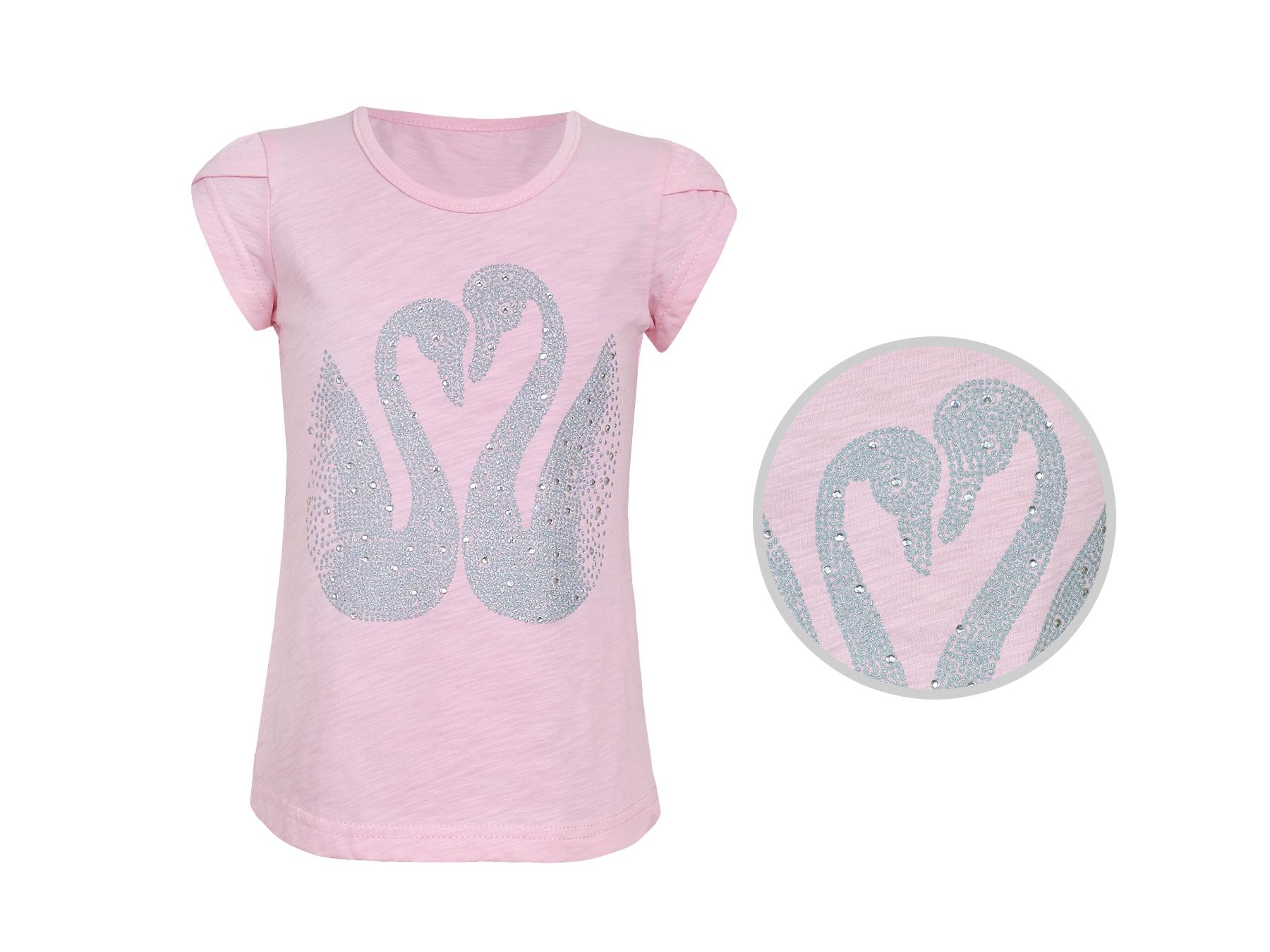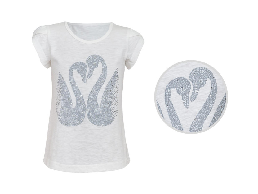 Футболка для девочки полуприлегающего силуэта изготовлена из кулирного полотна (газе) 100% хлопок. Модель украшена оригинальным принтом со стразами. Ткань изделия мягкая, дышащая и приятная к телу.