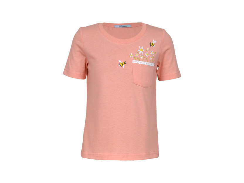 Футболка для девочки прямого кроя изготовлена из качественного кулирного полотна (100% хлопок). Декорирована накладным карманом и вышивкой. Материал футболки легкий, приятный на ощупь, устойчивый к частым стиркам. Оригинальный принт и фасон точно понравится вашему ребенку. Идеальна для прогулок, школы и как повседневный вариант
