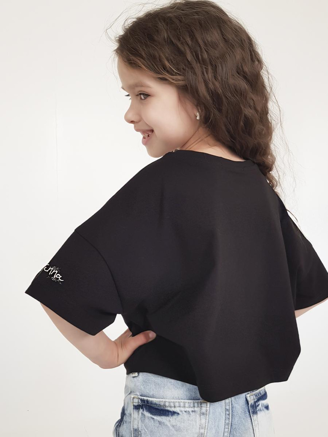 Кулирное полотно: 100% х/б. Фуфайка(оверсайз)-укороченная,спущенное плечо,короткий рукав.Печать на переде,горловина обработана планкой.