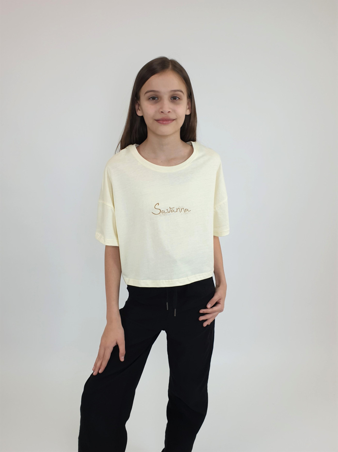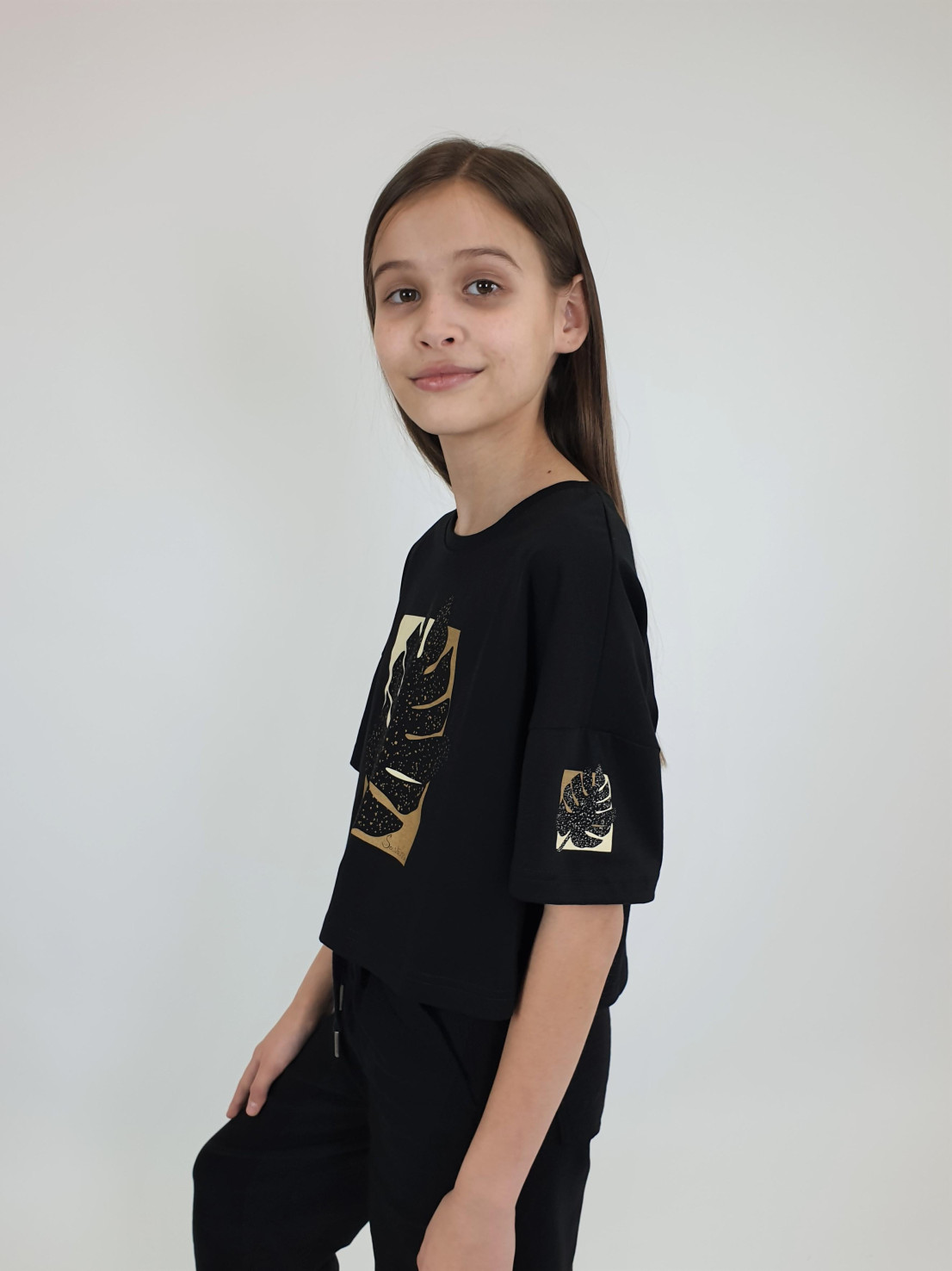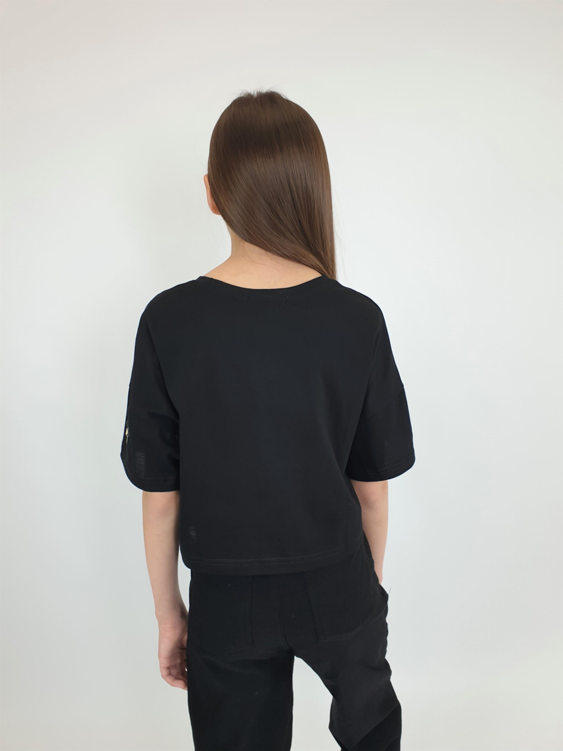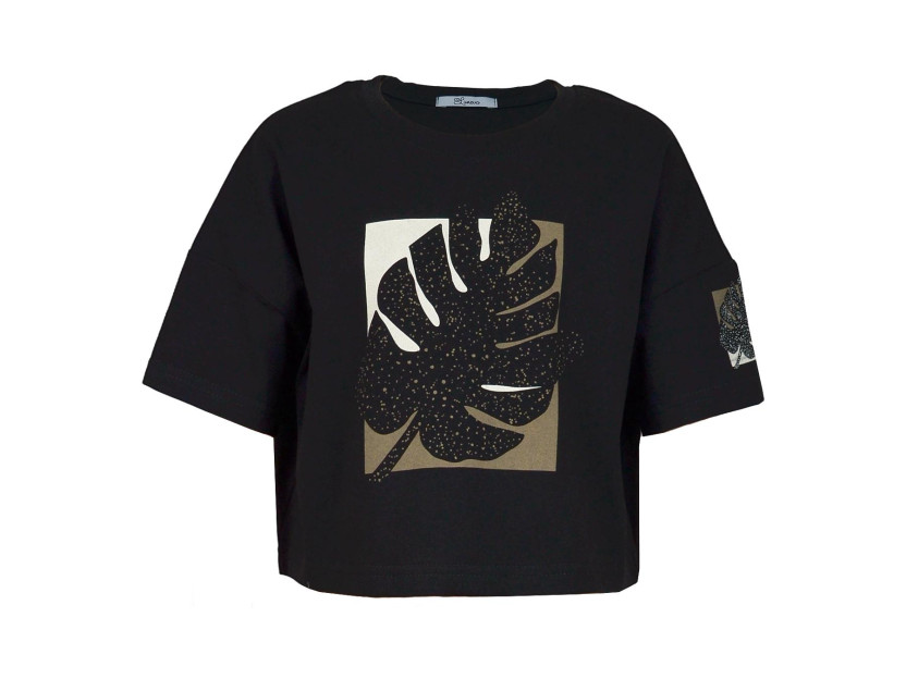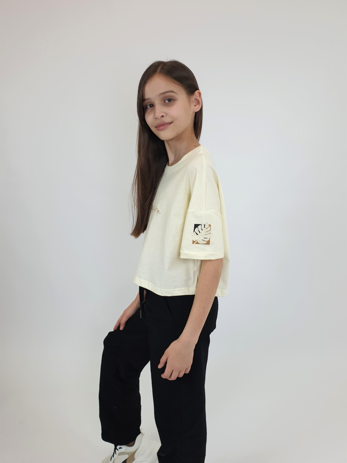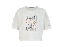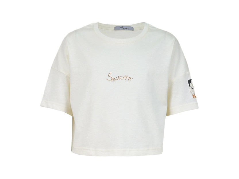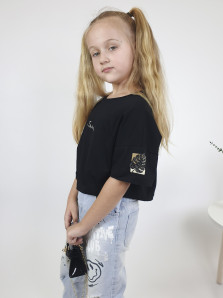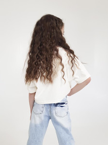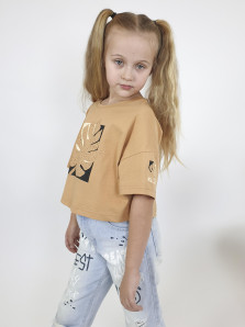 Кулирное полотно: 100% х/б. Фуфайка(оверсайз)-укороченная,спущенное плечо,короткий рукав.Печать на переде,горловина обработана планкой.