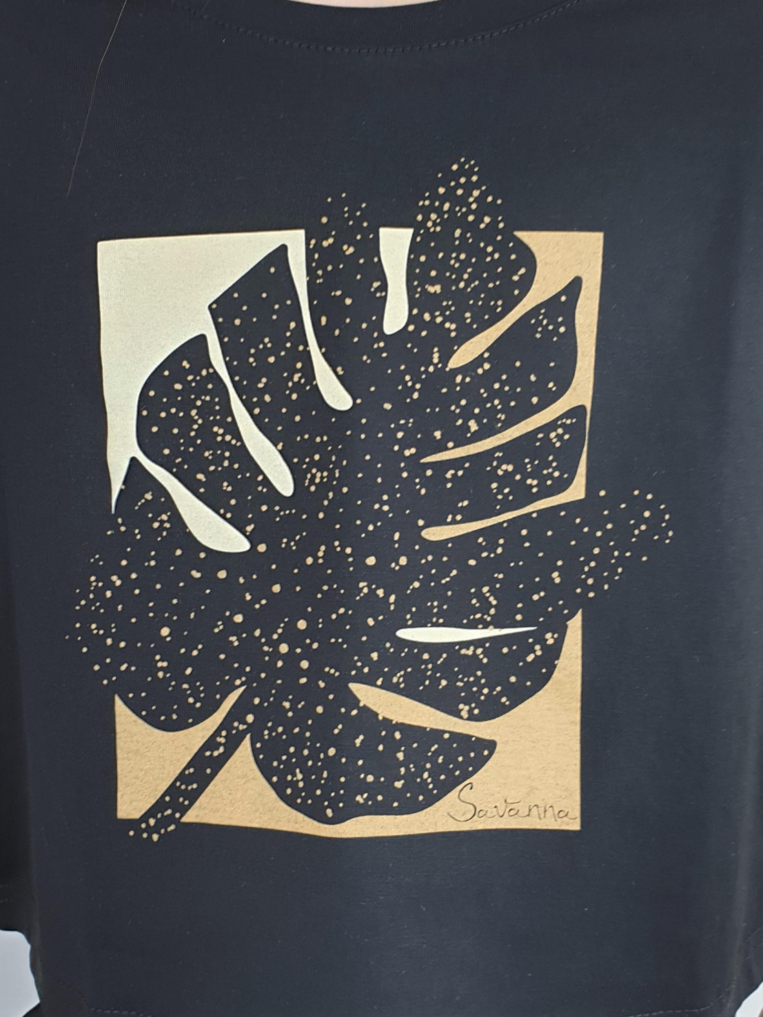 Кулирное полотно: 100% х/б. Фуфайка(оверсайз)-укороченная,спущенное плечо,короткий рукав.Печать на переде,горловина обработана планкой.
