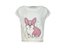 Футболка для девочки изготовлена из кулирного полотна (100% хлопок). Модель прямого силуэта, короткий спущенный рукав . Оригинальный принт с вышивкой точно понравится юным модницам. Ткань изделия мягкая, дышащая и приятная к телу.